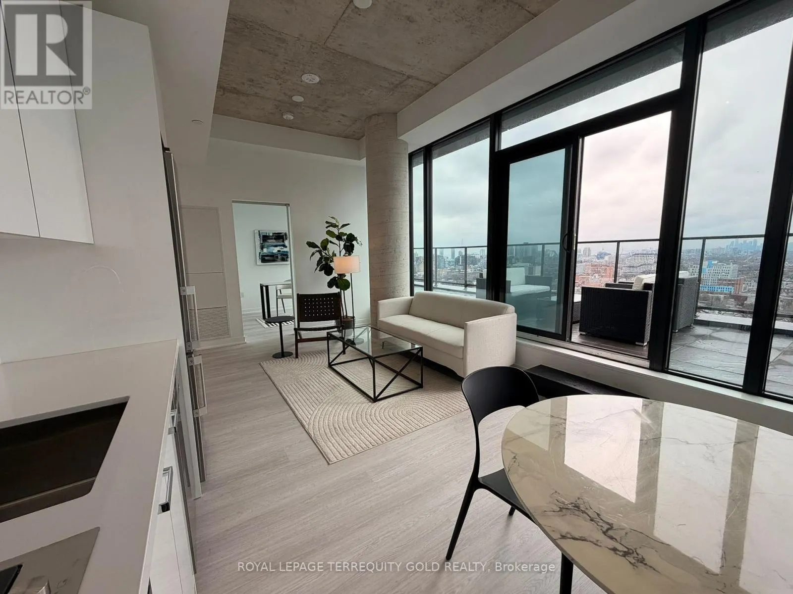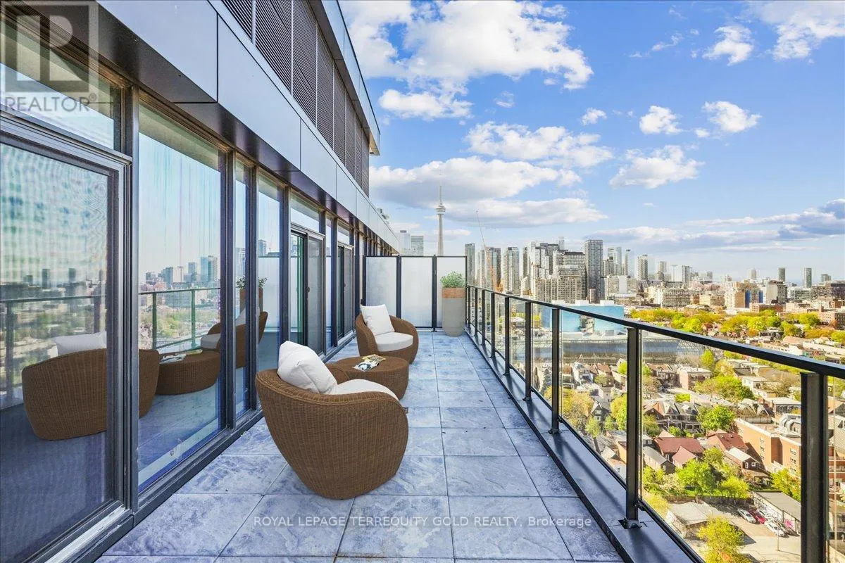 College St. & University Avenue Be the first to live in this stunning, never-before-occupied Penthouse suite offering + 900 sq ft of interior space and a rare 385 sq ft private terrace with unobstructed west-facing views - perfect for morning coffee, evening dining, or simply soaking in the skyline. This premium three-bedroom layout combines modern design with luxury finishes: 9' ceilings, floor-to-ceiling windows, exposed concrete walls and ceilings, gas cooking, and sleek stainless steel appliances. Bright, Airy and impeccably styled, this suite defines contemporary urban living. Located in the heart of the city, you're steps from the University of Toronto, OCAD, The Dundas streetcar, and St. Patrick subway station. Enjoy walking access to Baldwin Village, the AGO, and some of Toronto's best restaurants, bars and shops. Residents enjoy top-tier amenities including a sky lounge, concierge, fitness studio, and a sprawling outdoor sky park with BBQ's, dining, and lounge spaces. This is the ultimate downtown lifestyle - Welcome Home (id:27476)