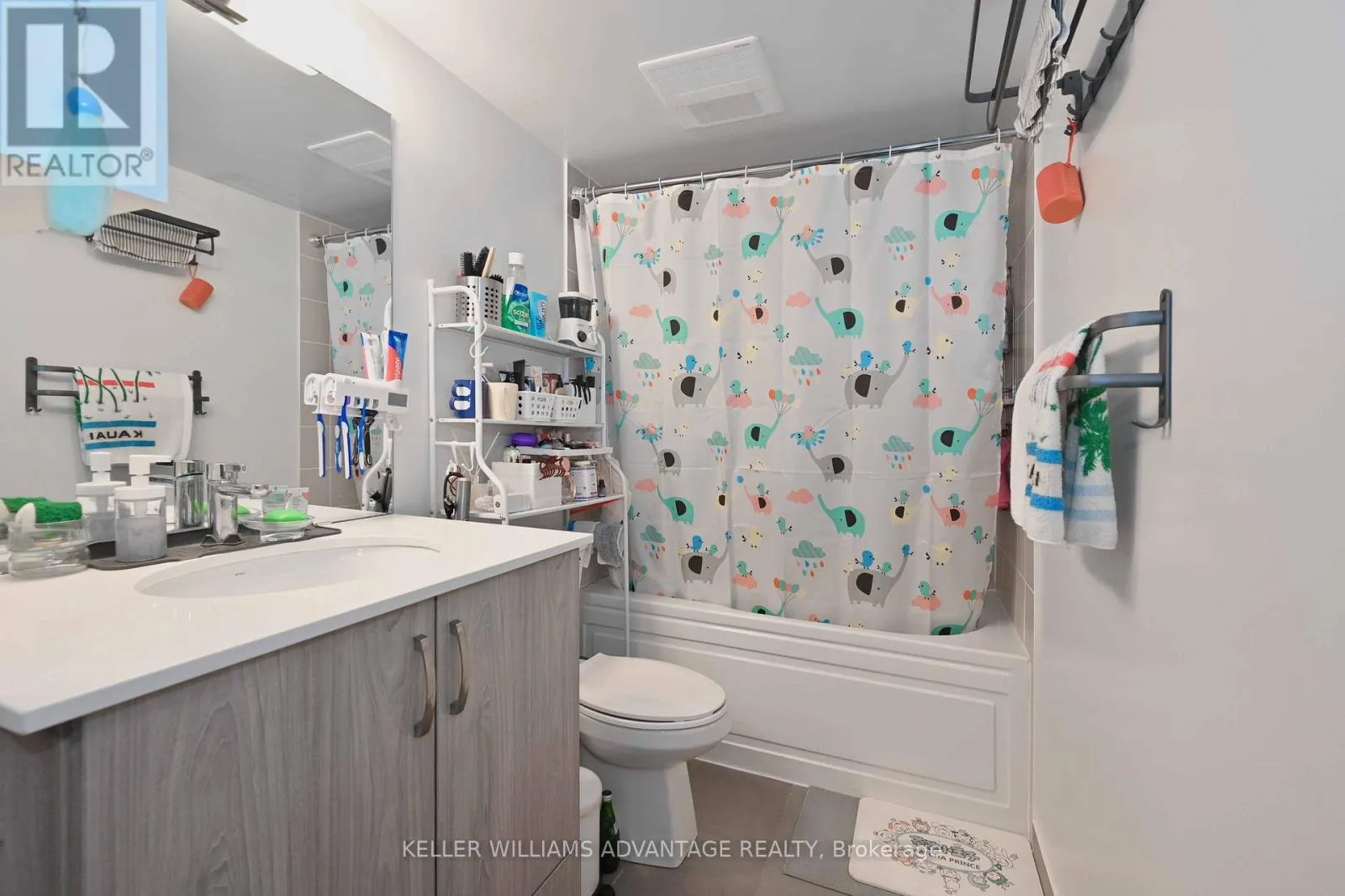 Cross Streets: Markham Rd. & Ellesmere. ** Directions: Meadowglen runs north of Brimorton East of Markham Rd. Location! Location! Location! Bright 1 Bedroom Condo Unit Available For Sale. Modern finishes throughout - Kitchen With Quartz Countertop & stainless steel appliances. Living room walks out to a private balcony with western city views, ideal for your morning coffee or relaxing evenings. The bedroom features a large closet & space for furniture. Carpet free! Large bathroom with convenient en-suite laundry. Note the +1 is a den which is the area next to the kitchen (see floor plan for details) Enjoy resort-style living with a Miami-inspired rooftop terrace featuring a pool, BBQ stations, and multiple relaxation areas. Residents have access to the exclusive ME 2 Club, offering a sports lounge, billiards, games room, yoga and fitness studio, party and dining rooms, guest suites, and even a private theatre. In the winter, the on-site pond transforms into a skating rink. Ideally located near Hwy 401, public transit, U of T Scarborough, Centennial College, shopping, and parks! This move-in-ready condo truly has it all. Experience modern city living at its finest! Upgrades include: LVP in living/dining area, bulkhead with pot lights in living room, upgraded roller blinds, higher than standard bathroom vanity. RARE to find both parking & locker included in this price point! (id:27476)