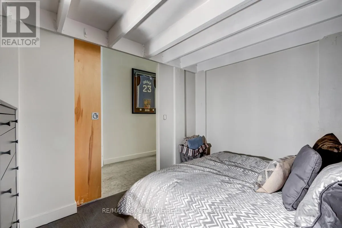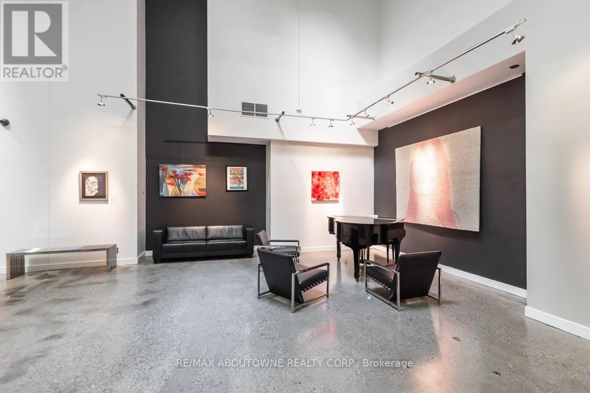 Dundas / Church This partially furnished 1+1 Bedrm Loft Is An Absolute Must See That Has All The "I Wants", Open Concept W/12'Ceilings W/ Exposed Ductwork, Concrete Flrs & 8' Wood Drs Sliding On Metal Barn Rollers Throughout. Uniquely Designed W/A Metal Ladder In The Bedrm To An Upper Level Studio That Can Be Used As A 2nd Bedrm, An Office Or Additional Wardrobe Space. The Industrial Vibe Kitchen Has Granite Countertops & Island, Wood Cabinetry W/ Undermount Lighting, & Brick Backsplash Extends Into The Living Room Accent Wall .Loft Style, Ss Apps, Granite Countertops, 12' Ceilings, Concrete Flrs, Exposed Ductwork, 1 Parking, and EV charger available. (id:27476)