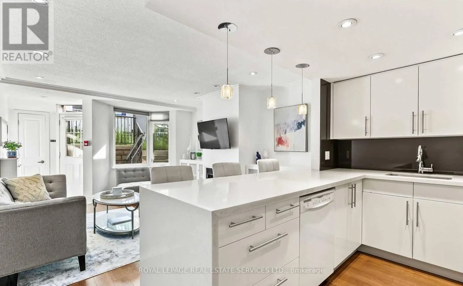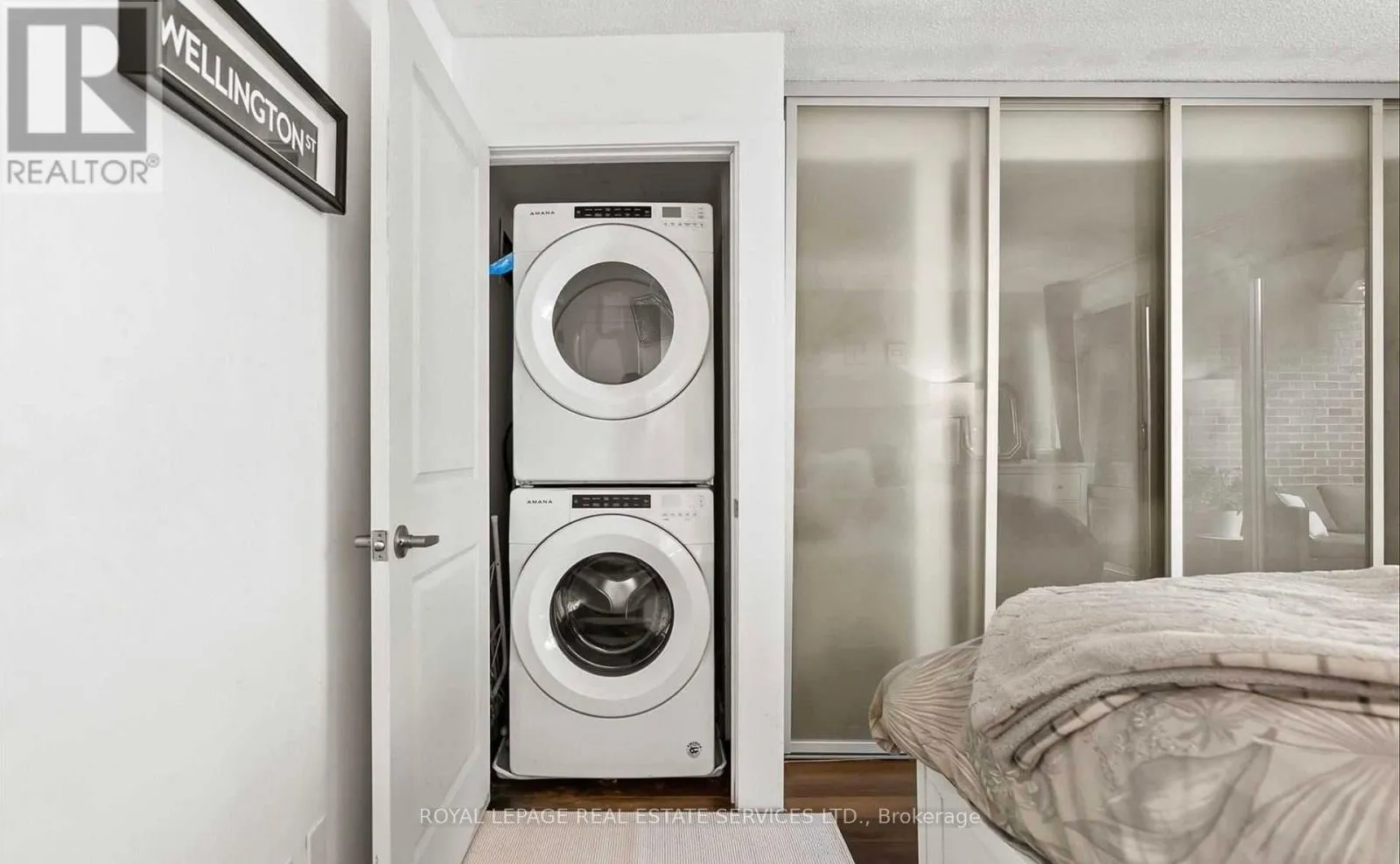 Bathurst & Wellington Excellent Stacked Townhouse In King West! Bright 1 Bedroom, 1 Bathroom Unit With Approx. 657 SqFT & Hardwood Floors Throughout. Kitchen Includes Breakfast Bar, Stone Counters & S/S Appliances. Large Bedroom With Ample Closet Space, 4PC Bath & W/O To Rear Privately Fenced Backyard! Ensuite Laundry & 1 Underground Parking Space Included. BBQ's Allowed. Unit Features Access To 701 King St W Amenities, Which Include Indoor & Outdoor Pool, Sauna, Gym & Visitor Parking. Ideal Location In The Heart Of The City & Steps To Everything. (id:27476)