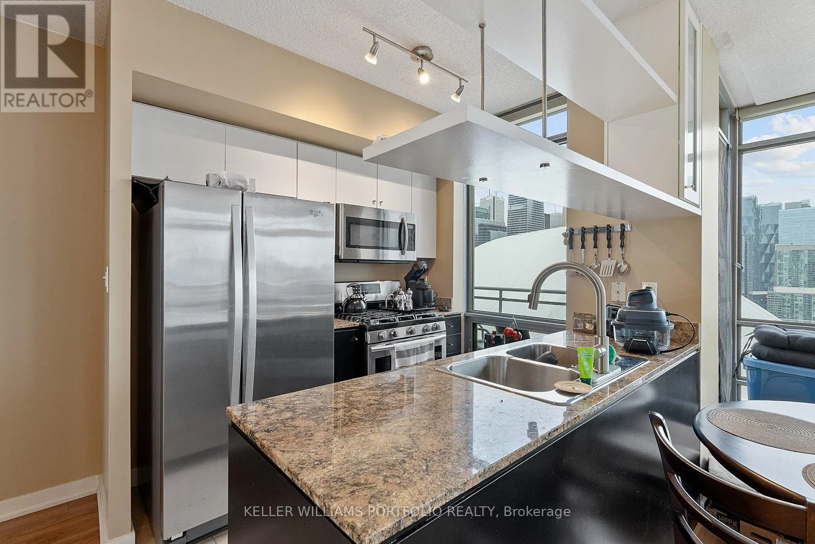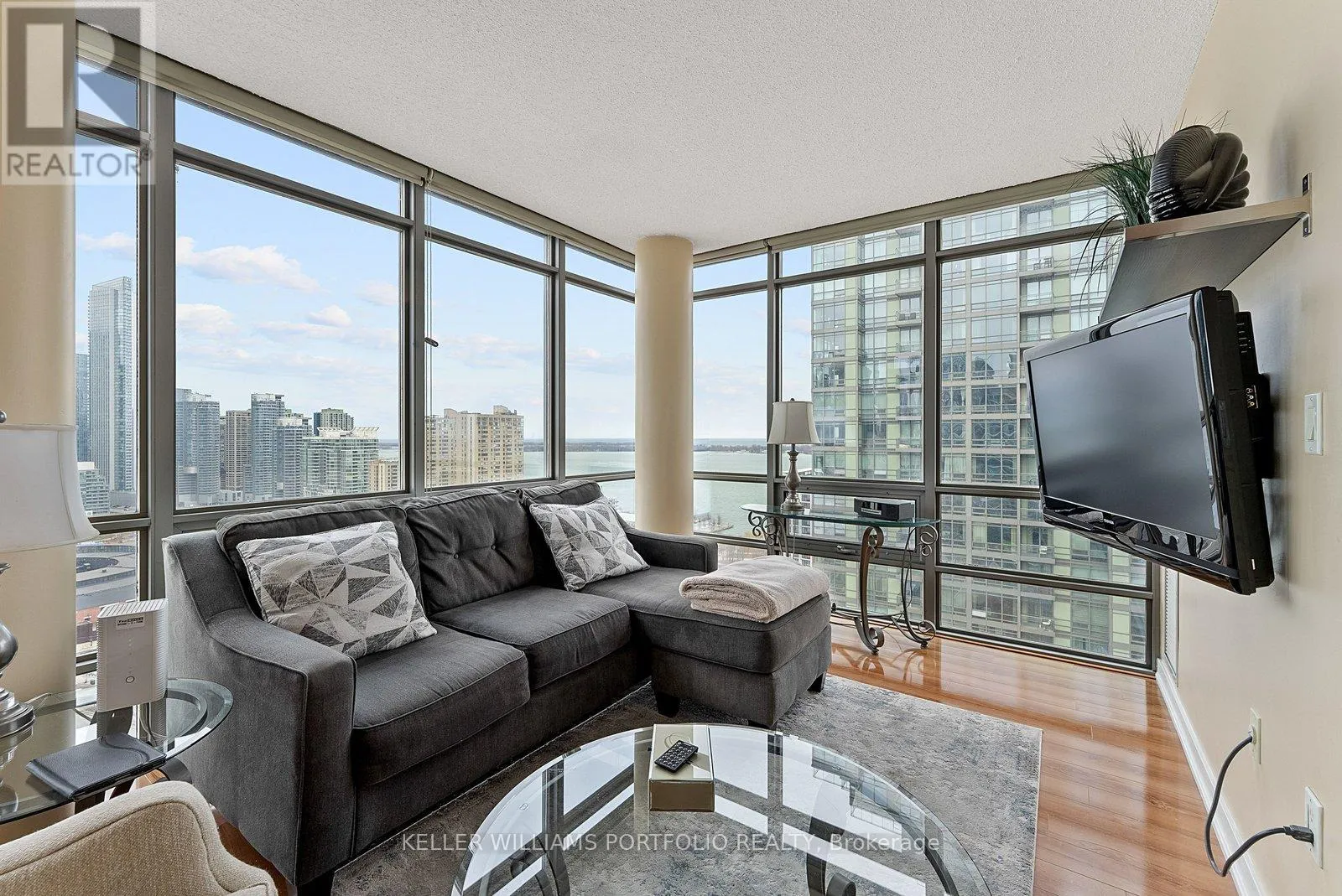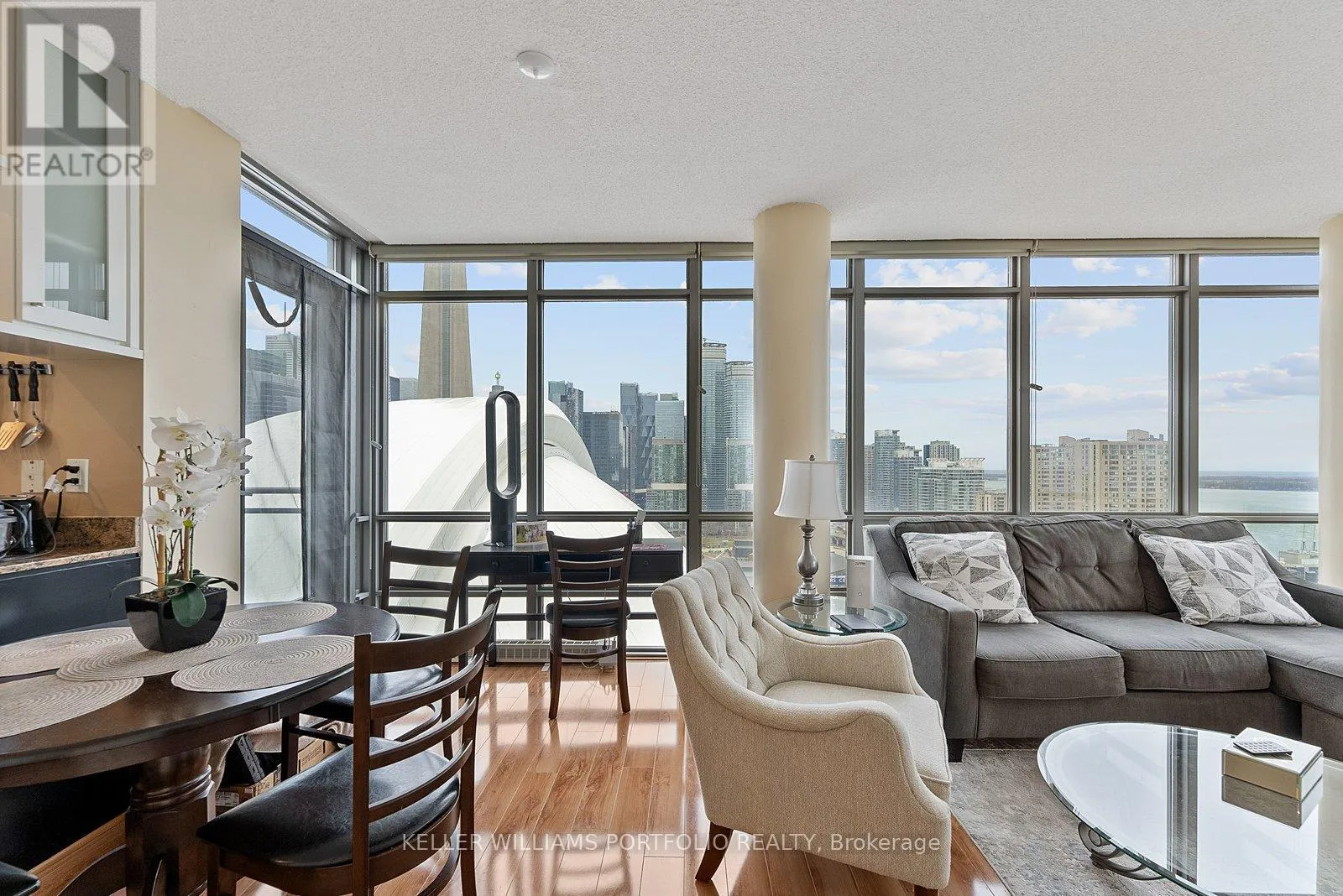 Spadina Ave / Bremner Blvd Must-see listing for a stunning 1+1 bedroom corner unit. This property features an open-concept floor plan with floor-to-ceiling windows and spectacular southeast views of the city, the lake, and the Rogers Centre-you can even enjoy baseball games directly from your balcony.Residents have access to the 30,000 sq. ft. Super Club, which includes an indoor pool, a large gym, a spinning studio, and basketball, squash, and tennis courts. Additional amenities include a media room, bowling alley, and an outdoor terrace with BBQ facilities. (id:27476)