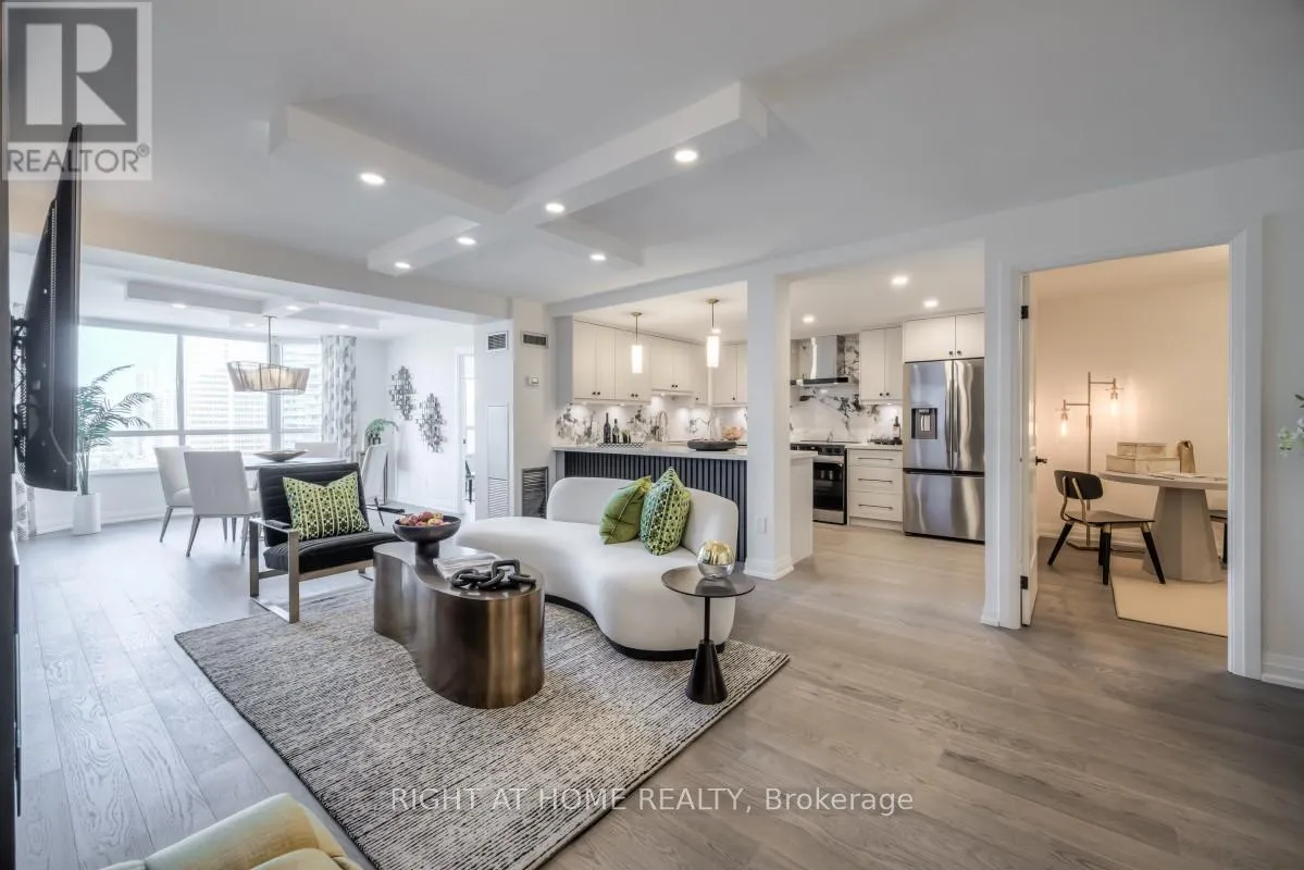 Cross Streets: Yonge St / Finch Ave. ** Directions: Yonge St, south of Finch Ave; entrance on Kempford Blvd. Welcome to Suite 1810 at 5444 Yonge St, an expansive, fully renovated 2+1 bed, 2 bath, 1429sf residence in the heart of North York City Centre. Perfect for those rightsizing from a detached home or moving up from a smaller condo, this thoughtfully designed home combines spacious proportions, modern finishes, and everyday convenience. Set just off Yonge and Finch, the building enjoys a rare balance of city energy and neighbourhood calm. Inside, wide sightlines and an open layout connect the living, dining, and kitchen areas. A striking paneled feature wall with integrated fireplace anchors the living room, while dimmable lighting and expansive windows create a warm, inviting atmosphere for both lively gatherings and quiet evenings at home. The kitchen combines function and style with abundant counter space, custom cabinetry, and a striking backsplash, perfect for preparing meals or lingering over morning coffee. The dining room, framed by a bay window and custom drapery, sets the stage for elegant entertaining or family dinners. The versatile second bedroom and spacious den provide flexibility for guests, a home office, or hobbies, each with generous storage. Tucked away in its own wing, the primary suite is a true retreat with serene views, custom cabinetry, blackout drapery, a walk-in closet, and a beautifully finished ensuite bath. A dedicated laundry room with full-sized appliances and sink adds comfort and practicality. From every window, enjoy a choice of views: vibrant cityscapes to the east, or treetop horizons and open skies to the west. Here, you never have to compromise between energy and tranquility. Residents also enjoy a wide range of amenities including indoor/outdoor pools, fitness centre, tennis, squash & pickleball courts, billiards, BBQ area, walking paths, visitor parking, car wash, concierge, party room, guest suites, and 24h security. This is turnkey luxury living at its best: spacious, refined, and perfectly connected to everything you need. (id:27476)