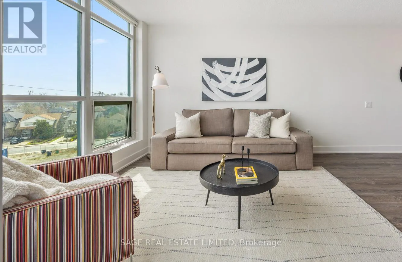 Cross Streets: Broadview & Mortimer. ** Directions: Just North of Pottery Rd. Whether You're Stepping Into Home Ownership or Looking for a Turnkey City Pied-a-Terre, This Suite Delivers Comfort, Simplicity, and Style. Enjoy Easy, Contemporary Living in This Beautifully Maintained 1 Bedroom, 1 Bath Suite That Offers a Smart, Functional Layout and an Abundance of Natural Light. A Modern Eat-In Kitchen is Equipped With Sleek Stainless-Steel Appliances and is Designed For Both Everyday Living and Entertaining. This Open-Concept Living Space Flows Seamlessly, Maximizing Every Square Foot & Ensuring That Every Nook is Sunlit! The Spacious Bedroom Includes a Double Closet and Direct Walk-Out to an East Facing Balcony, Creating a Calm and Airy Escape - the Perfect Spot for Your Morning Coffee. Ensuite Laundry Adds to the Convenience of This Low-Maintenance Suite. Step Outside and the City Unfolds Around You. Grab Fresh Groceries Just Across the Street, Stroll to Your Favourite Spots Along the Danforth, or Hop on the Subway Just a Quick Walk Away. On Weekends, Wander Through the Don Valley Trails or Spend a Morning at the Brickworks Farmer's Market. Hop on the Freeway in Minutes! Minto Skyy is a Well-Maintained, LEED Certified Building With 24 Hr Concierge & Exceptional Amenities in the Skyy Club: Large Party Room With Spacious Terrace & BBQs, Theatre, Library, Weight/Yoga & Cardio Rooms, Sauna & Bike Storage. Plenty of Visitor Parking Too. A Fantastic Opportunity Offering Fabulous Value in a Modern, Eco-Conscious Building. (id:27476)