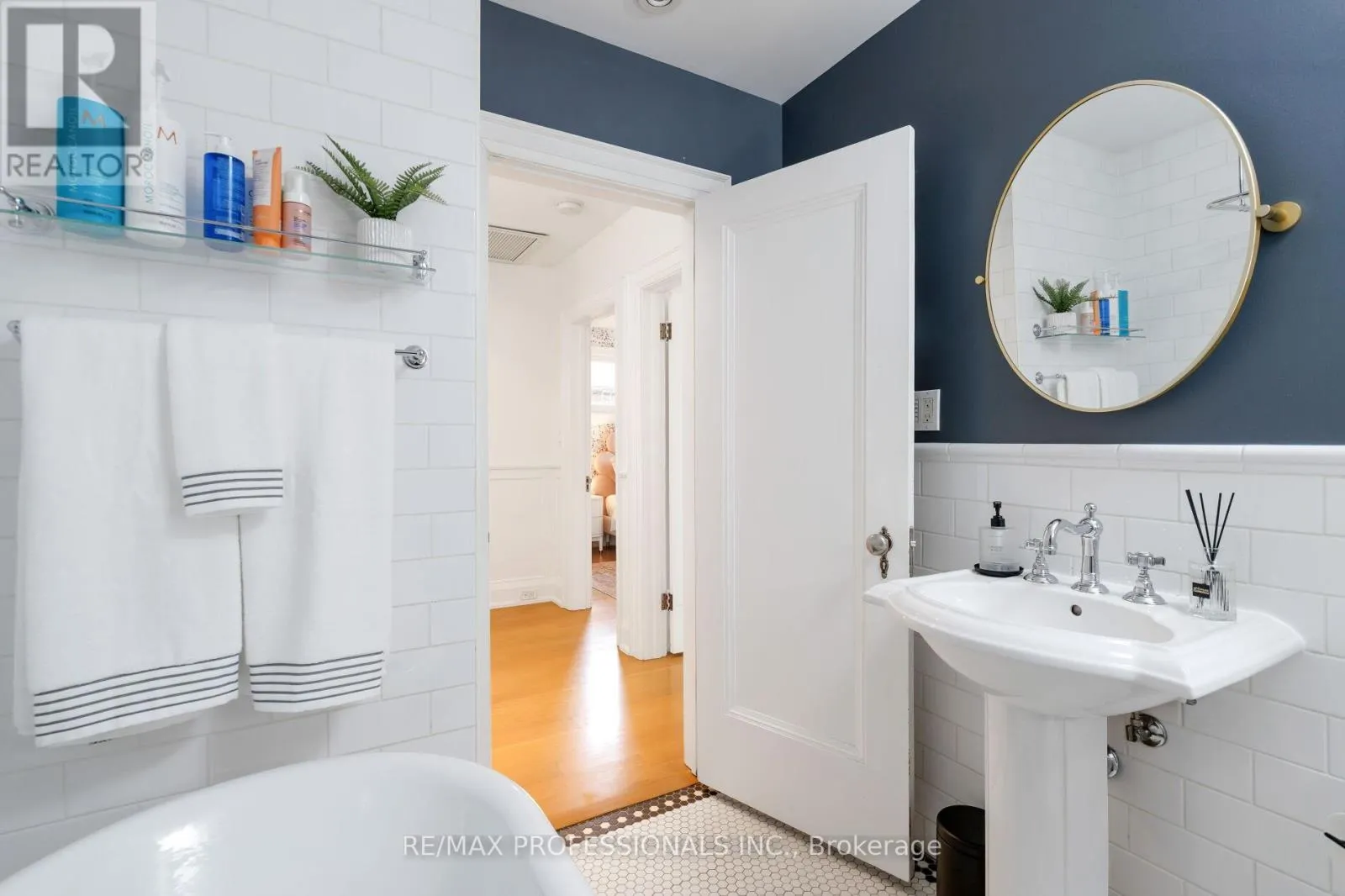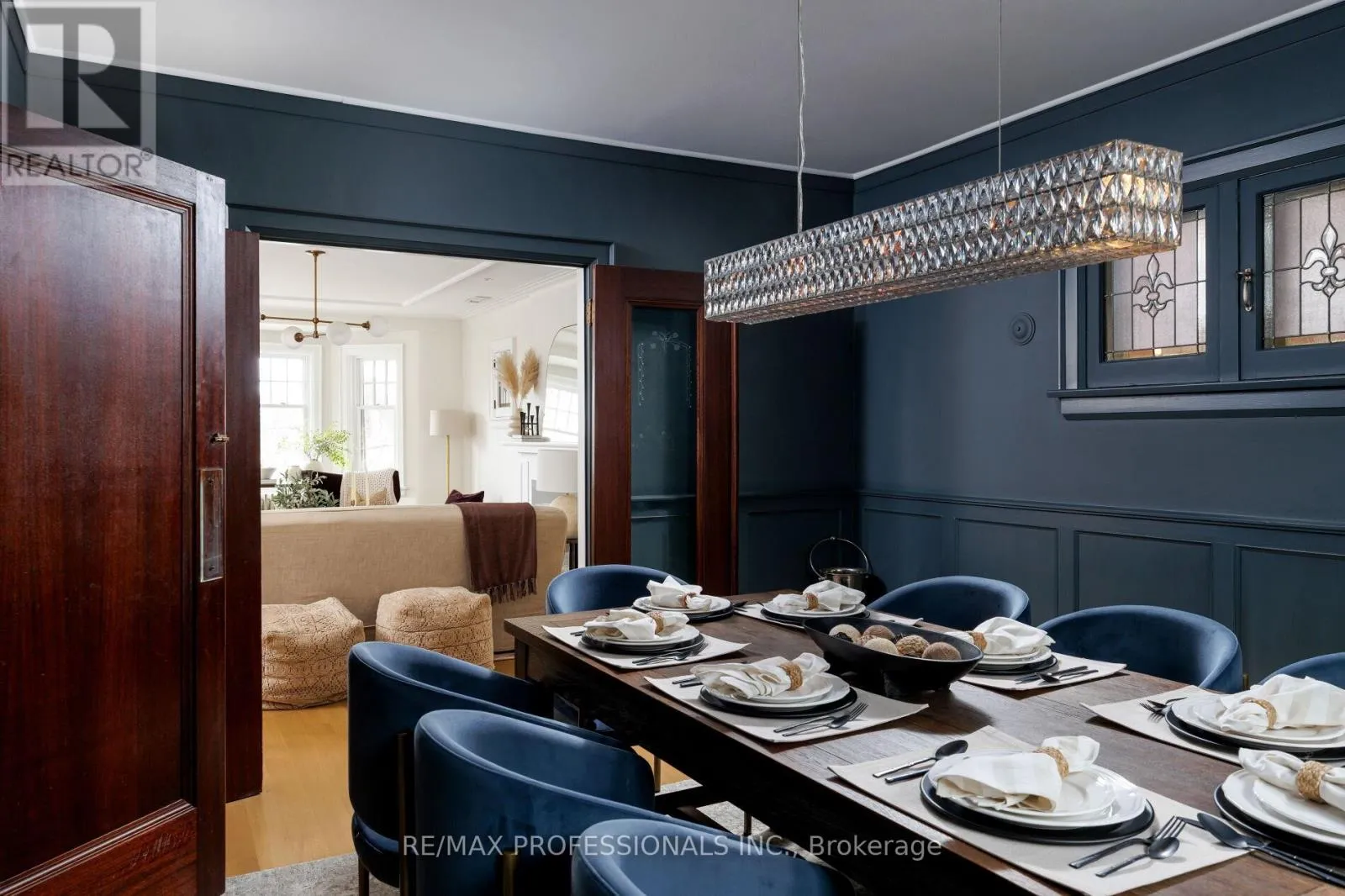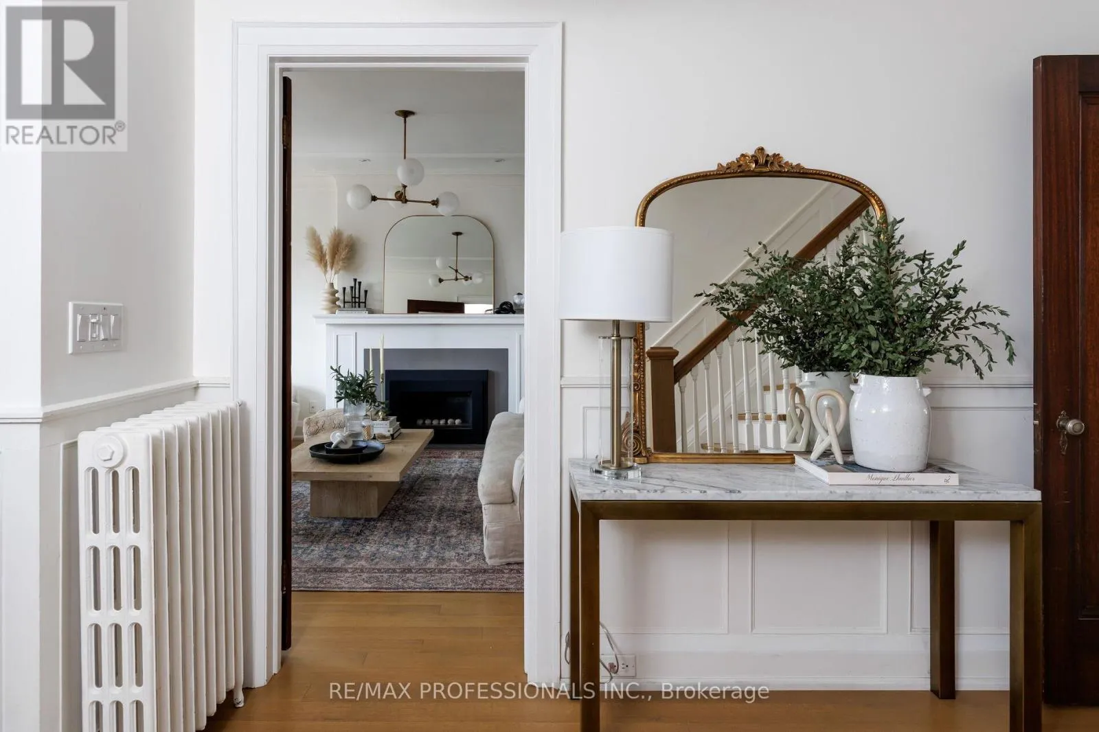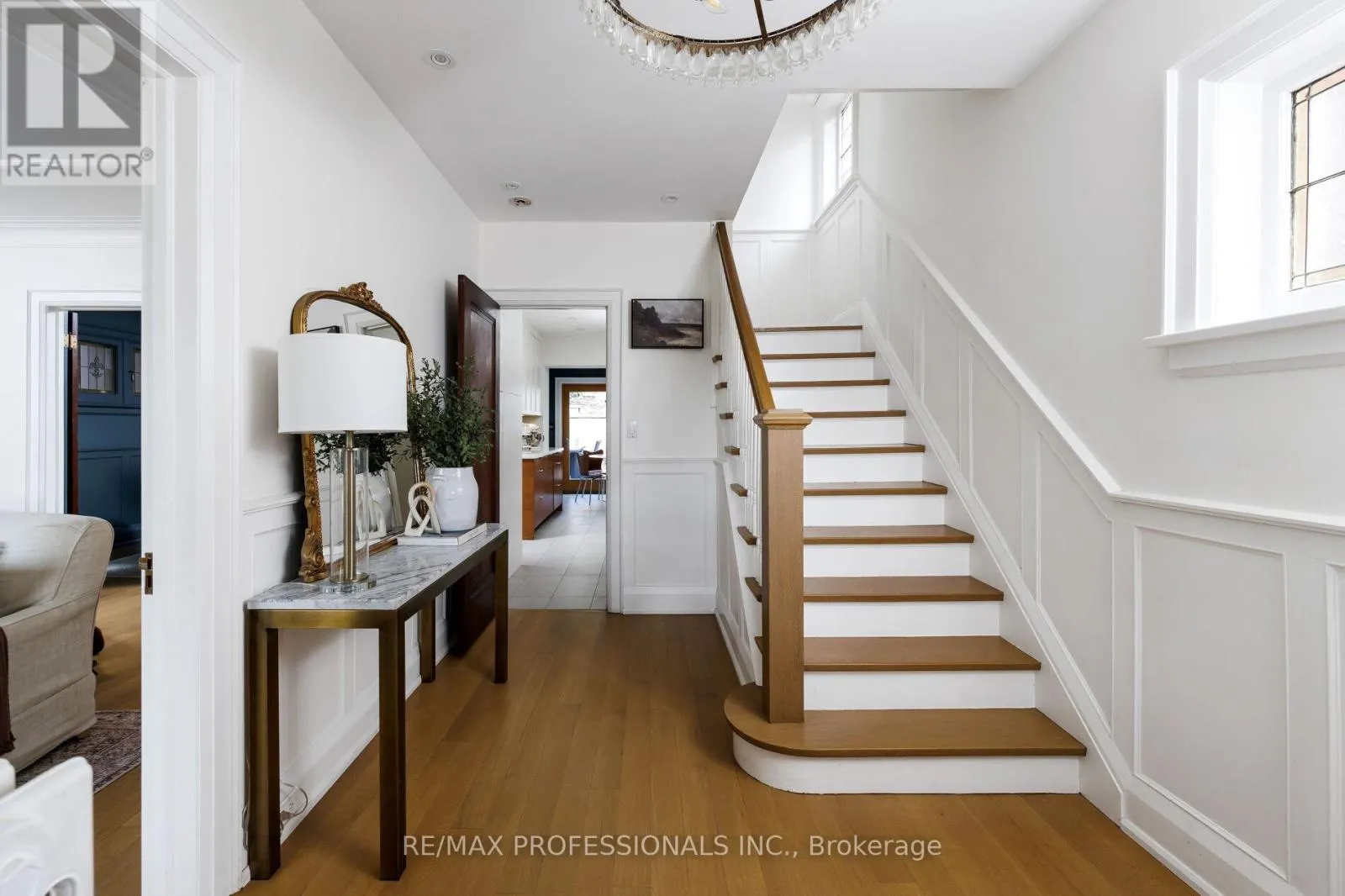 Old Mill Drive & Old Mill Rd Overlooking the Iconic Old Mill and Humber River, just off the historic brick streets of Halford Ave, sits Riverview Gardens. A quiet cul-de-sac of only thirteen homes, all with unobstructed tree-top views of Etienne Brulee Park and the river valley. It's charming and feels set apart, yet it's so close to the best of the West End's amenities.99 Riverview Gardens draws you in from the street with its timeless Tudor Revival facade and cascading river-rock gardens that burst with mature hydrangeas when the weather warms. Enter a warm transitional home featuring a rich marble foyer flanked by two closets for ample storage, warm hardwood floors, and an inviting layout perfect for entertaining. This home is atypical in the best way - characterized by large, gracious rooms throughout. Even the basement is a standout, featuring extensive excavation that makes it a space you'd truly use. Hollander Landscaping meticulously updated the backyard, creating gardens, grass & entertainment spaces. The professional gardener planned gardens and flowering river rock walls that balance the hardscaping. Don't miss it! (id:27476)