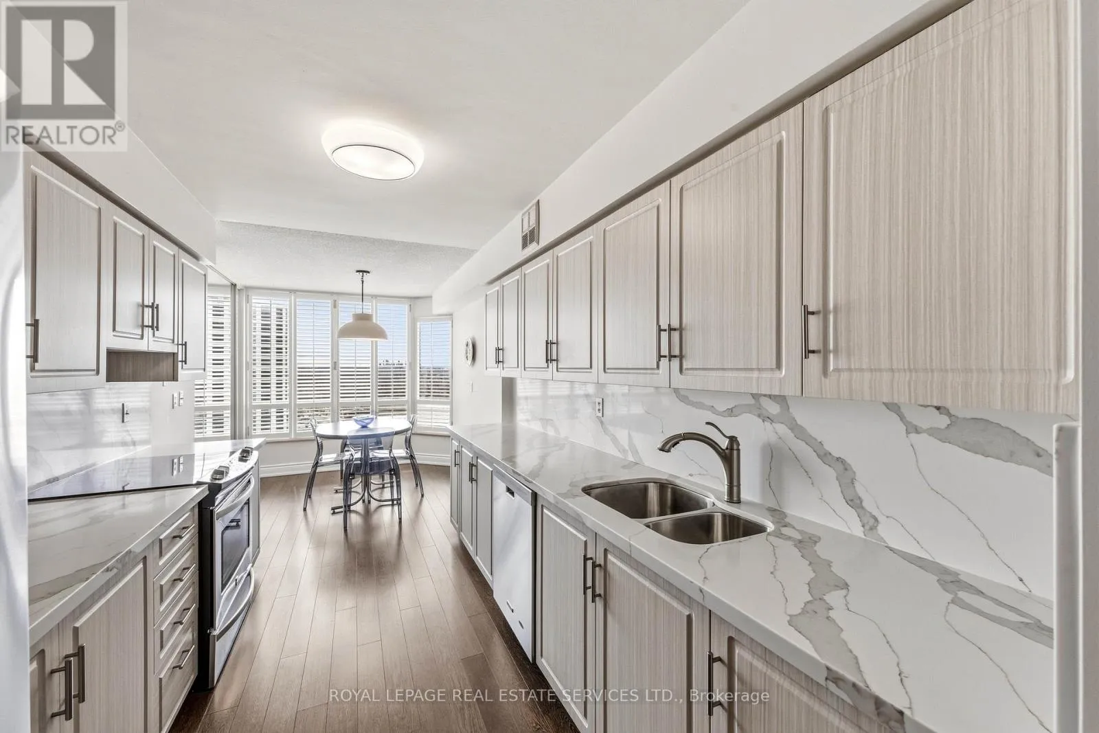 Islington Ave / Dundas St W Exceptional Meticulously Maintained Designer Appointed And Spacious Over 1,300 Sq Ft 2 Bedroom, 2 Bath Suite In The Barclay Terrace Residence. Foyer Leads Into A Bright Dining And Living Space Featuring Engineered Hardwood Floors Opening Up To The Solarium Bathing The Space In Natural Light And Perfect For A Morning Coffee Or Tea. Endless Windows Throughout With Stunning California Shutters Leave No Corner Untouched By Sunlight. Expansive Galley Kitchen Features Custom Cabinetry, Porcelain Counters, Stainless Steel Appliances And Breakfast Nook With Large Window Perfectly Suited For Everyday Living And Adding Versatility To The Suite. Large 4-Piece Bathroom Featuring Marble Patterned Porcelain Shower, Sizeable Bath Tub, And Secondary Walk Through Access To Primary Bedroom For Ease. Primary Bedroom Is Adorned With Large Window, Two Double Closets, And Built-Ins Providing Abundant Storage Space. Suite Includes 1 Parking Space, Ensuite Locker Next To Foyer For Convenience. Experience Resort-Style Amenities Including A 24-Hour Concierge, Indoor Pool, Hot Tub, Fitness Center, Tennis And Squash Court, Billiards, And A Party Room. Wonderful Resident Community Around The Corner From Islington Village Boutiques, Cafes, And Restaurants. Steps To Islington Subway Station, Islington Golf Club, Bloor St Shops, Tom Riley Park, And Mimico Creek Trail. Top Rated Schools Just Minutes Away. Exceptional Highly Sought After Residence In Outstanding Etobicoke Community. (id:27476)