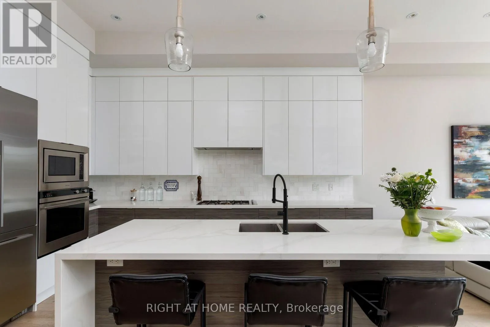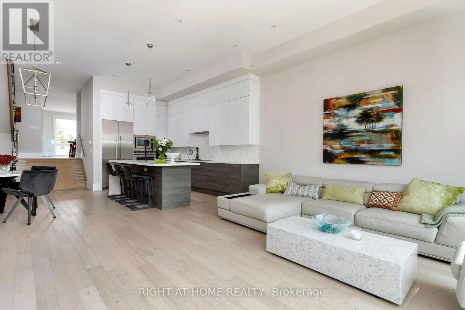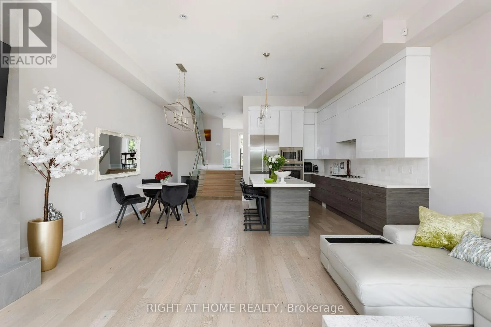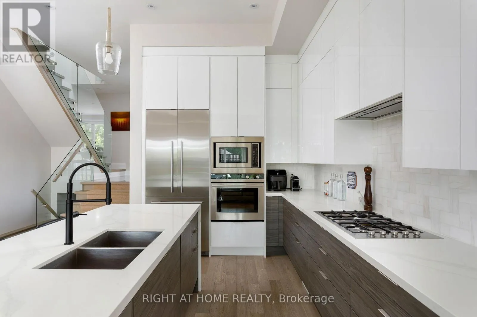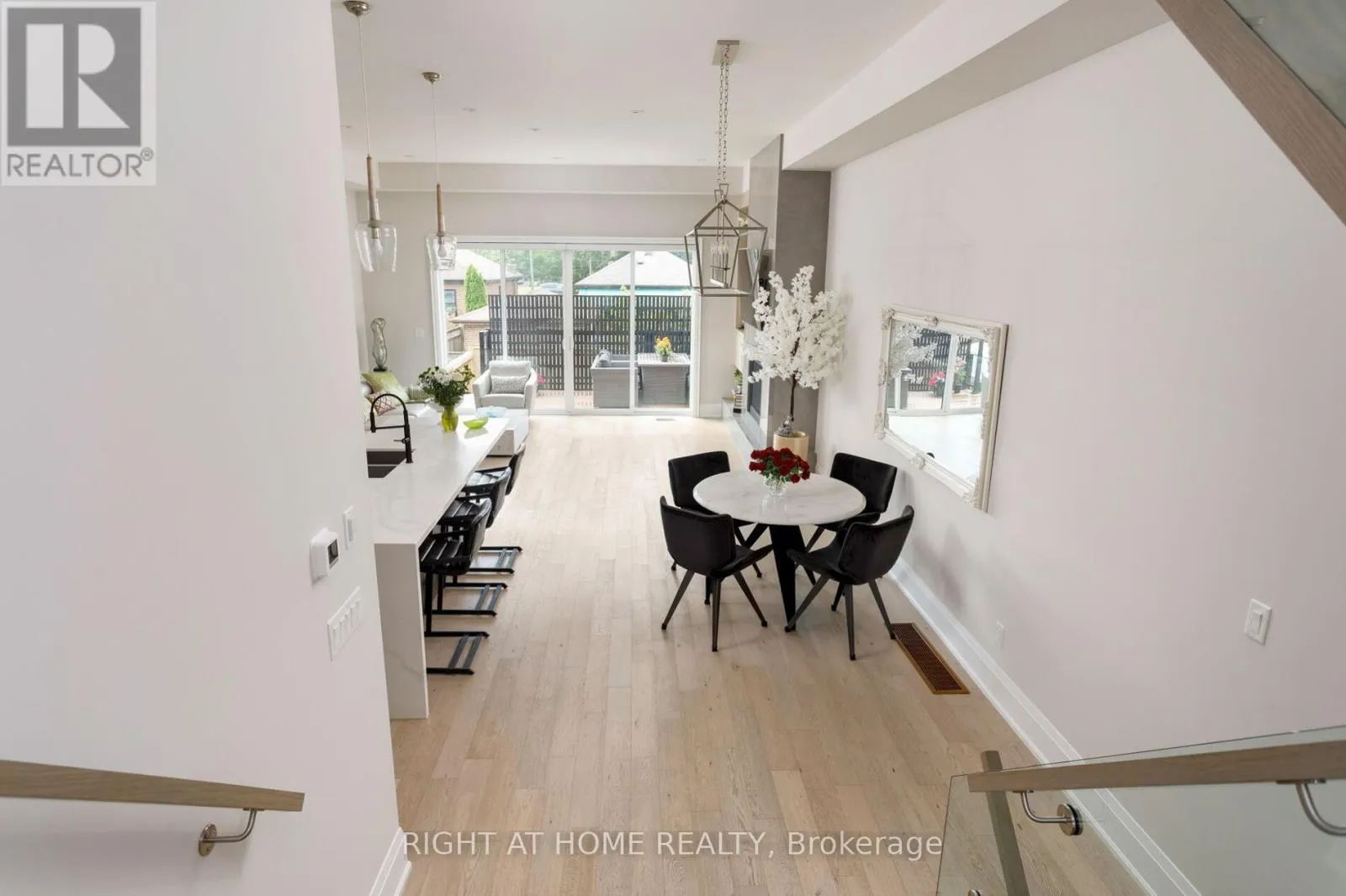 Royal York & Hay Ave. Not all homes are created equal. This all brick ,Energy Star certified masterpiece created by Wynford Homes will take your breath away. With over $100k in upgrades and aprox. 3000 sq/ft of beautifully designed total living space it offers 3 bedrooms and 4 bathrooms finished with a modern sophistication that is unmatched. The 11 ft ceilings in the main living space and 8 ft double sliding doors across the back of the home create a bright and beautiful flow out to the private back deck. The beauty of the upgraded designer Cameo kitchen is enhanced by a 9 ft quartz island with waterfall, double sided breakfast bar and Italian marble backsplash. The upgraded Fisher Paykel appliances and bounty of custom kitchen cabinetry is complimented by the 11 ft porcelain clad gas fireplace with floating custom shelving. Along with the accompanying dining area this space is a dream for families and entertaining. The 6 ft porcelain floors in the separate dining area create a bright and quiet elegance along side the beautiful 5" hardwood floors throughout. The glass railings initiate a seamless transition as you move to the upper level of the home where you will find 3 large bedrooms. The generous primary suite is accompanied by a large on suite adorned with a large free standing tub and separate glass enclosed shower. The walk in closet offers an abundance of custom cabinetry. As you move to the lower level of the home you are met with a bright open concept space with 10.5 ft ceilings and outfitted with your own private luxury gym space. In the backyard you will enjoy peace and tranquility on the expansive maintenance free composite deck overlooking the large fully fenced newly sodded yard. The location is ideal as you will be 15 min to downtown , 100m from a large park with pool and community centre, 2 min from the Mimico Go station and Sanremo Bakery at the top of the street. With 143ft of total lot depth . Remote Hunter Douglas Blinds were also newly installed for added privacy. (id:27476)