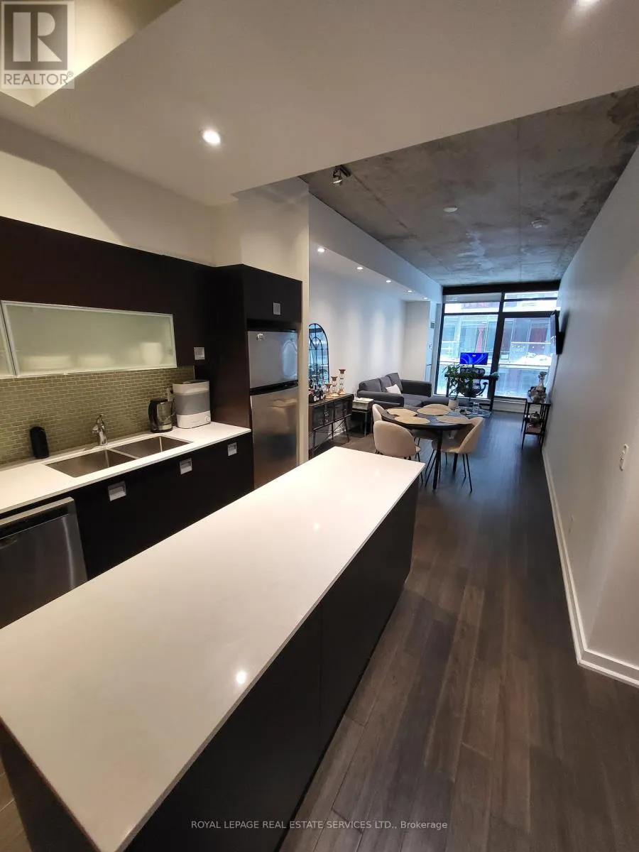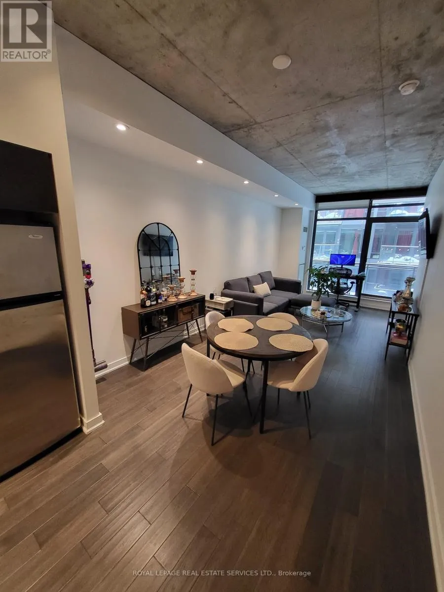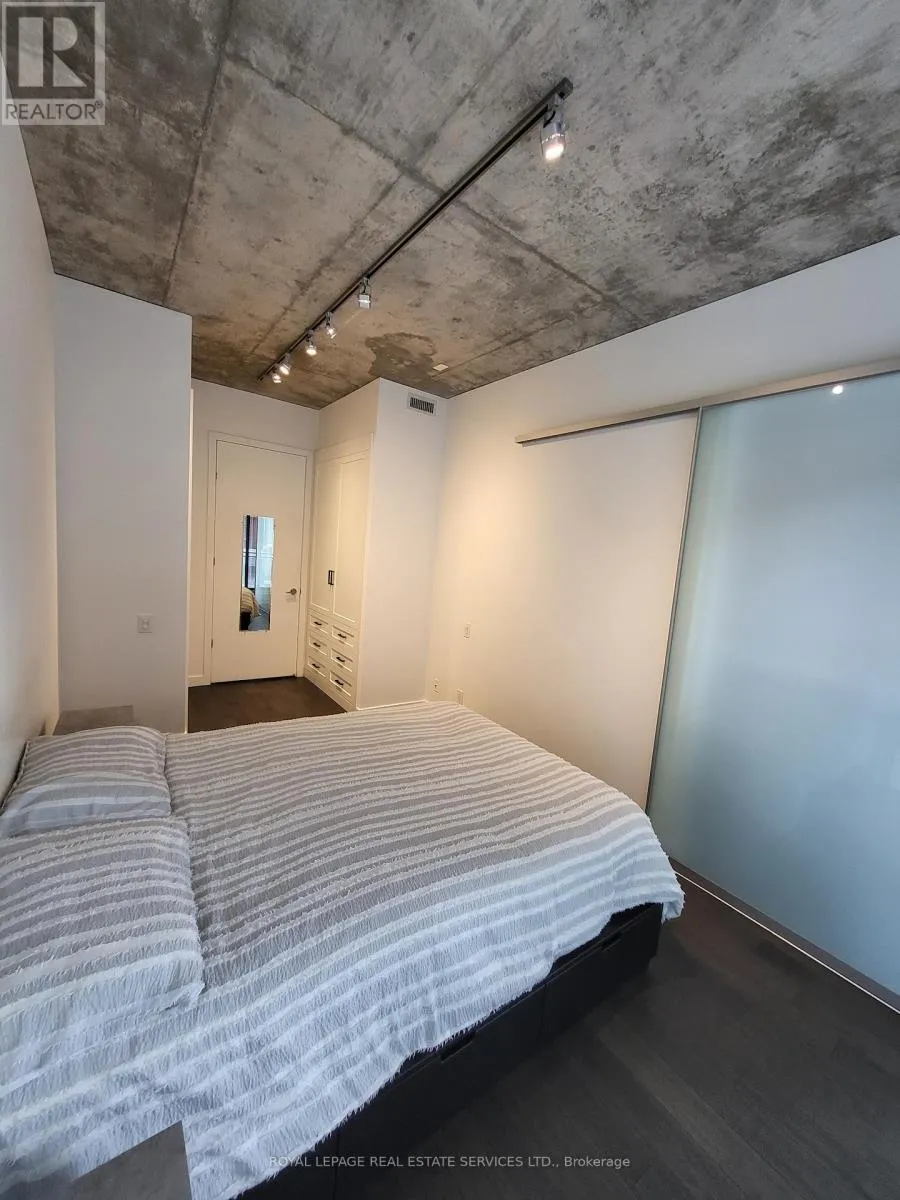 King & Portland Premier Loft Living At The Boutique Fashion District Lofts. This 1+1 Bedroom, 1 Bathroom Unit Measures Approx. 765 SqFT. The Open Kitchen Includes Ample Storage Space, Centre Island & Stainless Steel Appliances. Concrete 10FT High Ceilings & Hardwood Floors Throughout. Large Bedroom Includes B/I Closets, 4PC Ensuite & Large Windows. Spacious South Facing Balcony With Views Of CN Tower. Separate Den Combined With Ensuite Laundry. Ideal Location In The Heart Of King West & Steps To Everything The City Has To Offer! (id:27476)