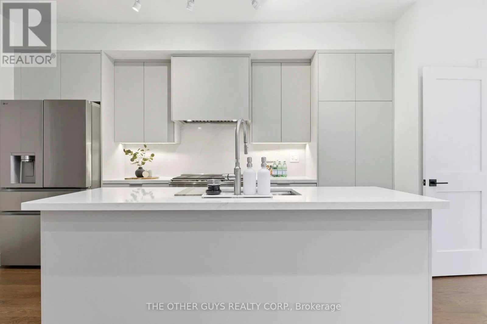 Cross Streets: Victoria Park / Lawrence. ** Directions: Victoria Park Ave to Clintwood Gate. Not your average Townhome! If you're looking for something extraordinary, well-thought-out yet cozy with great value, you've come to the right place. Bright and cheerful rooms. This never lived in Townhome is presented with mainly custom finishes throughout instead of typical builder grade finishes and appliances. *Check out the Solid doors and the cool baseboards and window casings. ***Check out the potlights throughout. ***Check out the oversize custom kitchen with tons of storage including coffee/microwave station and brand name appliances. *Check out the 36" fridge. ***Check out the 36" gas stove and range hood. ***Check out the larger kitchen sink with stunning faucet. ***Check out the custom closets in foyer and built in closets in bedrooms (primary suite has built ins on 2 sides). ***Check out the custom heated tiled bathrooms with TOTO Toilets including a wall mounted TOTO in Powder room. ***Check out the vanities and mirrors. ***Check out the engineered floors throughout. ***Check out the basement storage area right off the garage with tile floors. ***Check out the specialty blinds that move bottom up/top down or both for amazing light and privacy. ***Check out the rooftop deck with gas fittings for your gas BBQ. Tarion Warranty. (id:27476)