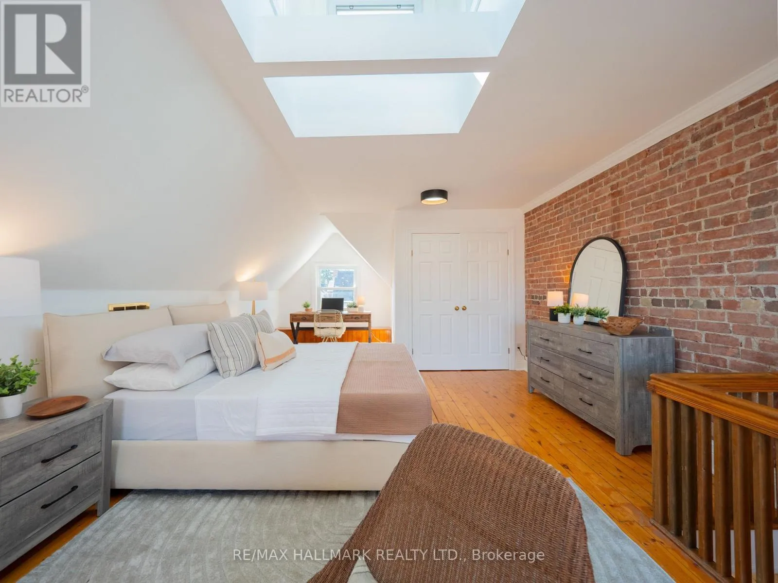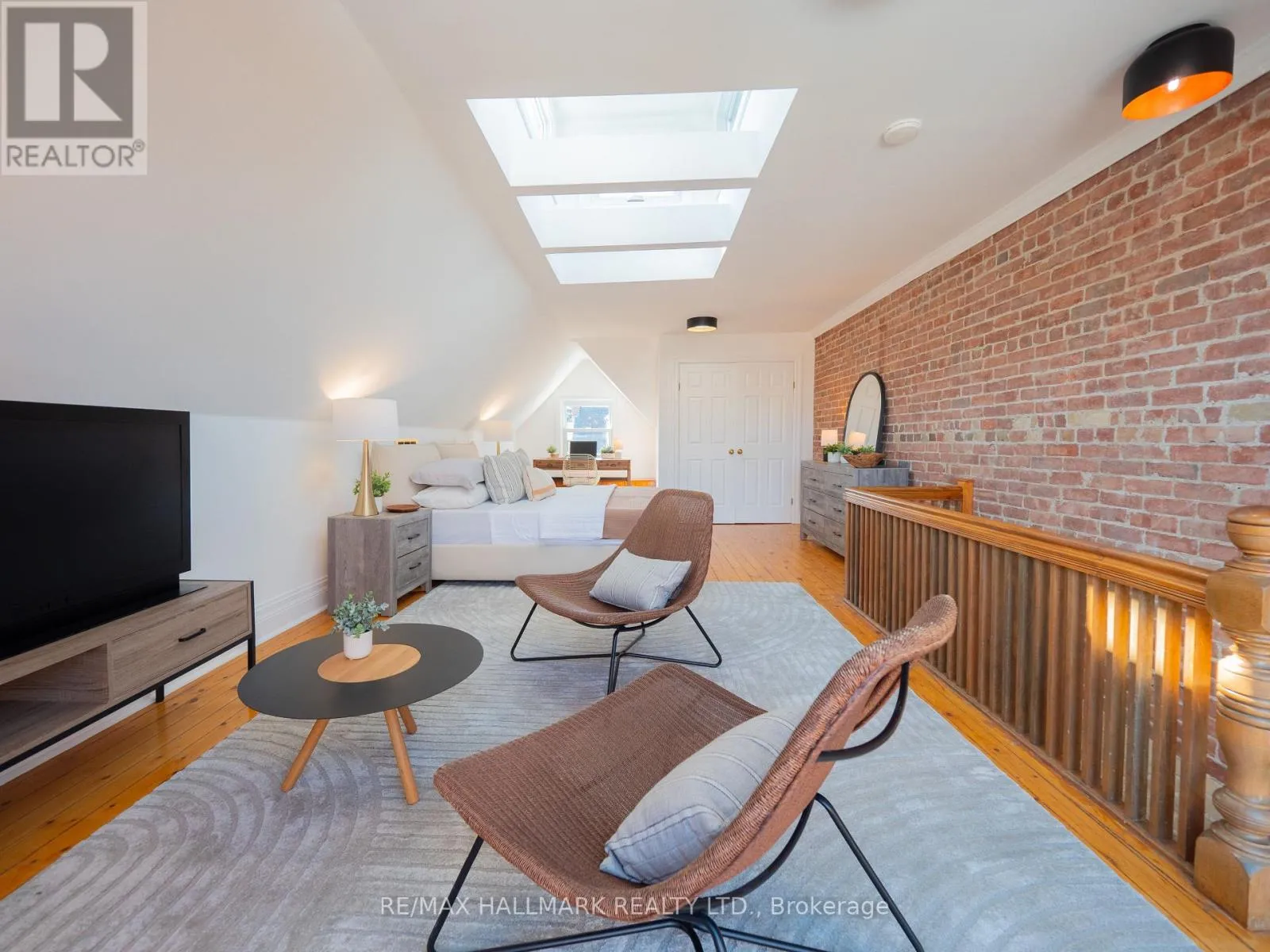 Cross Streets: Broadview and Sparkhall. ** Directions: Between Broadview and Ingham. There's a reason people fall in love with Riverdale and never leave. It's the kind of neighbourhood where you actually know your neighbours. Where you walk to the Danforth on a Tuesday night because the pasta at that place is too good to resist, or you grab your coffee and wander up to Riverdale Park just because you can. That park - if you know, you know. People come from all over the city to catch those sunsets. The skyline laid out in front of you, the whole city glowing. It's one of those Toronto moments that never gets old. And when you live on Sparkhall, it's just part of your evening. That's the life this address gives you. Now step inside. The main floor wraps you in warmth immediately, refinished hardwood floors, a fireplace in the living room, exposed brick that adds all the character you'd hope for in a Riverdale home. The kitchen has been beautifully renovated with a centre island, quartz countertops, a stunning backsplash, and brand new top-of-the-line stainless steel appliances. It's the kind of kitchen that makes you want to cook, host, and linger. Walk out from here to your private, fully fenced backyard. Four full levels of beautifully finished living space. Four spacious bedrooms. Two renovated bathrooms. A high, finished basement that works as whatever you need it to be, a rec room, office, gym, all of the above. And then there's the third floor. An open-concept loft primary bedroom with soaring ceilings, exposed brick, skylights flooding the space with natural light and your own private fenced deck up in the treetops. It feels like a retreat. A genuinely peaceful, beautiful space that happens to be right in the heart of one of the city's most beloved neighbourhoods. Laneway parking for two cars with the potential to build a laneway house. In Riverdale. That's not nothing. Withrow PS catchment. Earl Grey Senior Public. Riverdale Collegiate. (id:27476)