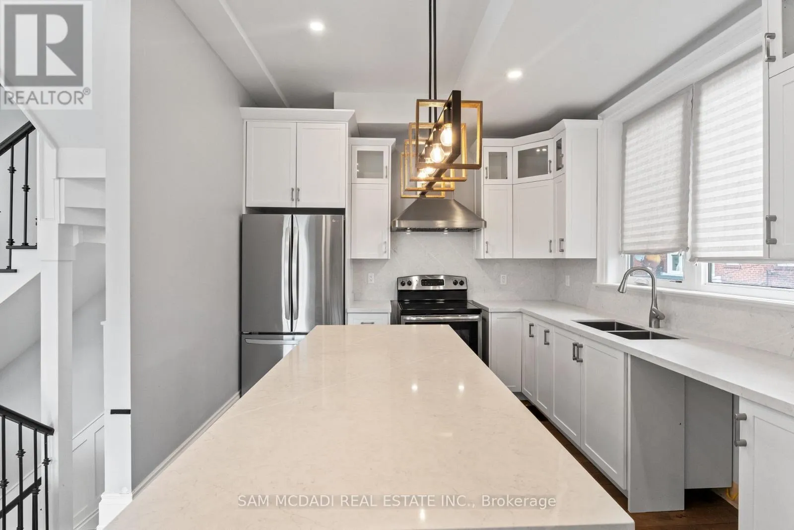 Dundas St & Royal York Stunning Custom-Built Home in Prestigious South KingswayWelcome to this exceptional custom-built residence in the highly coveted South Kingsway neighbourhood of Toronto-a true showstopper that perfectly blends modern elegance with everyday functionality.From the moment you step inside, you're greeted by a grand foyer featuring rich wainscoting, double entry closets, and a sweeping staircase adorned with wrought iron spindles. Expansive windows throughout flood the home with natural light, enhancing the airy, open-concept design.The bright living and dining areas are beautifully framed by large windows, creating an inviting space for both relaxing and entertaining. At the heart of the home is a contemporary white kitchen complete with a granite-topped centre island-perfect for cooking, gathering, and hosting.Upstairs, you'll find three spacious bedrooms, along with a rare third-floor walkout leading to a private rooftop terrace-an ideal retreat offering stunning views and a perfect setting for morning coffee or evening relaxation.Situated on a quiet, family-friendly street, this home is just steps from the scenic Humber River trails, James Gardens, and Etienne Brûlé Park. Enjoy close proximity to transit, top-rated schools, and the vibrant shops and restaurants of The Kingsway, with easy access to major highways and downtown Toronto.A rare opportunity to lease a beautifully designed home in one of Etobicoke's most desirable communities. (id:27476)
