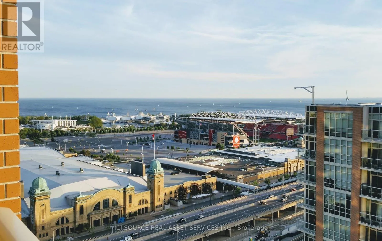 Cross Streets: King / Strachan. ** Directions: King St W to Strachan Ave, South on Strachan, East onto East Liberty St. Building entrance is on the South side. The Pinnacle of Liberty Village Living! This rare, sun-filled 1-Br plus Den unit is located on the 24th floor-the building's highest residential level-offering unobstructed, breathtaking views of Lake Ontario and the City with no neighbors living above. The functional layout features 9ft ceilings and a Den with a private closet, ideal for a professional home office. Enjoy seamless convenience with a storage locker located in a premium room directly off the P1 elevator lobby, providing quick and easy access.Building Amenities: Residents enjoy 24-Hour Concierge, Courtyard, Fitness Club & Wellness Centre, Magnificent Rooftop Lakeview Club With Breathtaking Views for private events, and Spectacular Entertainment Facilities, Including an HD Movie Screening Room With Hollywood-Style Tiered Seating, Bowling Alleys, and a Professional Sports Simulator Room. One Parking & One Locker Included. Experience sophisticated, bright, and quiet living in the heart of the city's tech hub! *For Additional Property Details Click The Brochure Icon Below* (id:27476)