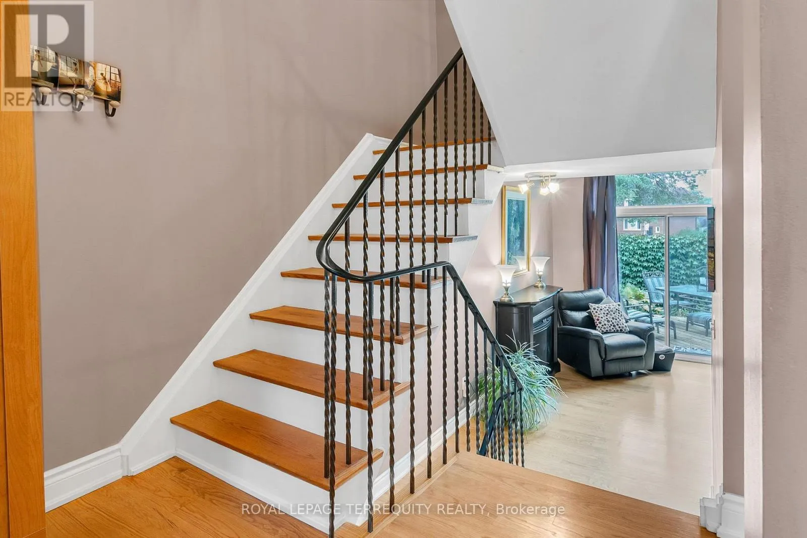 Burnhamthorpe & Mill Welcome to Silver Shadow Path. An extremely well run Townhome community in Markland Wood. This3 bedroom, 2 full bathroom townhome with a fully enclosed rear yard features a private driveway & garage, and is ideally situated on the South side of the complex, backing onto the enclave-exclusive park. Stepping inside, the large foyer, you immediately notice the unique split-level floor plan that offers near 12ft ceilings in the living room- making the home extremely bright and spacious feeling. The walk-out from the living room leads to the very private rear yard, with gated access to park behind. The open concept layout is terrific for visibility. You can keep an eye on friends and family in the backyard from the kitchen, while also being able to see visitors as the arrive at your front door. Upstairs the bedrooms are all well sized with the primary offering huge amounts of closet space, room for a king sized bed, and direct access the semi-ensuite spa-like bathroom. The other two bedrooms also feature oversized closets- larger than what you'd find in most anything built in the last 20 years. Downstairs the rec room is a perfect place to watch tv, or setup a home gym, and the laundry room is large, clean and well lit. These townhomes have a very low turnover rate with extremely high owner satisfaction levels, and are among the best in Etobicoke. Conveniently located with a walking path to the Saturn Rd plaza, parks, schools, and more. Steps from transit access, and minutes from the highway. This home has been with the current owner for over 20 years, and it's time for a new owner to continue its story. (id:27476)