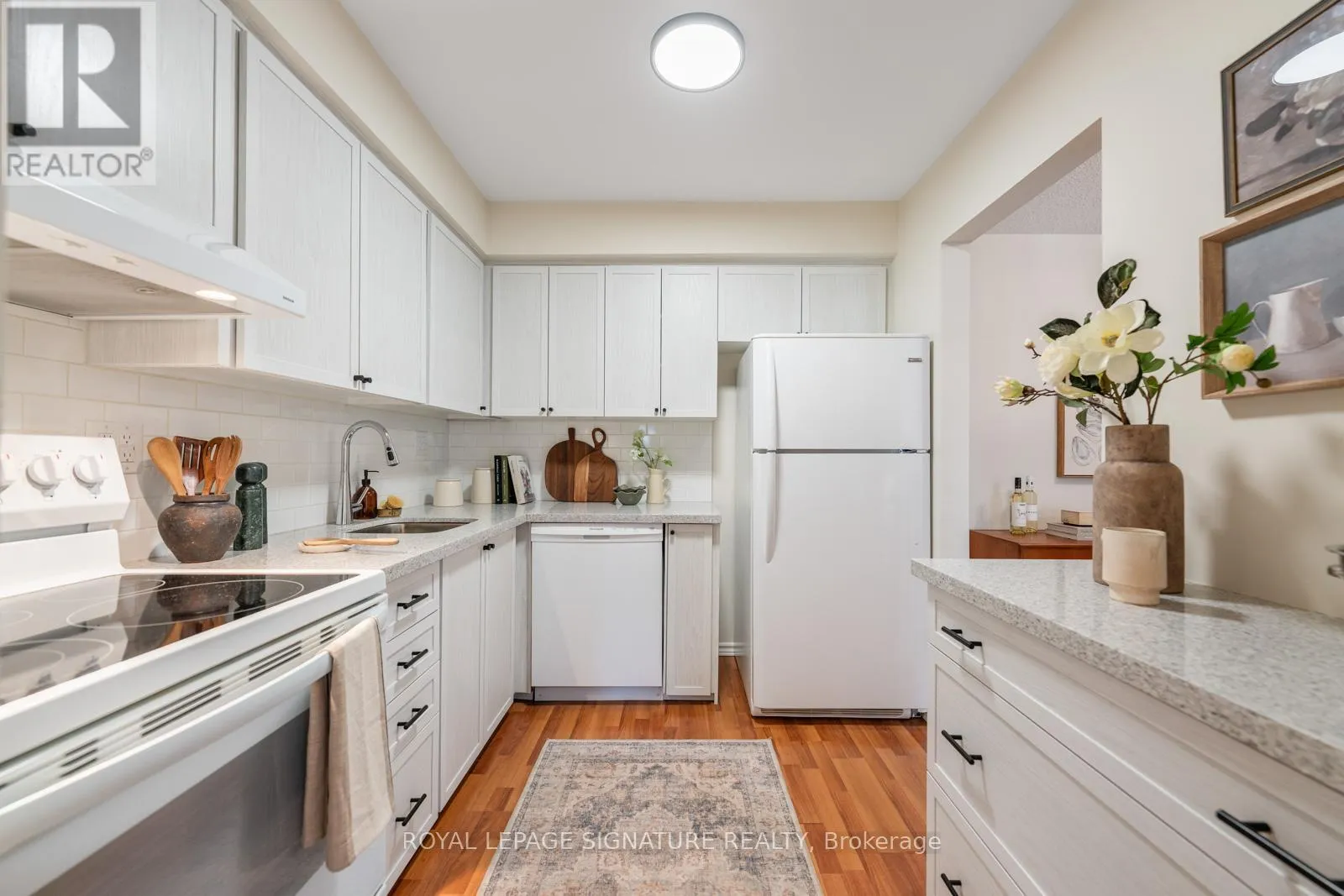 Finch Ave E between Leslie St & Don Mills Rd Say HELLO to The Fernways! This beautifully renovated townhouse is a rarely offered end unit and enjoys the convenience of a built-in garage and parking for two cars. Extensively updated throughout, the modern kitchen features quartz countertops, abundant cabinetry, and generous prep space-perfect for everyday living and entertaining. A main-floor 2-piece bath adds convenience, while all bathrooms have been stylishly upgraded to today's high standards, with new vanities and comfort-height toilets. Freshly painted in a calming neutral palette, the home features upgraded hardware and contemporary light fixtures. New broadloom on the stairs and second floor adds warmth and comfort underfoot. The spacious primary bedroom easily accommodates a king-sized bed and boasts a massive wall-to-wall closet. Two additional well-proportioned bedrooms each feature double closets, ideal for family living or home office needs. Recent upgrades continue with all new windows and patio doors (2026), as well as new electric baseboards on the main and second levels, helping to improve energy efficiency and keep hydro costs down. Low maintenance fees include Bell FIBE internet, water, sewage, and garbage collection. Enjoy the ease of professionally maintained common grounds, including snow removal. Located in a quiet, family-friendly neighbourhood, this home is within walking distance to schools, parks, andshopping. A convenient pedestrian pathway leads to Finch Avenue with direct transit access to the subway. Close to Highways 400 and 401 for effortless commuting. An excellent pre-listing home inspection is available upon request. Truly move-in ready-nothing to do! (id:27476)