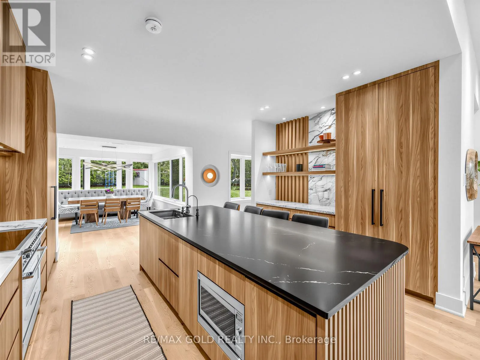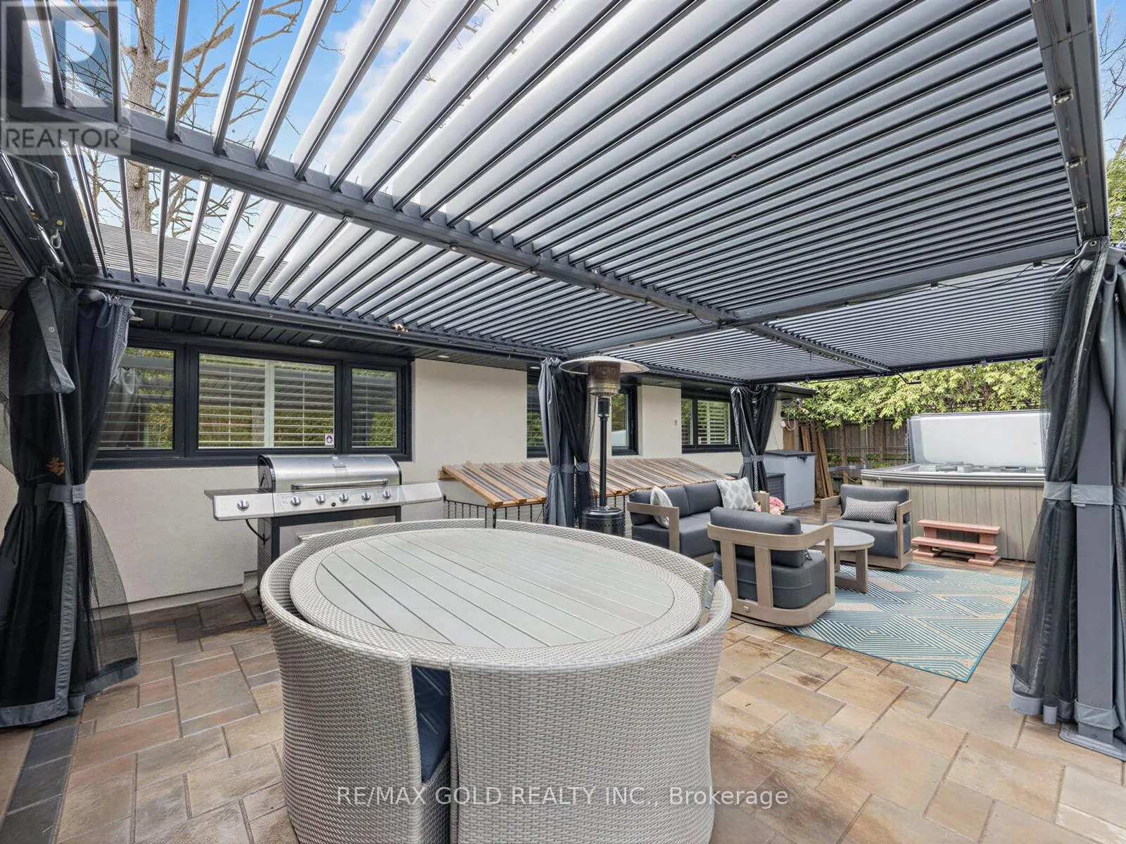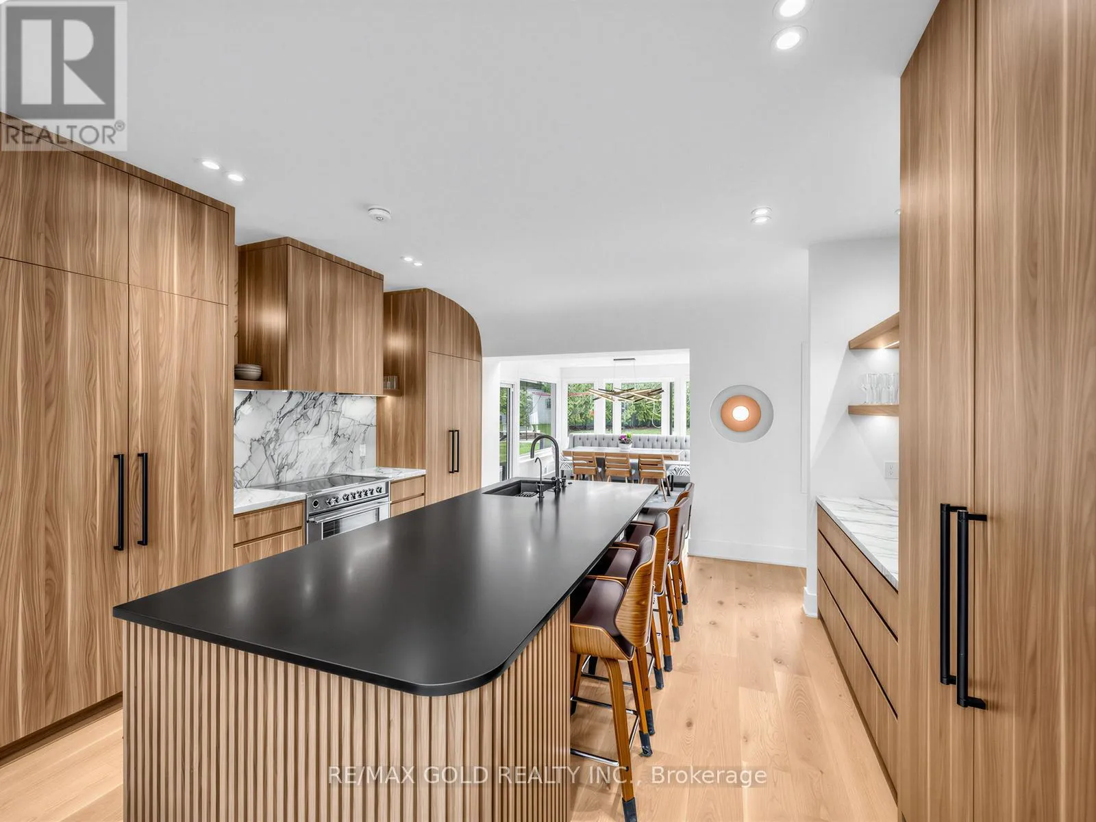 Kipling/Princess Margaret Set on a generous pie-shaped lot at the end of a quiet court, this bungalow underwent a top-to-bottom renovation in 2024 and offers about 1,884 square feet on the main level, and 1,674 on the lower level, for a total of approximately 3,700 sq ft. High ceilings soar from 9 -11 feet, Mirage engineered hardwood floors gleam underfoot, and 2 skylights fill the home with natural light. The custom kitchen is the heart of the home, featuring a 12-foot island, a built-in coffee-and-bar station, panel-ready appliances, and integrated storage. Three bedrooms upstairs include a serene primary suite, while a separate entrance leads to a finished lower level with a gym, recreation space, bedroom, and bath-perfect for extended family or guests. The yard was landscaped in 2024 and is an entertainer's dream with a louvered pergola, stone fire pit, large patio, 6-person spa, and playground, all watered by an app-controlled irrigation system. Modern comforts include a central heat pump, tankless instant water heater owned (2024), AC(2024), Furnace (2018 ), new roof (2024) with heating cables, 240-amp panel, and a Tesla charger. Smart home upgrades include wired cameras, a brilliant control system, an Ecobee thermostat, and a Nest doorbell. With a 2-car garage and space for 6 more vehicles in the driveway, plus proximity to top schools, transit, and shopping, this court property delivers style, ease, and room to grow. (id:27476)