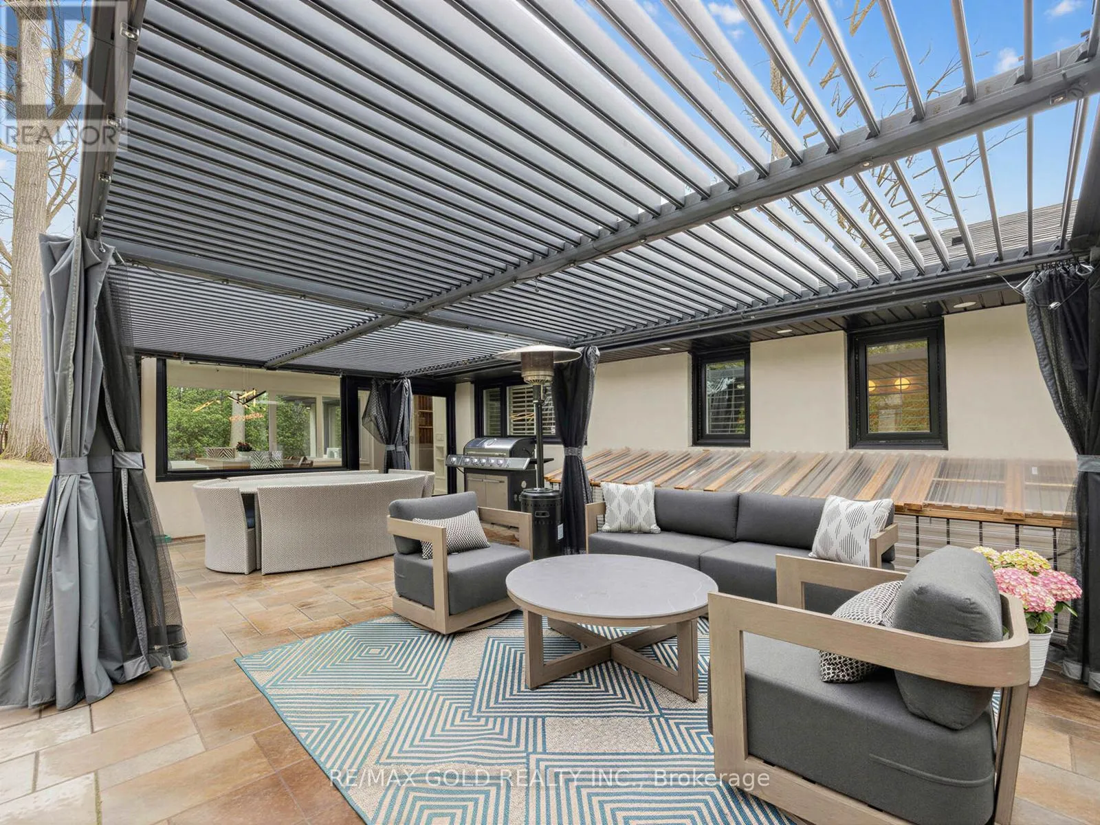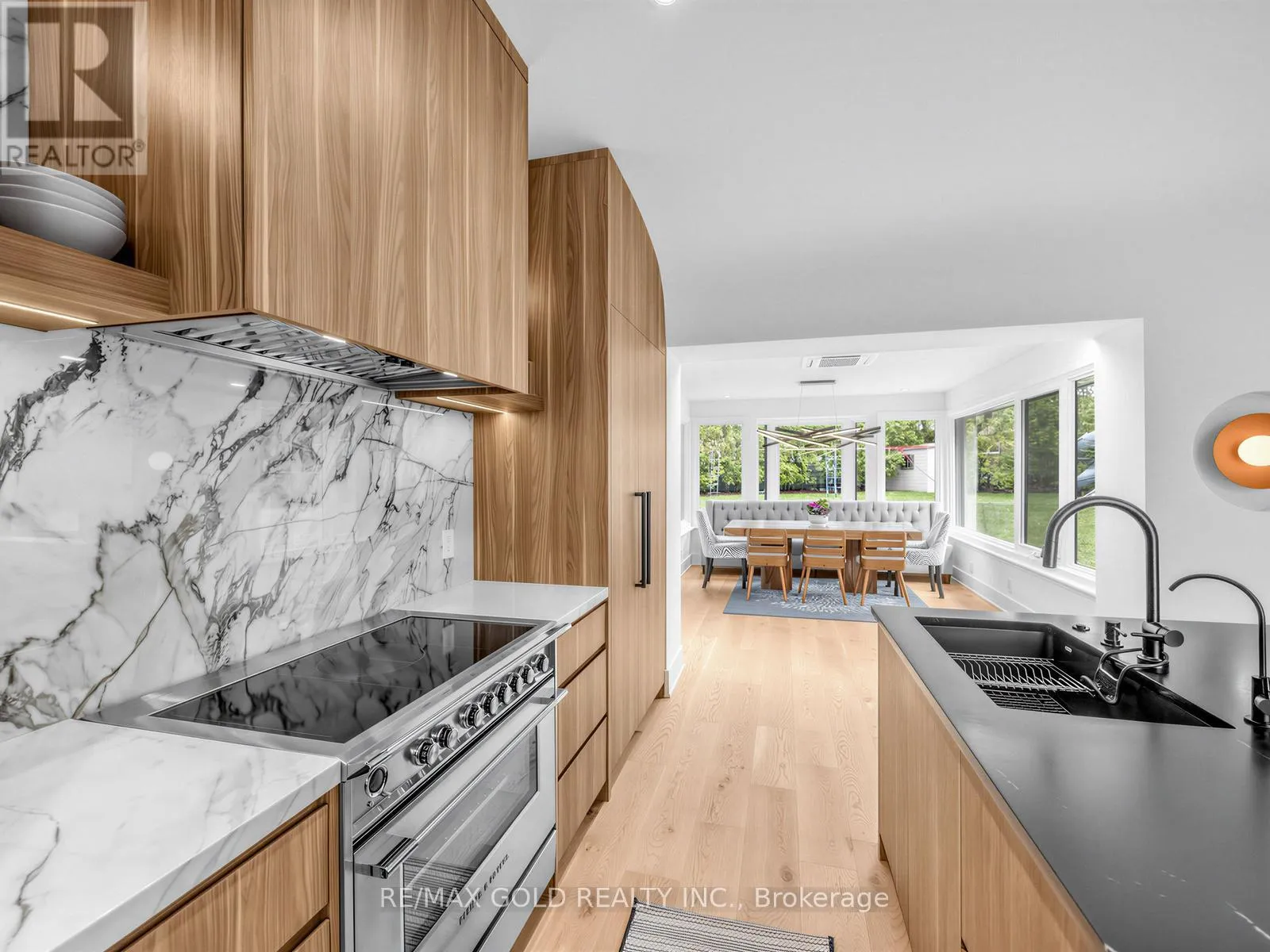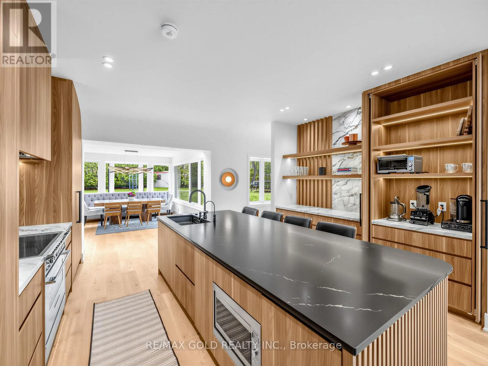 Kipling/Princess Margaret Set on a generous pie-shaped lot at the end of a quiet court, this bungalow underwent a top-to-bottom renovation in 2024 and offers about 1,884 square feet on the main level, and 1,674 on the lower level, for a total of approximately 3,700 sq ft. High ceilings soar from 9 -11 feet, Mirage engineered hardwood floors gleam underfoot, and 2 skylights fill the home with natural light. The custom kitchen is the heart of the home, featuring a 12-foot island, a built-in coffee-and-bar station, panel-ready appliances, and integrated storage. Three bedrooms upstairs include a serene primary suite, while a separate entrance leads to a finished lower level with a gym, recreation space, bedroom, and bath-perfect for extended family or guests. The yard was landscaped in 2024 and is an entertainer's dream with a louvered pergola, stone fire pit, large patio, 6-person spa, and playground, all watered by an app-controlled irrigation system. Modern comforts include a central heat pump, tankless instant water heater owned (2024), AC(2024), Furnace (2018 ), new roof (2024) with heating cables, 240-amp panel, and a Tesla charger. Smart home upgrades include wired cameras, a brilliant control system, an Ecobee thermostat, and a Nest doorbell. With a 2-car garage and space for 6 more vehicles in the driveway, plus proximity to top schools, transit, and shopping, this court property delivers style, ease, and room to grow. (id:27476)