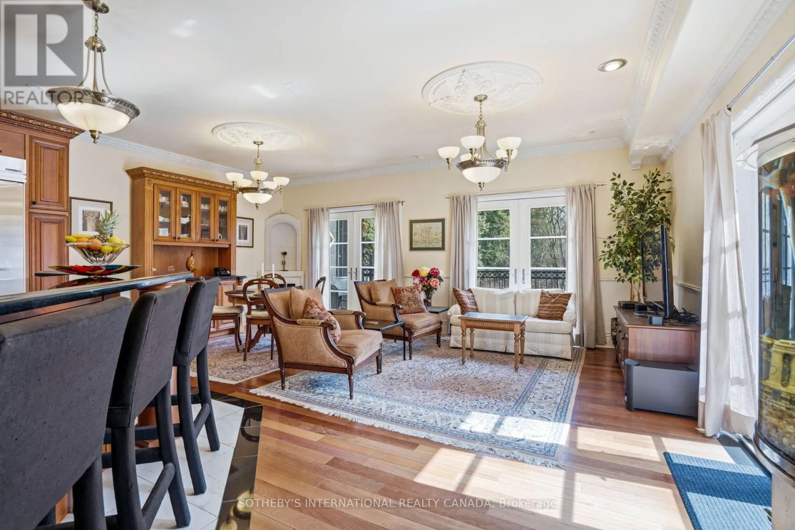 Cross Streets: Please, follow your GPS. ** Directions: Kingston Rd and Pine Ridge Drive. Welcome to 55 Pine Ridge Drive, a custom residence set on a private, tree-lined ravine lot near the Bluffs. Rebuilt approximately 15 years ago on the original 1954 foundation, this bright, generously scaled home offers refined millwork, Brazilian cherry hardwood, porcelain tile, multiple fireplaces, a hydraulic elevator, and a dramatic two-storey great room with a striking Palladian window overlooking the gardens. The custom kitchen was designed with both function and entertaining in mind, featuring dark-stained maple cabinetry, Nero Assoluto granite, a centre island with raised bar and hidden buffet table, two Miele dishwashers, multiple sinks and work areas, side-by-side KitchenAid fridge and freezer, Electrolux wall ovens and microwave, Miele steam oven, induction cooktop, dedicated gas wok burner, and a bright breakfast area with walkout to the deck. The home offers five bedrooms and five full bathrooms across three levels. The upper level includes a private primary retreat with fireplace, balcony, walk-in closets, dressing area, and five-piece ensuite, along with additional suite-like bedroom space and an upper family room. The lower level adds a recreation room, gym, steam room, hot tub, wet bar, guest bedroom, and walkout access. Outside, the landscaped grounds unfold as a private retreat with extensive decking, terraces, pond and waterfall, pool house, and gas-heated saltwater pool. Located on one of the most desirable streets, close to the Bluffs, parks, schools, Kingston Road amenities, Eglinton GO, Scarborough GO, Kennedy Station, and Highway 401. (id:27476)