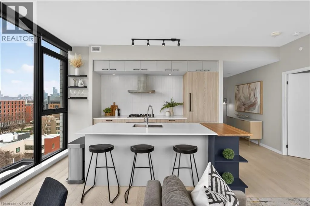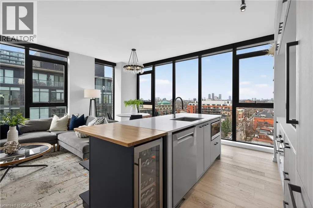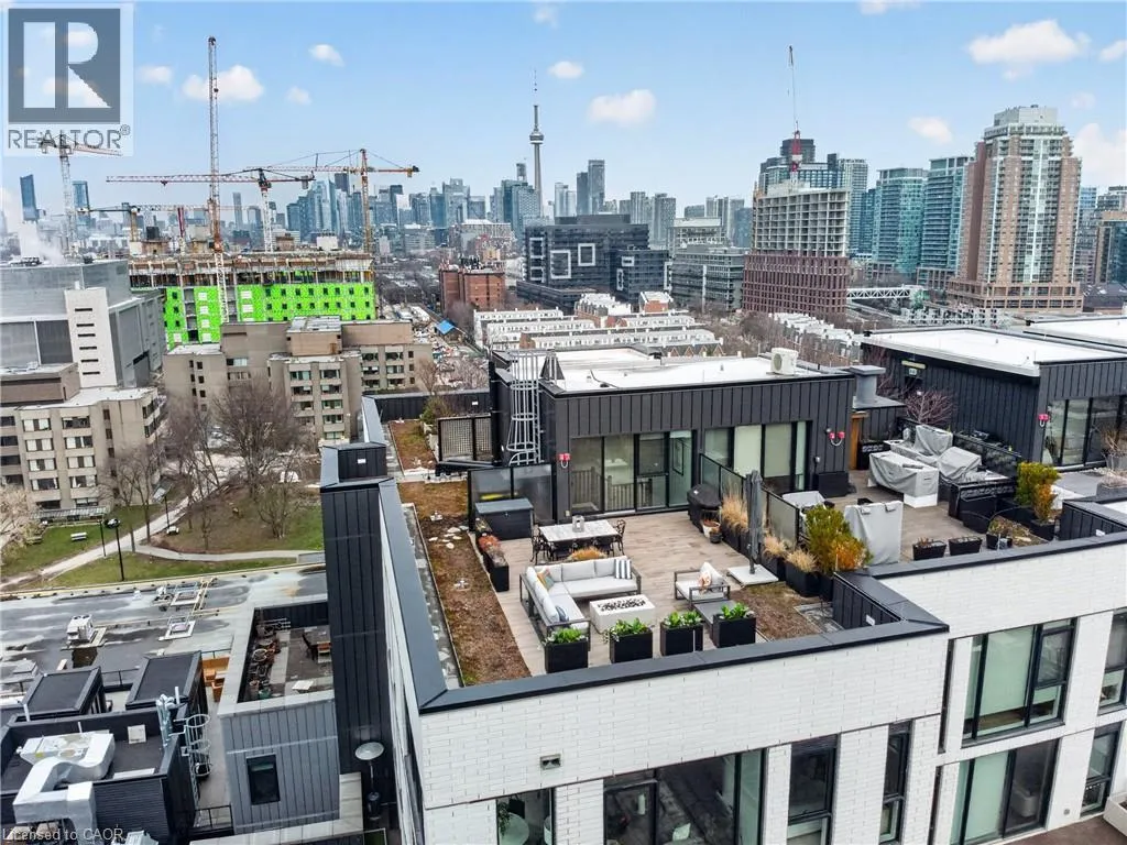 Queen St to Dovercourt This luxurious penthouse corner suite offers the epitome of urban living with a stunning oversized rooftop terrace, located in one of Queen West's most sought-after boutique residences, The Plant. The unique 1,335 sq ft. 3-bedroom, 2 full bathroom suite is wrapped in floor to ceiling windows, flooding the open-concept living area and bedrooms with natural light. The suite provides incredible west and south views (including views of Lake Ontario and BMO field for World Cup fans) and unobstructed north-west views that catch stunning spring, summer and fall sunsets over the Toronto horizon. The suite boasts top of the line finishes and custom designs throughout. The gourmet Chefs kitchen features a butcher block island extension with wine fridge, custom shelving and high-end appliances including gas range cooktop. The primary bedroom features a spa-like ensuite with his & her sinks, a custom-built oversized walk-in closet and combination blackout/semi-blackout blinds. Additional automated semi-blackout blinds are located in the living area. Custom-built walk-in storage area and oversized drawers are located under the stairs for maximum storage. The pièce de resistance of this incredible penthouse suite is the rare and private rooftop terrace. A true outdoor sanctuary finished with custom porcelain pavers with B/I lighting, gas hook-up and hose bib - all encircled by meticulously maintained sedum green roof. This outdoor oasis is one-of-a-kind, perfect for entertaining or quiet relaxation while you enjoy the breathtaking views. Don't miss this rare opportunity to own one of the limited penthouse suites in this award winning environmentally conscious building (equipped with geothermal heating/cooling systems), just steps from an upcoming new GO station. Suite comes complete with ONE underground parking (with EV charger) and TWO lockers. Recent upgrades include washer/dryer (2025), dishwasher (2025), heat pump compressor (2022) and heat pump motherboard controls (2026). (id:27476)