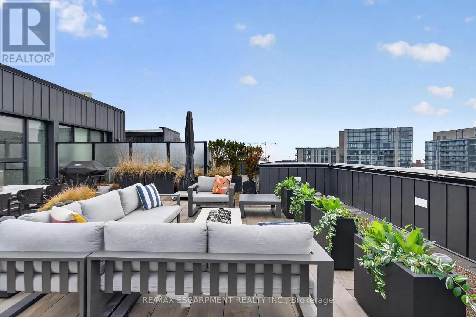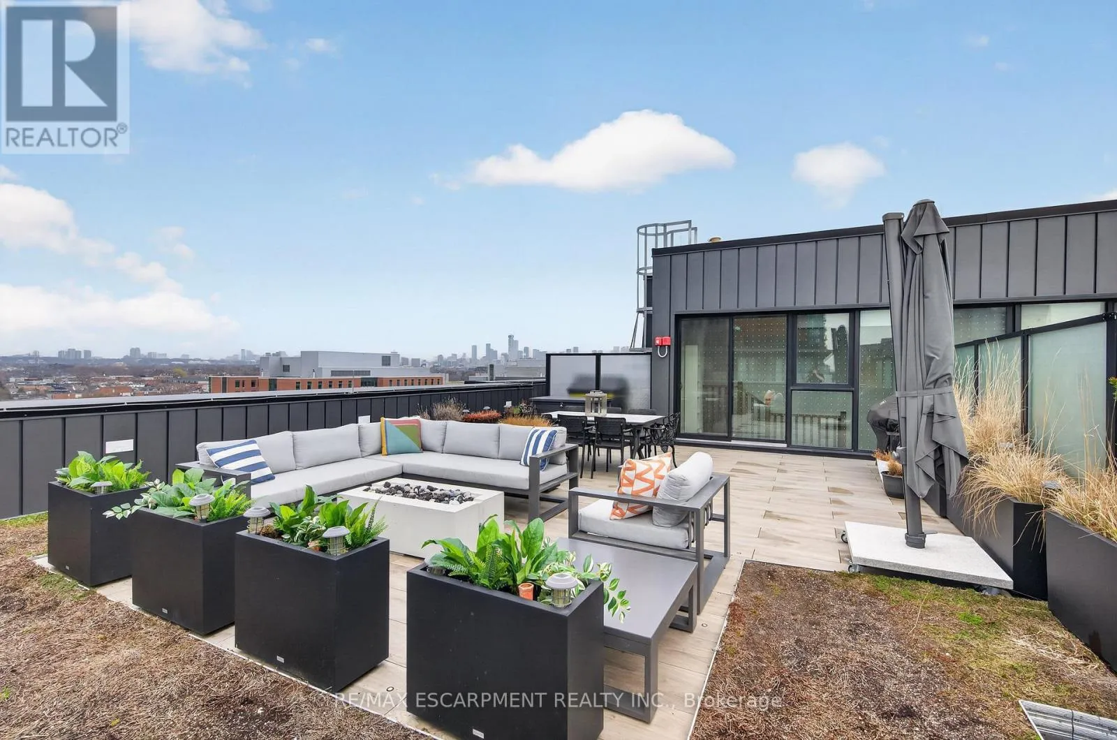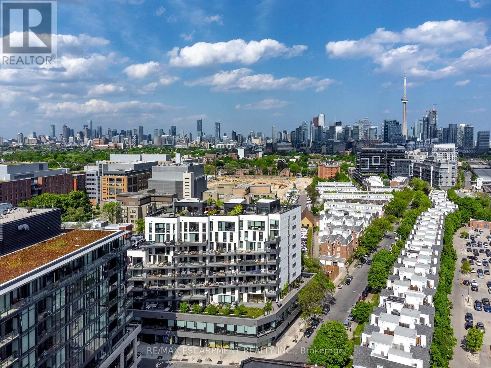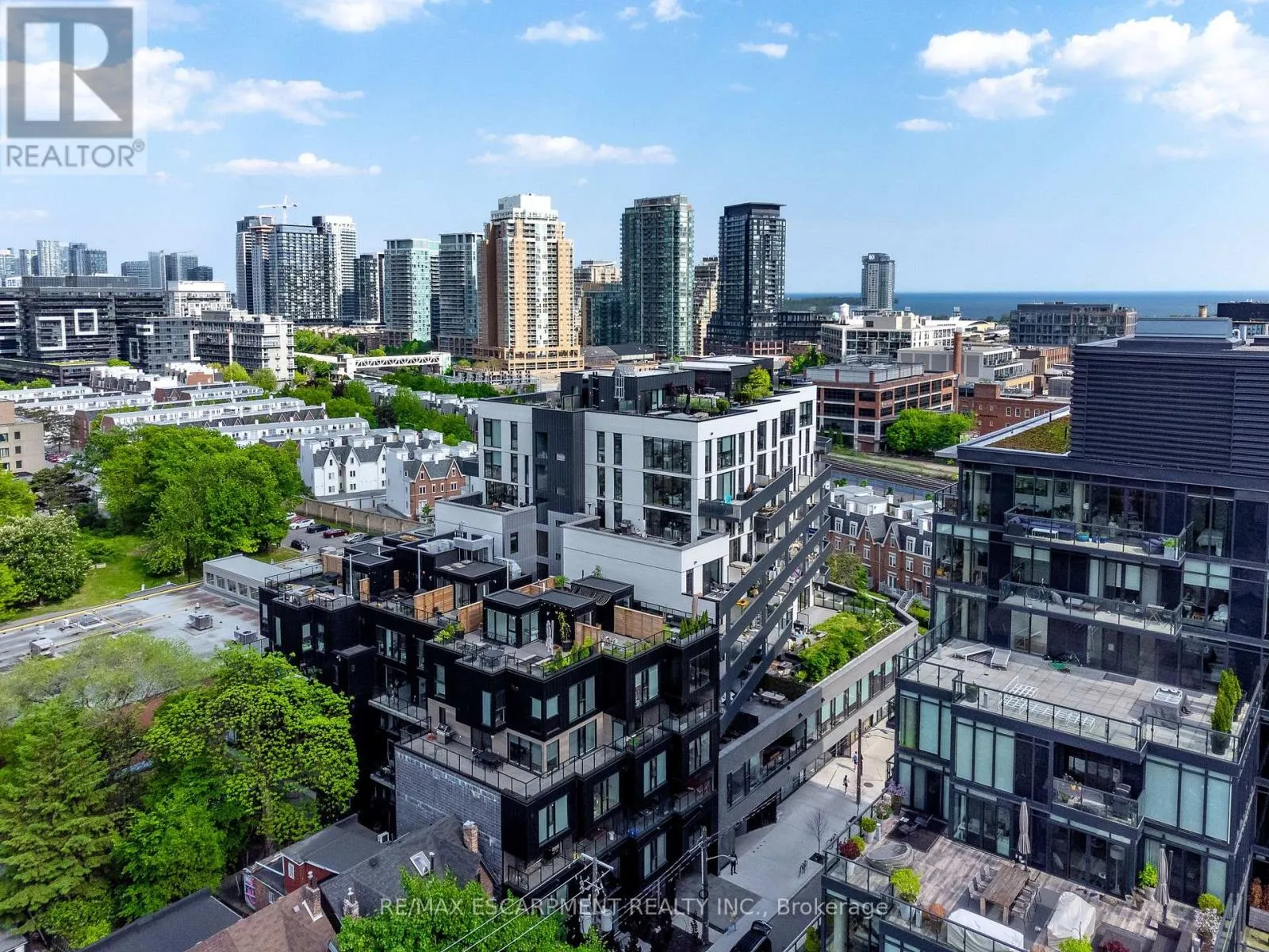Cross Streets: Queen St. ** Directions: Queen St to Dovercourt Rd. This luxurious penthouse corner suite offers the epitome of urban living with a stunning oversized rooftop terrace, located in one of Queen West's most sought-after boutique residences, The Plant. The unique 1,335 sq. ft. 3-bedroom, 2 full bathroom suite is wrapped in floor to ceiling windows, flooding the open-concept living area and bedrooms with natural light. The suite provides incredible west and south views (including views of Lake Ontario and BMO field for World Cup fans) and unobstructed north-west views that catch stunning spring, summer and fall sunsets over the Toronto horizon. The suite boasts top of the line finishes and custom designs throughout. The gourmet Chefs kitchen features a butcher block island extension with wine fridge, custom shelving and high-end appliances including gas range cooktop. The primary bedroom features a spa-like ensuite with his & her sinks, a custom-built oversized walk-in closet and combination blackout/semi-blackout blinds. Additional automated semi-blackout blinds are located in the living area. Custom-built walk-in storage area and oversized drawers are located under the stairs for maximum storage. The pièce de resistance of this incredible penthouse suite is the rare and private rooftop terrace. A true outdoor sanctuary finished with custom porcelain pavers with B/I lighting, gas hook-up and hose bib - all encircled by meticulously maintained sedum green roof. This outdoor oasis is one-of-a-kind, perfect for entertaining or quiet relaxation while you enjoy the breathtaking views. Don't miss this rare opportunity to own one of the limited penthouse suites in this award winning environmentally conscious building (equipped with geothermal heating/cooling systems), just steps from an upcoming new GO station. Suite comes complete with ONE underground parking (with EV charger) and TWO lockers. Recent upgrades include washer/dryer (2025), dishwasher (2025), heat pump compressor (2022) and heat pump motherboard controls (2026). (id:27476)