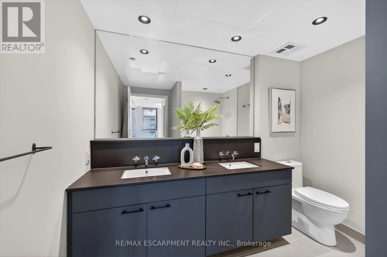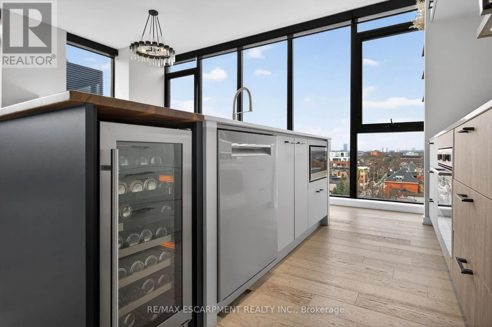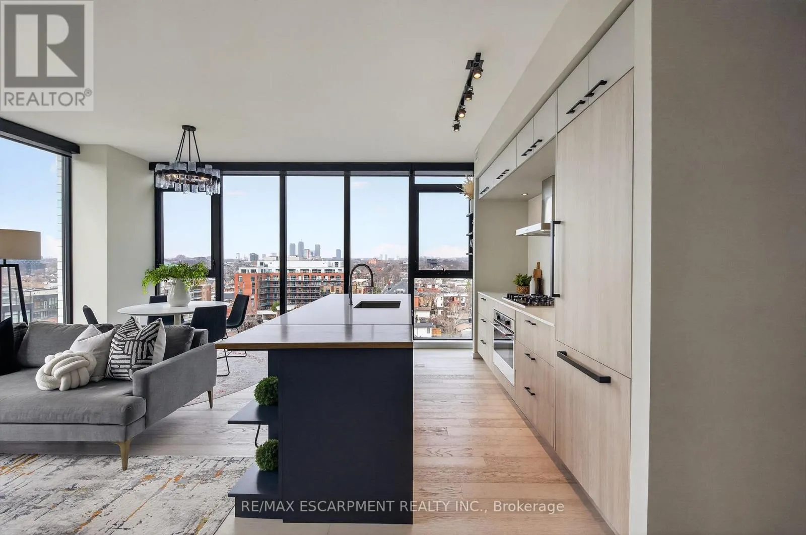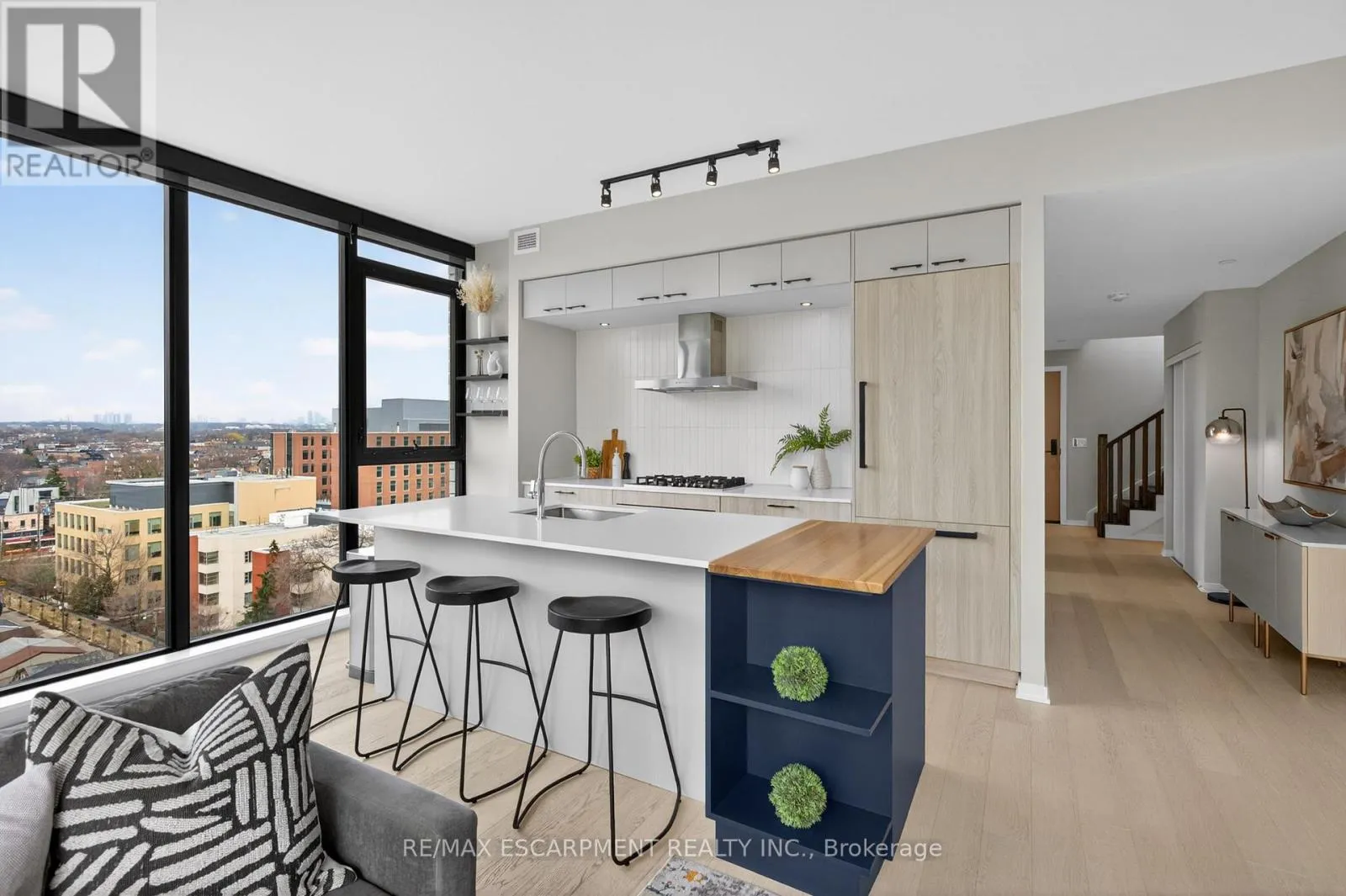 Cross Streets: Queen St. ** Directions: Queen St to Dovercourt Rd. This luxurious penthouse corner suite offers the epitome of urban living with a stunning oversized rooftop terrace, located in one of Queen West's most sought-after boutique residences, The Plant. The unique 1,335 sq. ft. 3-bedroom, 2 full bathroom suite is wrapped in floor to ceiling windows, flooding the open-concept living area and bedrooms with natural light. The suite provides incredible west and south views (including views of Lake Ontario and BMO field for World Cup fans) and unobstructed north-west views that catch stunning spring, summer and fall sunsets over the Toronto horizon. The suite boasts top of the line finishes and custom designs throughout. The gourmet Chefs kitchen features a butcher block island extension with wine fridge, custom shelving and high-end appliances including gas range cooktop. The primary bedroom features a spa-like ensuite with his & her sinks, a custom-built oversized walk-in closet and combination blackout/semi-blackout blinds. Additional automated semi-blackout blinds are located in the living area. Custom-built walk-in storage area and oversized drawers are located under the stairs for maximum storage. The pièce de resistance of this incredible penthouse suite is the rare and private rooftop terrace. A true outdoor sanctuary finished with custom porcelain pavers with B/I lighting, gas hook-up and hose bib - all encircled by meticulously maintained sedum green roof. This outdoor oasis is one-of-a-kind, perfect for entertaining or quiet relaxation while you enjoy the breathtaking views. Don't miss this rare opportunity to own one of the limited penthouse suites in this award winning environmentally conscious building (equipped with geothermal heating/cooling systems), just steps from an upcoming new GO station. Suite comes complete with ONE underground parking (with EV charger) and TWO lockers. Recent upgrades include washer/dryer (2025), dishwasher (2025), heat pump compressor (2022) and heat pump motherboard controls (2026). (id:27476)
