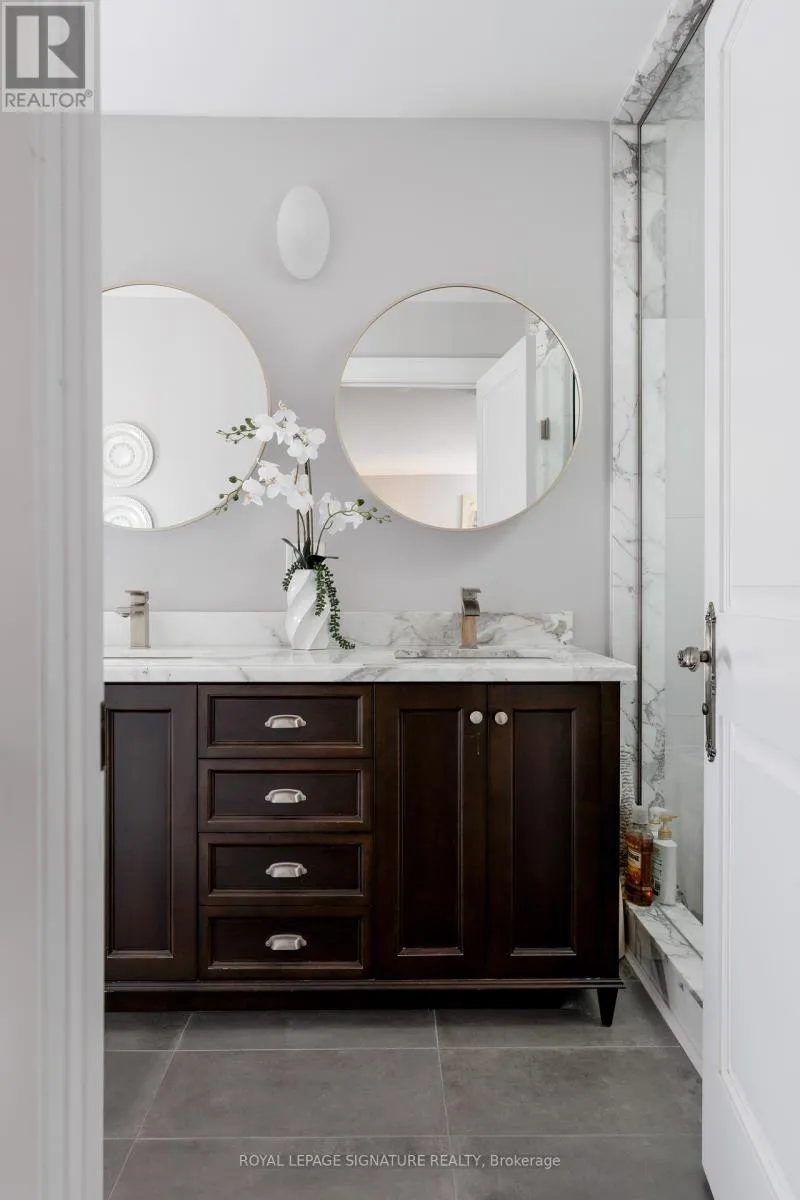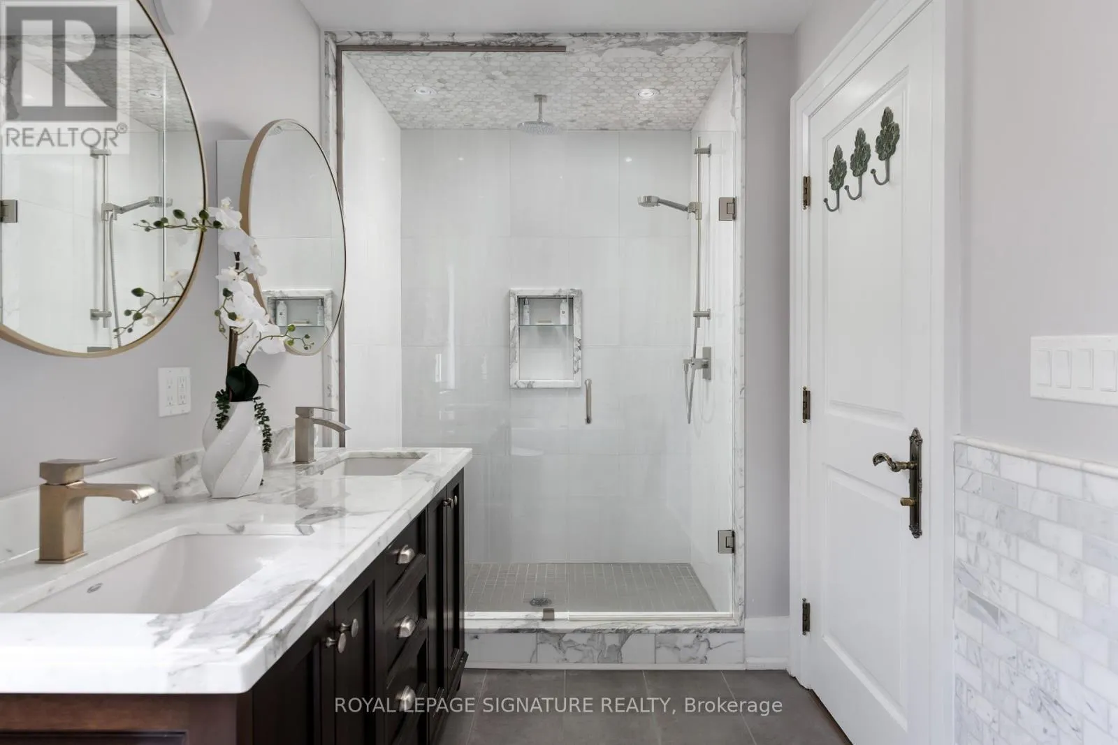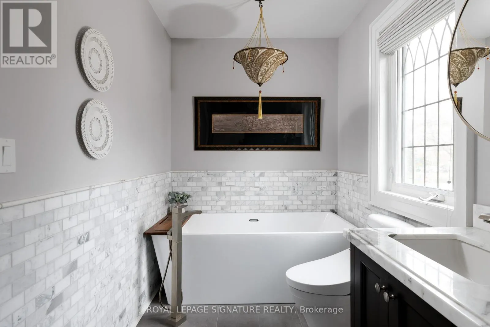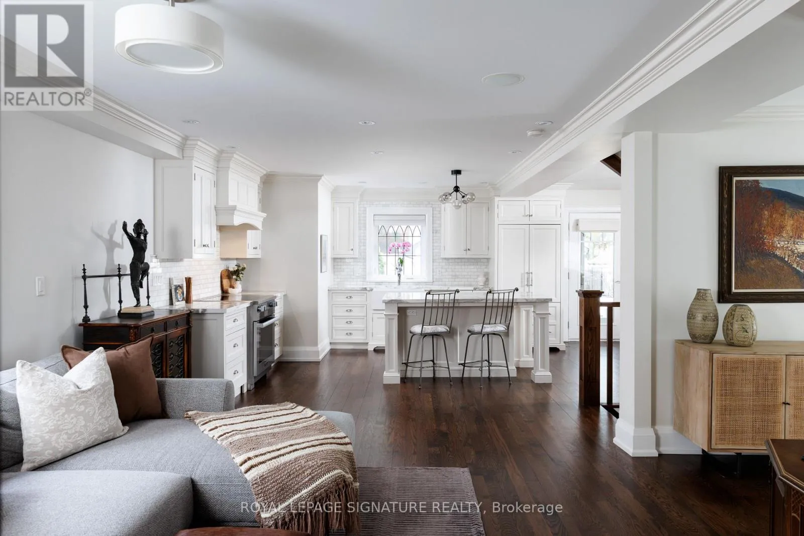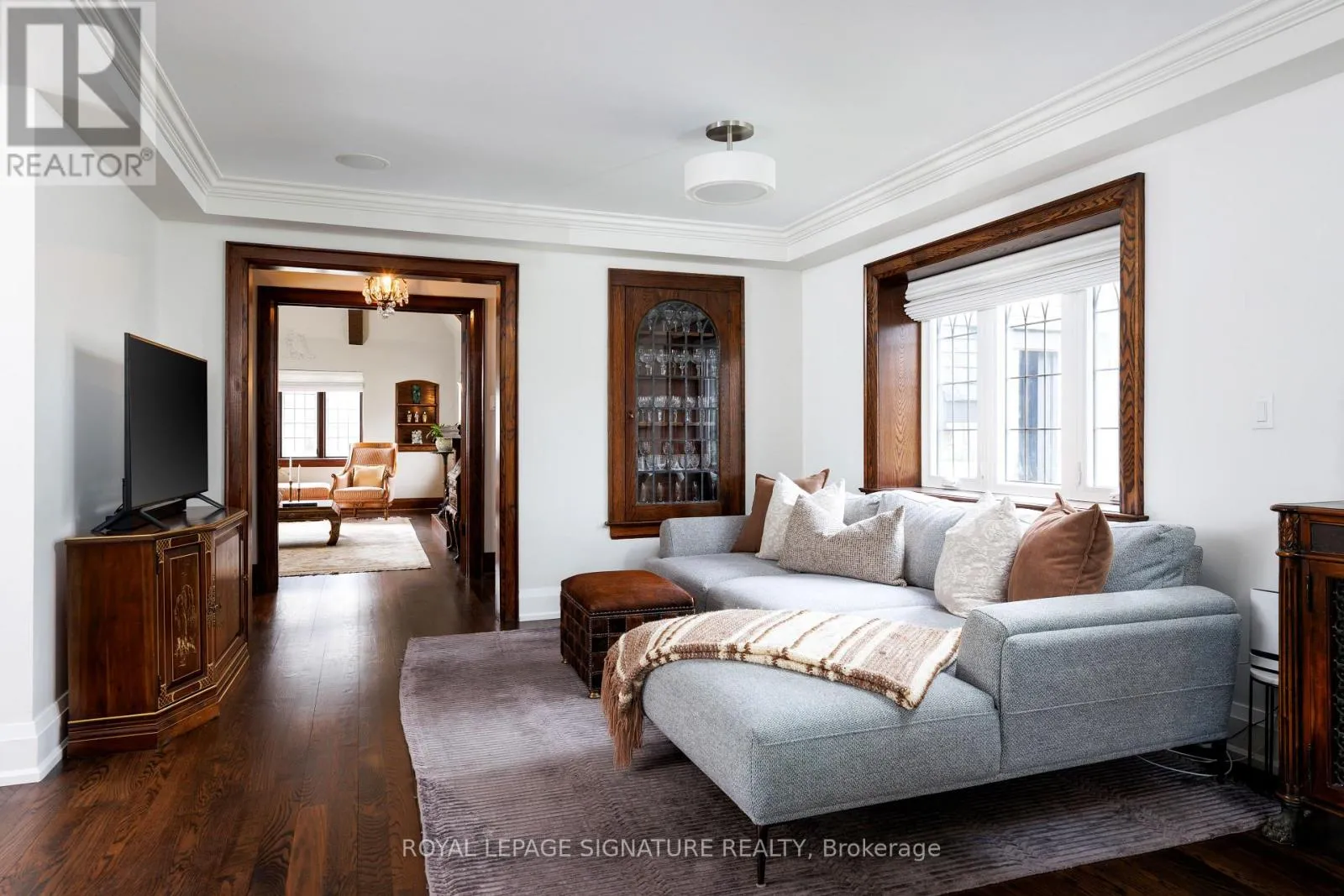 Cross Streets: Royal York Rd and Bloor St. ** Directions: North of Royal York Rd and Bloor St. The Hydrangea House in the Heart of the Kingsway. Timeless charm and modern comfort. Thoughtfully renovated, the home's warmth and character were meticulously preserved. The exterior features the original Tudor style stone facade, balanced with modern improvements creating a home of the finest caliber! Large chef's kitchen with marble counters and a walk out to the backyard. Vaulted great room with beamed ceiling and grand fire place with electric insert. Main floor office with original oak panelled walls. Rich wood trim and hardwood floors throughout, five pristine bathrooms. Primary bedroom with walk-in closet and ensuite which features soaker tub and walk-in shower. The finished basement extends your living space with a spacious recreation room, 400 bottle wine room, a private nanny suite with additional large bedroom and kitchen. Professionally landscaped outdoor green space with 75 hydrangeas bushes, and an irrigation system adorn this large corner lot. A private backyard oasis with a gas firepit. Large double driveway easily fits 4 vehicles plus 2 car garage with second story loft space for storage or playhouse for kids. Laneway suite potential. Perfectly located steps to Royal York subway station, and a short stroll to top-rated schools, shops, restaurants, cafes & everything this coveted neighborhood has to offer! This is a truly rare opportunity to acquire a magazine quality dream home of this charm and prominence! (id:27476)