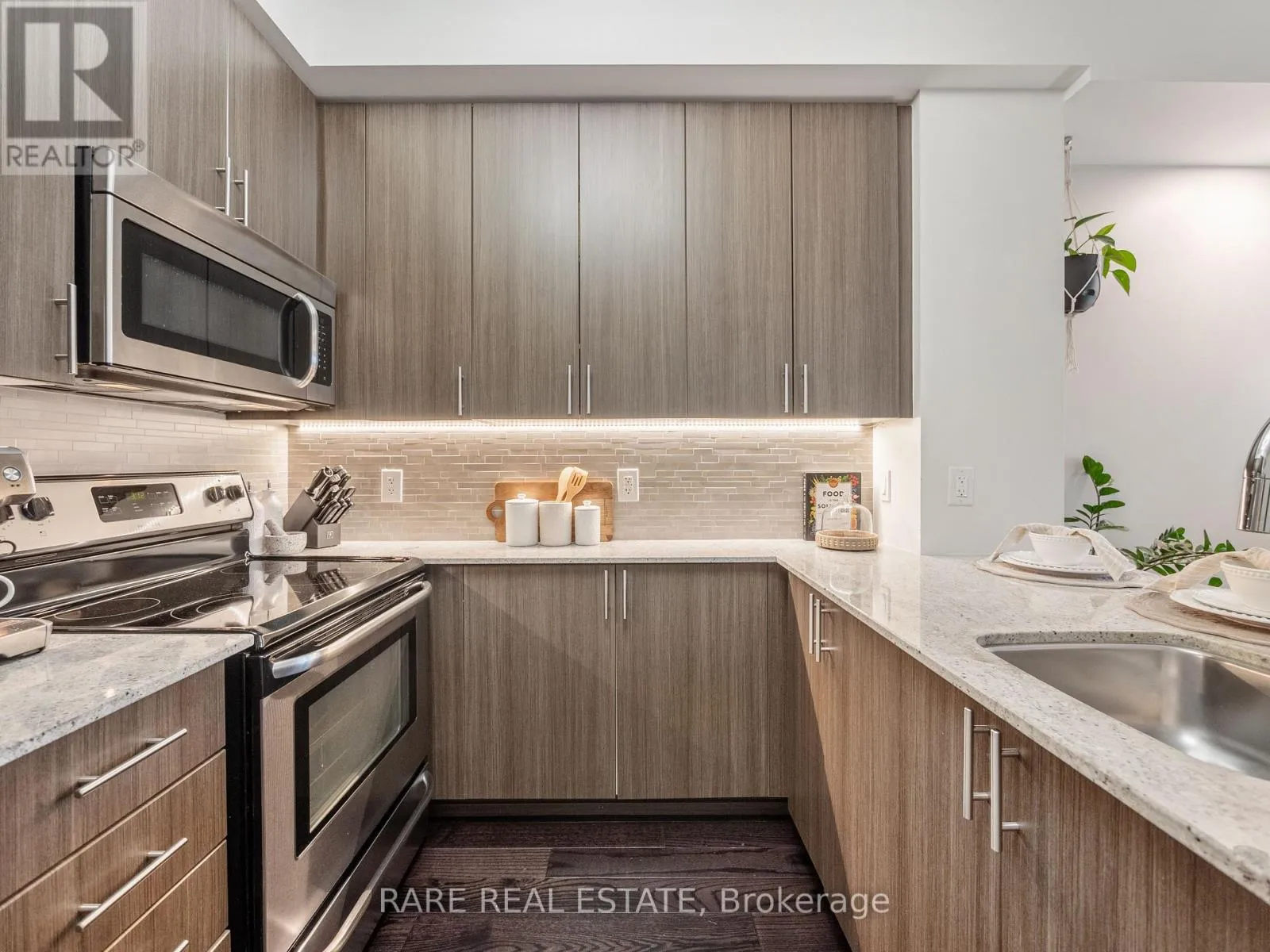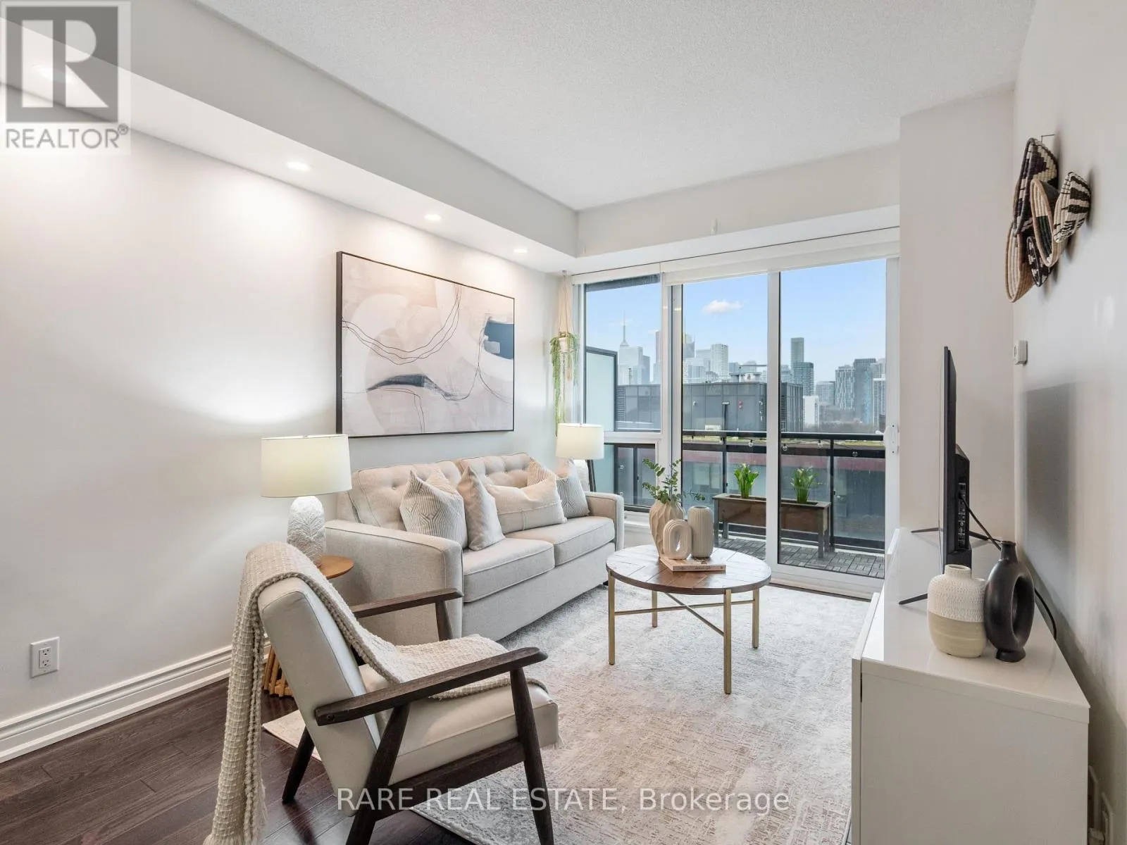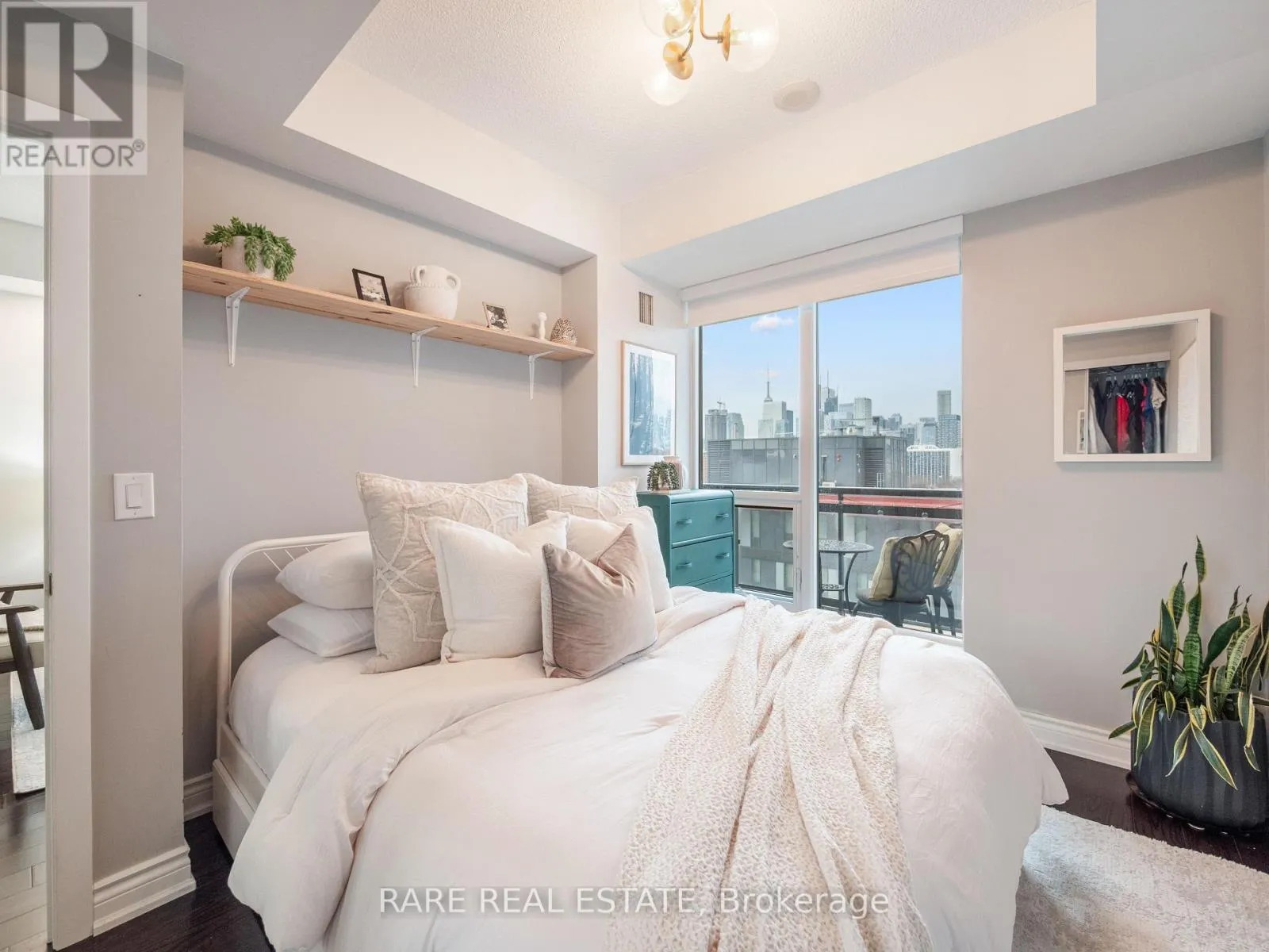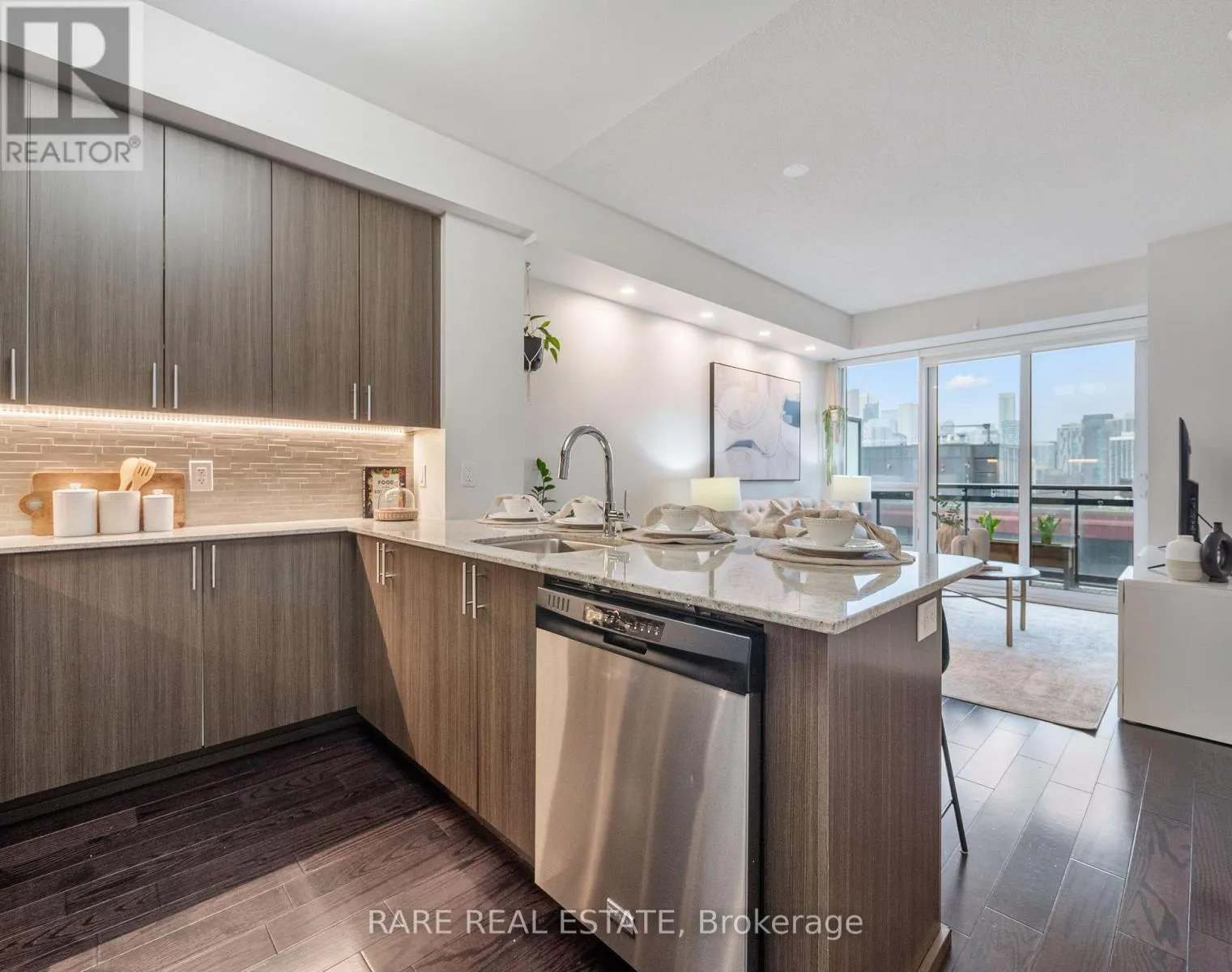 Dundas/River Streets Offers anytime! Welcome to Unit 1106 at Paintbox Condos, a bright and beautifully laid out west-facing 1 bedroom plus den, 2 bathroom suite offering open skyline views and exceptional value in what is widely regarded as one of the area's premier buildings. Developed by Daniels, known for thoughtful design and solid construction, this residence offers the kind of comfort and sound quality that's increasingly hard to find in modern condo living. The building is also recognized for its attentive 24 hour concierge, strong management, consistently well maintained common spaces, and low maintenance fees. Inside the unit, 9 foot ceilings and floor to ceiling windows set the tone for a light filled living experience. The open concept layout flows seamlessly to a private balcony where you can enjoy unobstructed sunset views over the city skyline. The kitchen is finished with full size stainless steel appliances, generous storage, and a practical layout designed for everyday use. The bedroom is well proportioned and features a private 4 piece ensuite, complemented by a custom double row closet system that maximizes storage. A second full bathroom adds flexibility for guests or shared living, while the den provides a true multi use space ideal for working from home, a guest bedroom, or additional functionality. Unit 1106 has been extensively refreshed with thousands invested in upgrades, including new pot lights and designer fixtures throughout. The location is a true highlight, directly across from the Pam McConnell Aquatic Centre and park, and just steps to local favourites like Le Beau and Café Zuzu. With TTC access, downtown core, the Distillery District, the Eaton Centre, and multiple dog parks all nearby, everything you need is within easy reach. A rare opportunity to own a turnkey home in a highly regarded building, offering both lifestyle and unbeatable value. (id:27476)