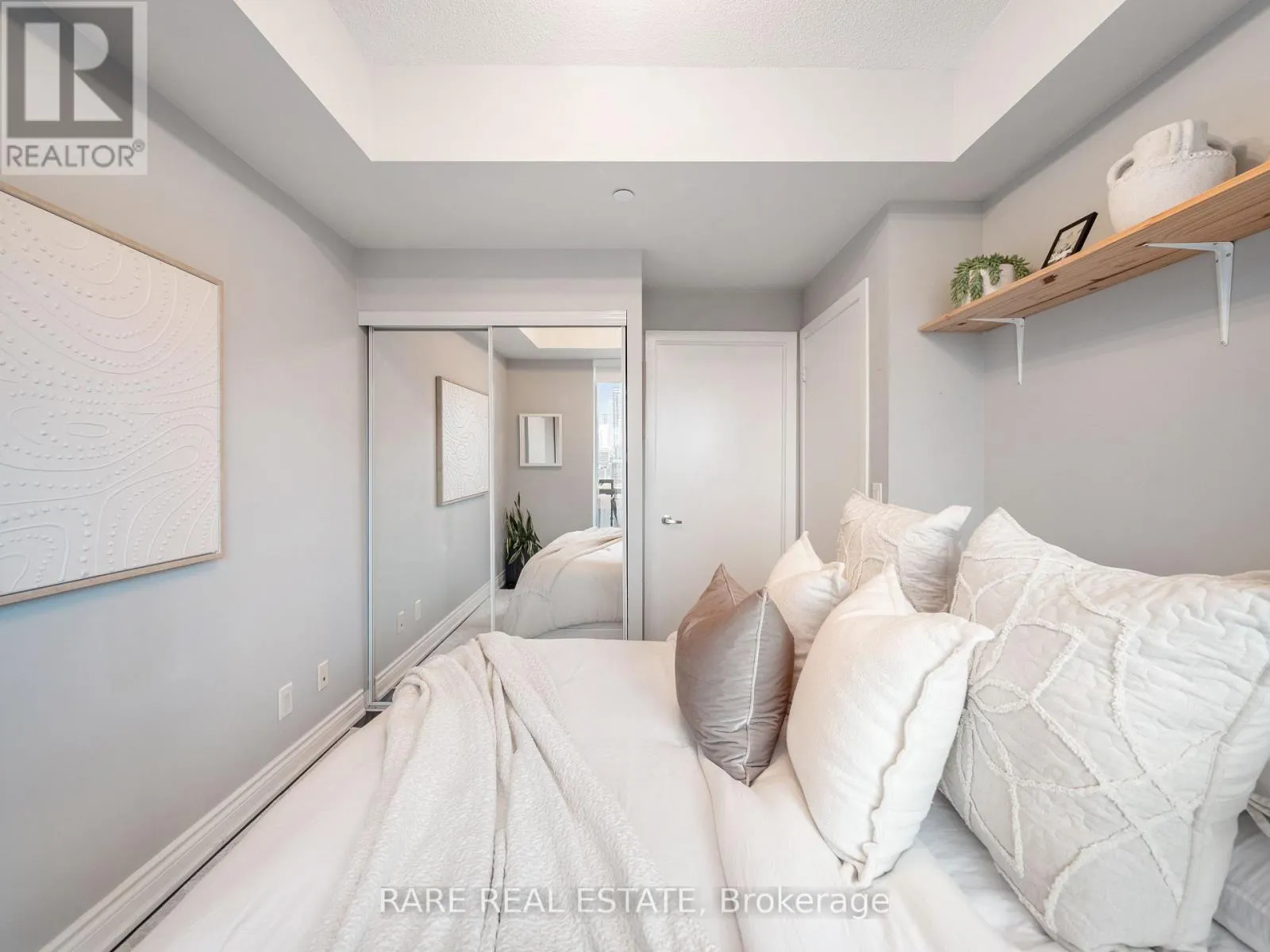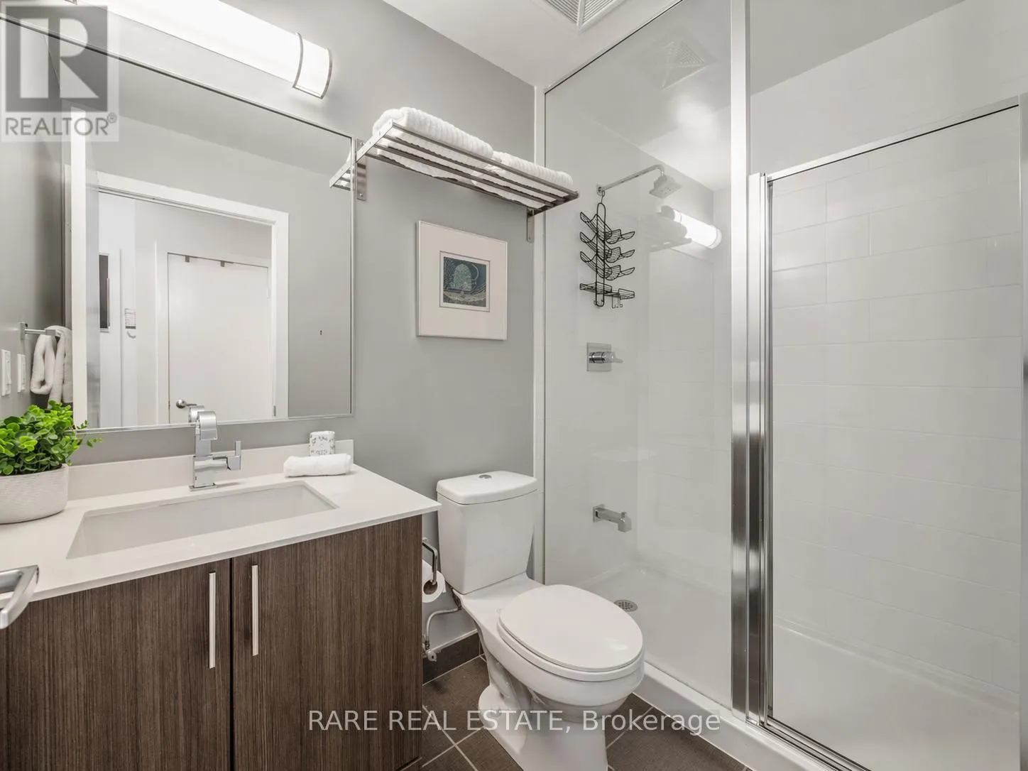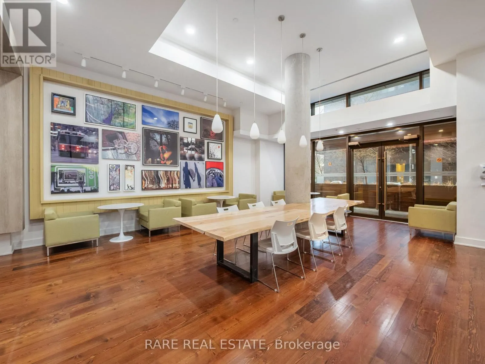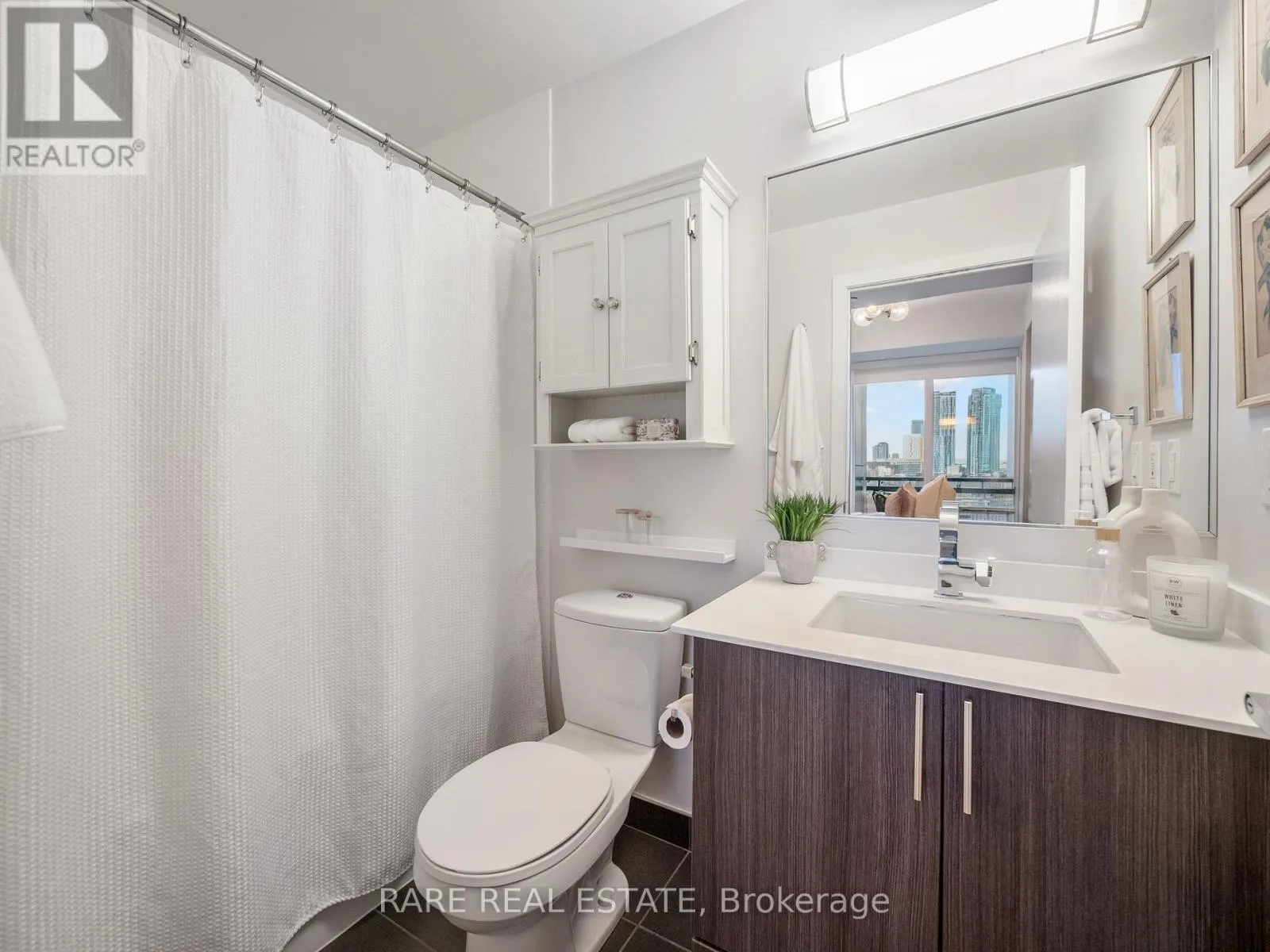 Dundas/River Streets Offers anytime! Welcome to Unit 1106 at Paintbox Condos, a bright and beautifully laid out west-facing 1 bedroom plus den, 2 bathroom suite offering open skyline views and exceptional value in what is widely regarded as one of the area's premier buildings. Developed by Daniels, known for thoughtful design and solid construction, this residence offers the kind of comfort and sound quality that's increasingly hard to find in modern condo living. The building is also recognized for its attentive 24 hour concierge, strong management, consistently well maintained common spaces, and low maintenance fees. Inside the unit, 9 foot ceilings and floor to ceiling windows set the tone for a light filled living experience. The open concept layout flows seamlessly to a private balcony where you can enjoy unobstructed sunset views over the city skyline. The kitchen is finished with full size stainless steel appliances, generous storage, and a practical layout designed for everyday use. The bedroom is well proportioned and features a private 4 piece ensuite, complemented by a custom double row closet system that maximizes storage. A second full bathroom adds flexibility for guests or shared living, while the den provides a true multi use space ideal for working from home, a guest bedroom, or additional functionality. Unit 1106 has been extensively refreshed with thousands invested in upgrades, including new pot lights and designer fixtures throughout. The location is a true highlight, directly across from the Pam McConnell Aquatic Centre and park, and just steps to local favourites like Le Beau and Café Zuzu. With TTC access, downtown core, the Distillery District, the Eaton Centre, and multiple dog parks all nearby, everything you need is within easy reach. A rare opportunity to own a turnkey home in a highly regarded building, offering both lifestyle and unbeatable value. (id:27476)
