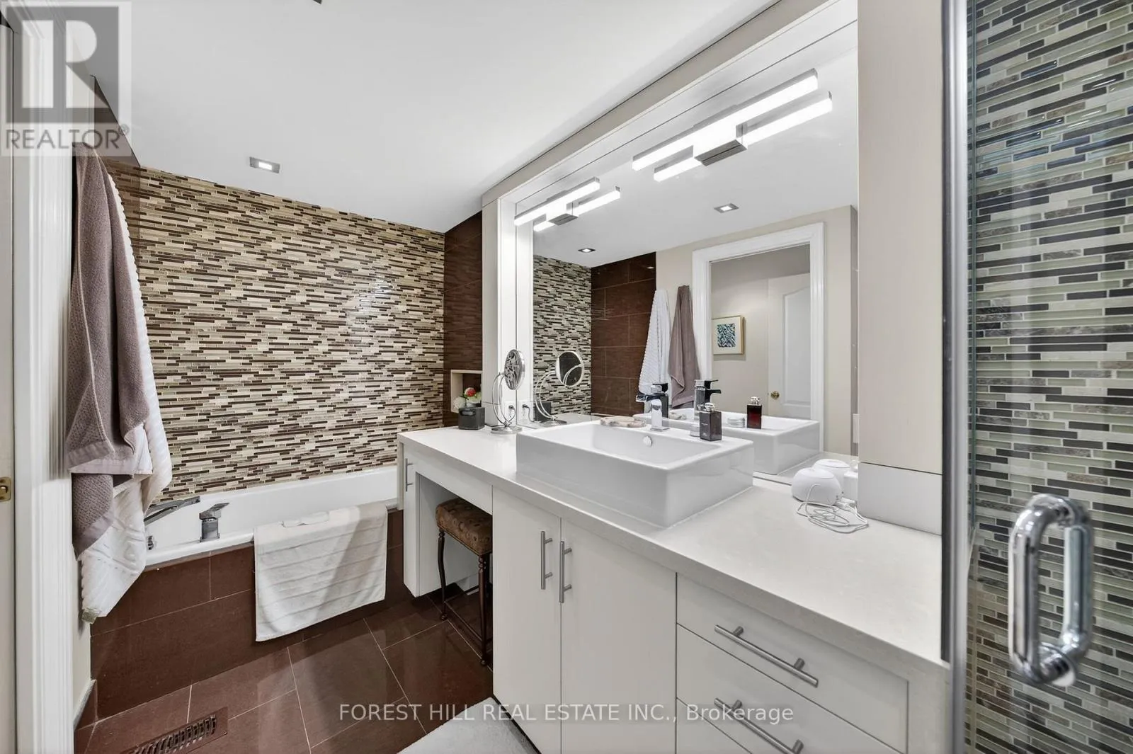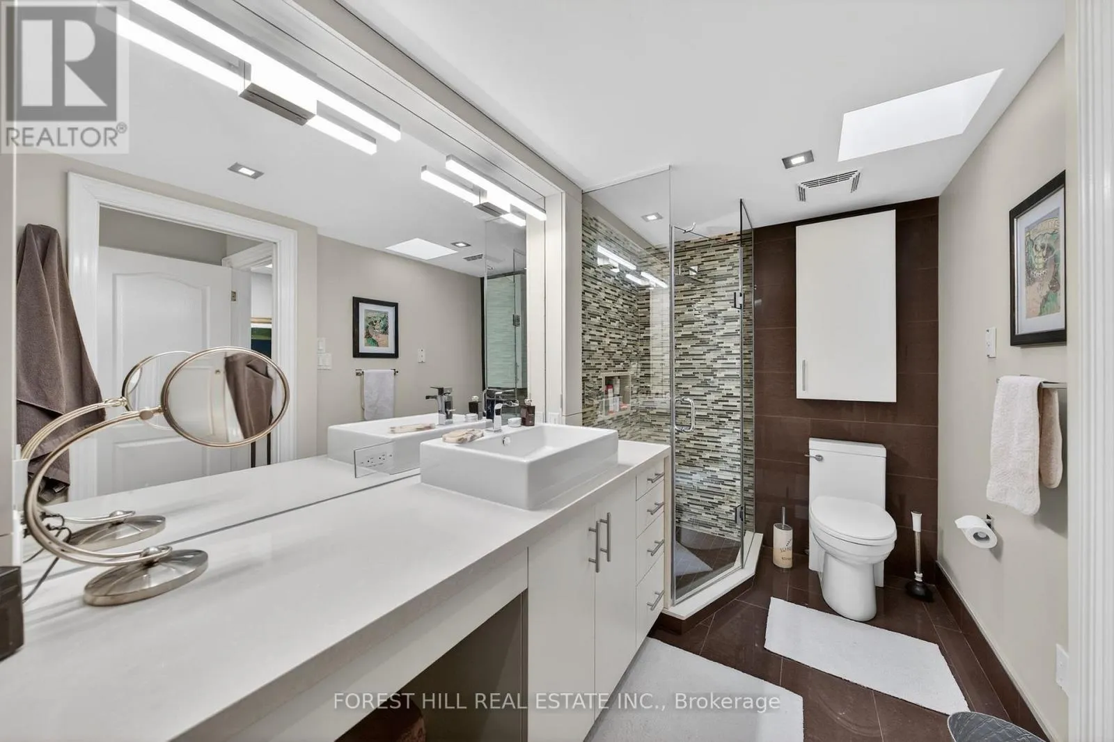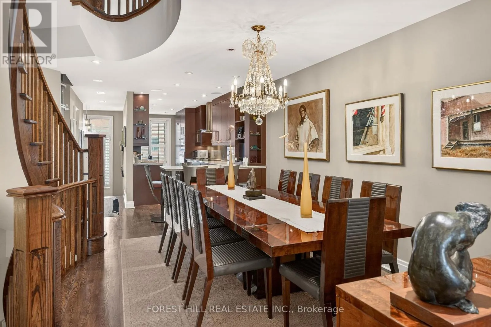 Spadina/Davenport Welcome to 252 Spadina Road, a fully updated freehold 3+1 bedroom, 5 bathroom townhome in prestigious Castle Hill at the foot of Casa Loma. Offering over 3,400 sq ft of finished living space across four levels, this exceptional residence blends timeless architecture with refined contemporary design. Overlooking Casa Loma, this move-in-ready home delivers rare scale and sophistication in one of Toronto's most iconic neighbourhoods. The main level showcases soaring and coffered ceilings, crown moulding throughout, wide-plank oak floors, custom built-ins, pot lights, California shutters, and integrated surround sound. The open-concept living and dining areas are designed for elevated entertaining. A custom chef's galley-style kitchen features premium appliances, abundant cabinetry, and a breakfast bar, with a seamless walkout to a private terrace for effortless indoor-outdoor living. A striking panoramic design PVE elevator provides access from the basement to the third floor. The second level offers a spacious family room with wood-burning fireplace and built-ins, a well-sized bedroom, full bath, and convenient second-floor laundry. The third floor features a dramatic two-storey primary retreat with 17-foot ceilings and two skylights. A loft-style upper lounge leads to a private rooftop terrace. The suite includes a spa-inspired ensuite that has a bathtub with a separate shower and his-and-hers walk-in closets with organizers. An additional bedroom with ensuite completes this level. The lower level offers an above-grade bedroom with large windows, full bath, private sauna, pantry, and flexible living space, plus direct access to a spacious two-car garage with ample storage. Freehold with association fee covering landscaping and snow removal. Steps to Dupont Subway Station, Casa Loma, Yorkville, Forest Hill Village, parks, and top private schools including UCC and BSS. (id:27476)