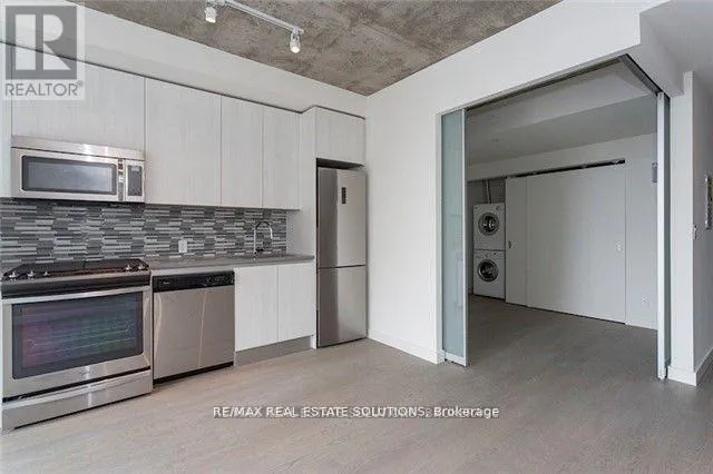 Cross Streets: King St W and Bathurst St. ** Directions: North of King St W and East of Bathurst St. This 1 bedroom, 1 bathroom loft at One Eleven Bathurst in the vibrant King West neighborhood is available in immediate occupancy. Featuring floor to ceiling windows that provide captivating western exposure, the space is bathed in natural light. The loft's 9-foot exposed concrete ceilings add an industrial-chic aesthetic, while the modern, European-inspired kitchen enhances its appeal. One Eleven Bathurst offers desirable amenities, including a concierge, guest suites, a party room/meeting room, and a rooftop deck for relaxation. Enjoy the convenience of seamless access to TTC right at your doorstep, making it easy to explore the dynamic surroundings, including trendy restaurants, cafes, and shops. Experience the perfect blend of style and convenience. (id:27476)