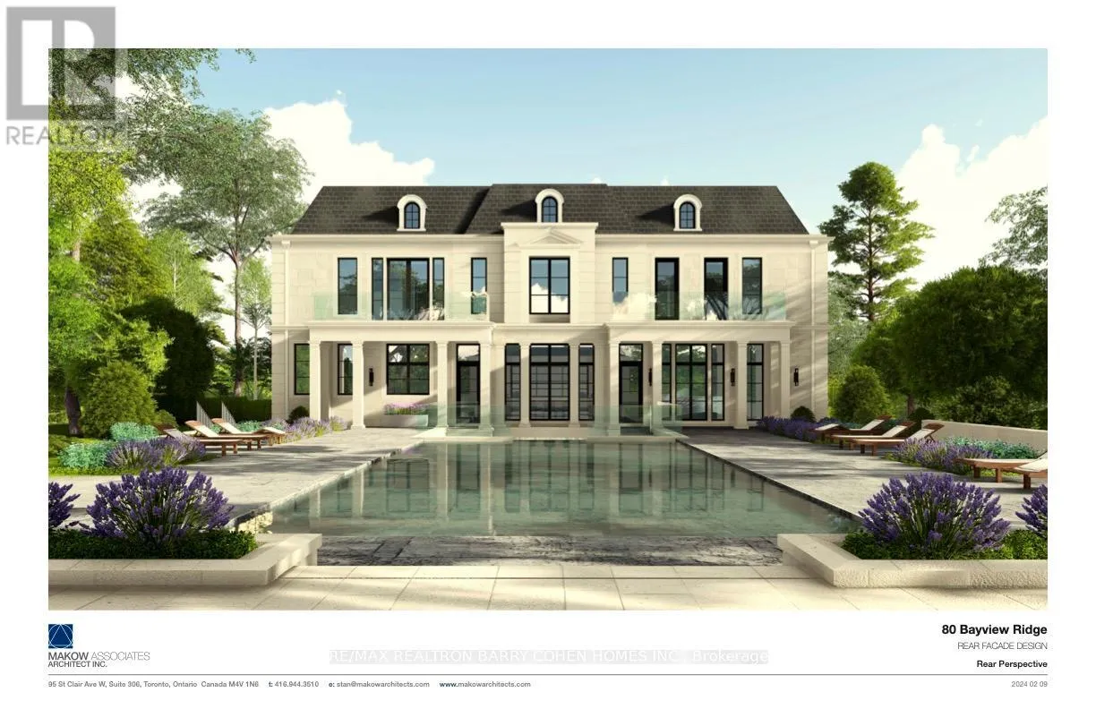 Cross Streets: Bayview/York Mills. ** Directions: West of Bayview. Prestige. Privacy. Possibility. 80 Bayview Ridge - A Signature Estate Opportunity In One Of Toronto's Most Coveted Enclaves.Set On An Extraordinary 100 X 250 Ft Estate-Style Lot, This Remarkable Property Offers Exceptional Scale, Mature Greenery, And A Beautifully Maintained In-Ground Pool Framed By Lush Perennial Gardens-An Oasis Of Complete Privacy In The Heart Of Bayview Ridge.The Existing Residence, Measuring 7,715 Sq. Ft., Is Warm, Inviting, And Comfortably Livable. Sunlit Interiors Feature Multiple Skylights And Five Fireplaces, Enhancing Both Charm And Ambiance. Generous Principal Rooms Include A Richly Appointed Wood-Panelled Library With Fireplace, A Classic Living Room, A Formal Dining Room Adorned With Luxurious Silk Wall Finishes, And A Grand Family Room With Skylight, Fireplace, And Walk-Out To The Serene Backyard.The Walk-Out Lower Level Elevates Everyday Living With A Dedicated Theatre Room, Spacious Recreation And Entertainment Areas, And Flexible Spaces Ideal For Hosting, Relaxing, Or Accommodating Extended Family. A Three-Car Garage And The Estate's Exceptional Lot Size Complete This Distinguished Offering. While The Home Is Perfectly Enjoyable As-Is, The Value Lies In The Land And Redevelopment Potential. Architectural Plans By Makow Architects For A New Luxury Residence Of Over 18,000 Sq. Ft. Are Available, And The Building Permit Is Already Approved And Ready, Making This A Truly Turnkey Opportunity For A Future Signature Estate. An Exceptional Bayview Ridge Address Where Privacy, Timeless Elegance, And Limitless Opportunity Converge-Whether You Choose To Live, Enhance, Or Build New. (id:27476)