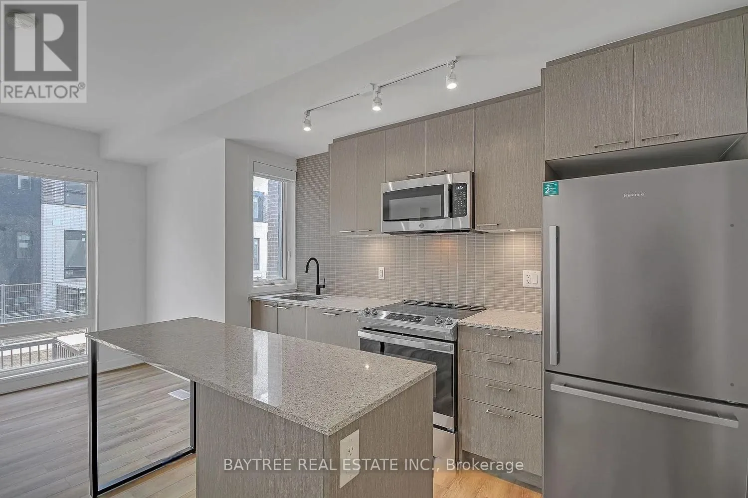 ST CLAIR W & OLD WESTON RD Rarely offered 3-bedroom, 2-bath urban townhome at Reunion Crossing featuring 982 sq. ft. of interior living space plus a 122 sq. ft. private sunken terrace. The modern 2-storey layout includes a spacious main-floor living and dining area with an open-concept kitchen, while the lower level offers three full-sized bedrooms and a full bathroom for added comfort and privacy. The south-facing exposure fills the home with natural light. Featuring premium full-sized appliances, a thoughtfully placed main-floor bathroom, and access to an array of building amenities designed for modern living. The complex also features a playground and splash pad for local children to enjoy. Freshly painted and ready to move in, this home is perfectly situated at the crossroads of The Stockyards, The Junction, and Corso Italia, with the St. Clair streetcar at your doorstep and endless shops, cafes, parks, and recreation nearby. One parking and internet included. (id:27476)