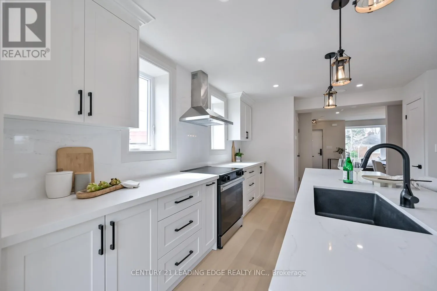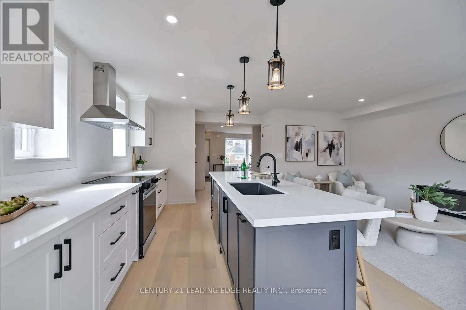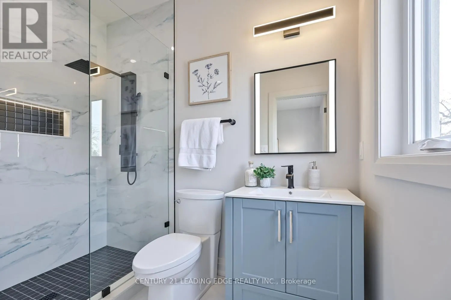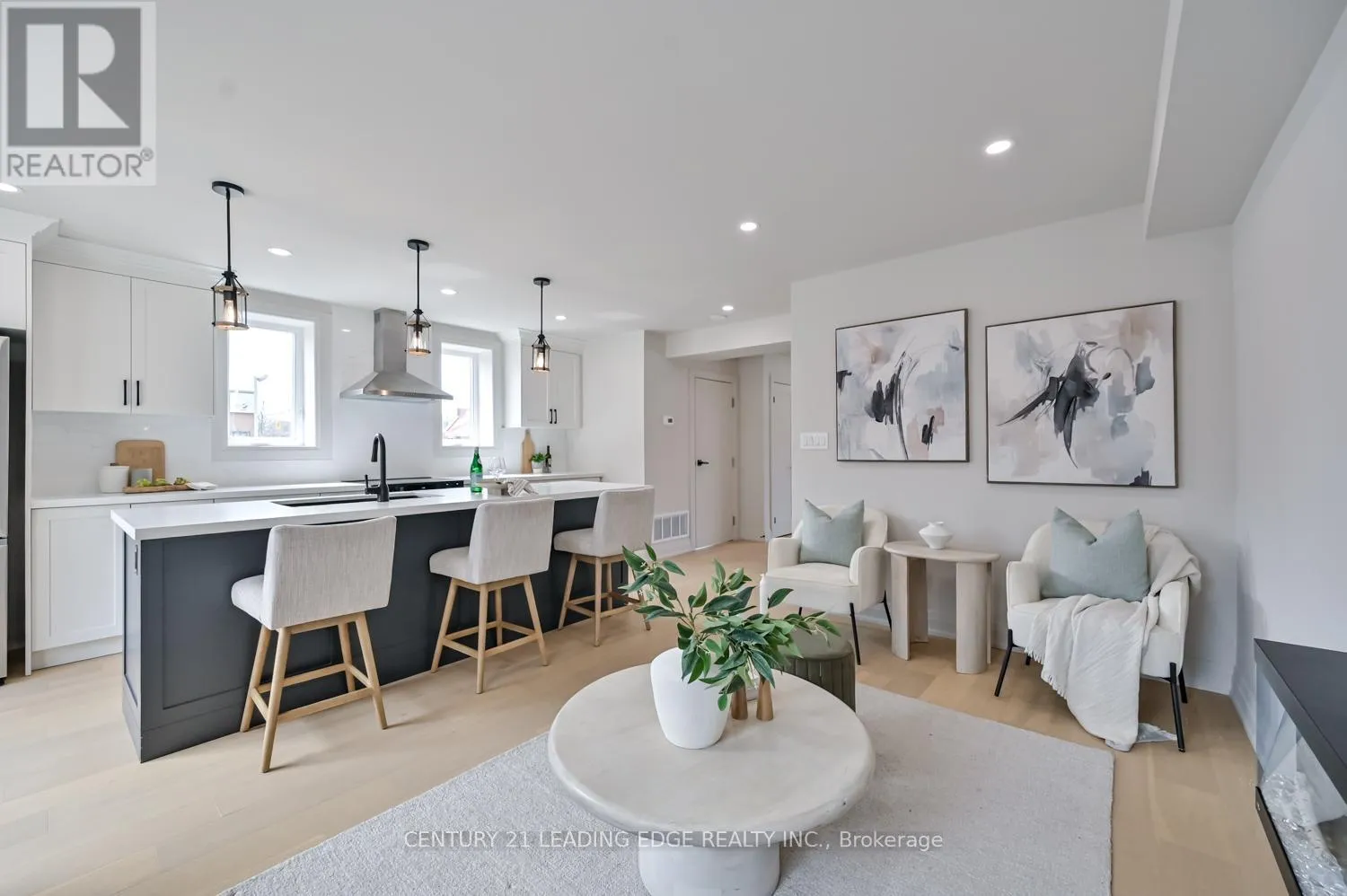 Cross Streets: Kingston Rd. & Warden Ave. ** Directions: Kingston Rd to Warden Avenue. Exquisitely reimagined, this home has been completely rebuilt with the existing foundation, including a full second storey addition and a legal basement apartment with a private entrance, offering a rare blend of luxury living and exceptional investment potential. Ideal for multi generational living or generating rental income, this residence showcases 9' ceilings, high end craftsmanship and upscale finishes throughout. The main level is designed for elegant living and entertaining, featuring a sun filled dining room with gleaming hardwood and a large window. The stunning open concept kitchen and family room features an electric fireplace, pot lights, sleek custom cabinetry and a large island with breakfast bar making the space both stylish and functional. A powder room and lots of closet storage complete the main floor. The wood staircase leads to the second floor, where you'll find three bedrooms, including the primary suite featuring a three-piece ensuite and a walk-in closet. The remaining two bedrooms share an additional bathroom and a separate laundry adds convenience. The self contained lower level apartment features a private side entrance, open concept living and kitchen area with breakfast bar, two bright bedrooms, a three piece bath, and separate laundry. The exterior of the home is equally impressive with a modern stucco finish, a welcoming front porch with modern aluminum railings, a rear porch with steps leading down to the yard and and expansive stone patio that's perfect for hosting family get togethers. Private parking can accommodate 2 or more vehicles. This never lived in home is a short walk to Crescentwood park overlooking the bluffs. Local amenities are just steps away. Get ready to enjoy this gem of a home. (id:27476)