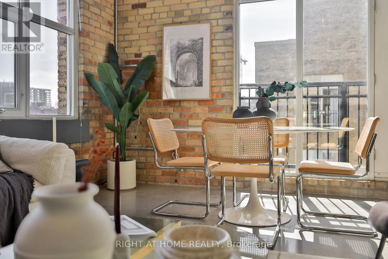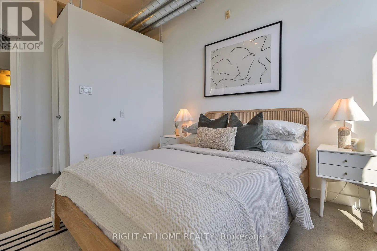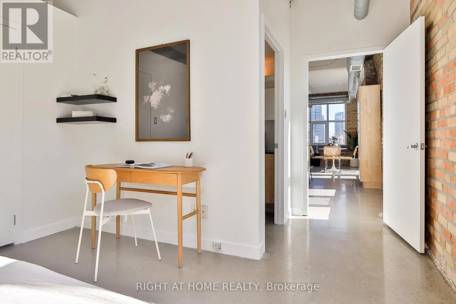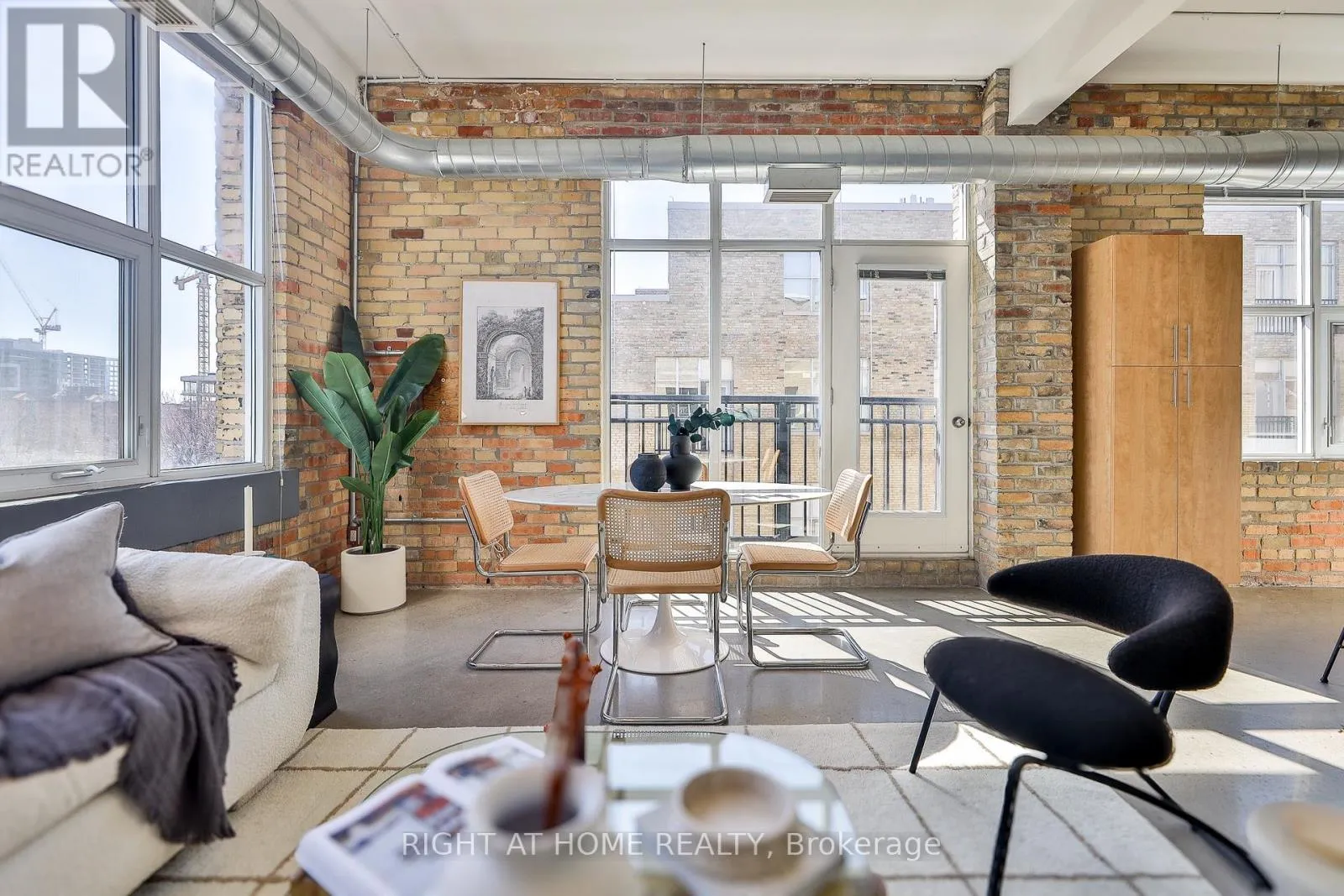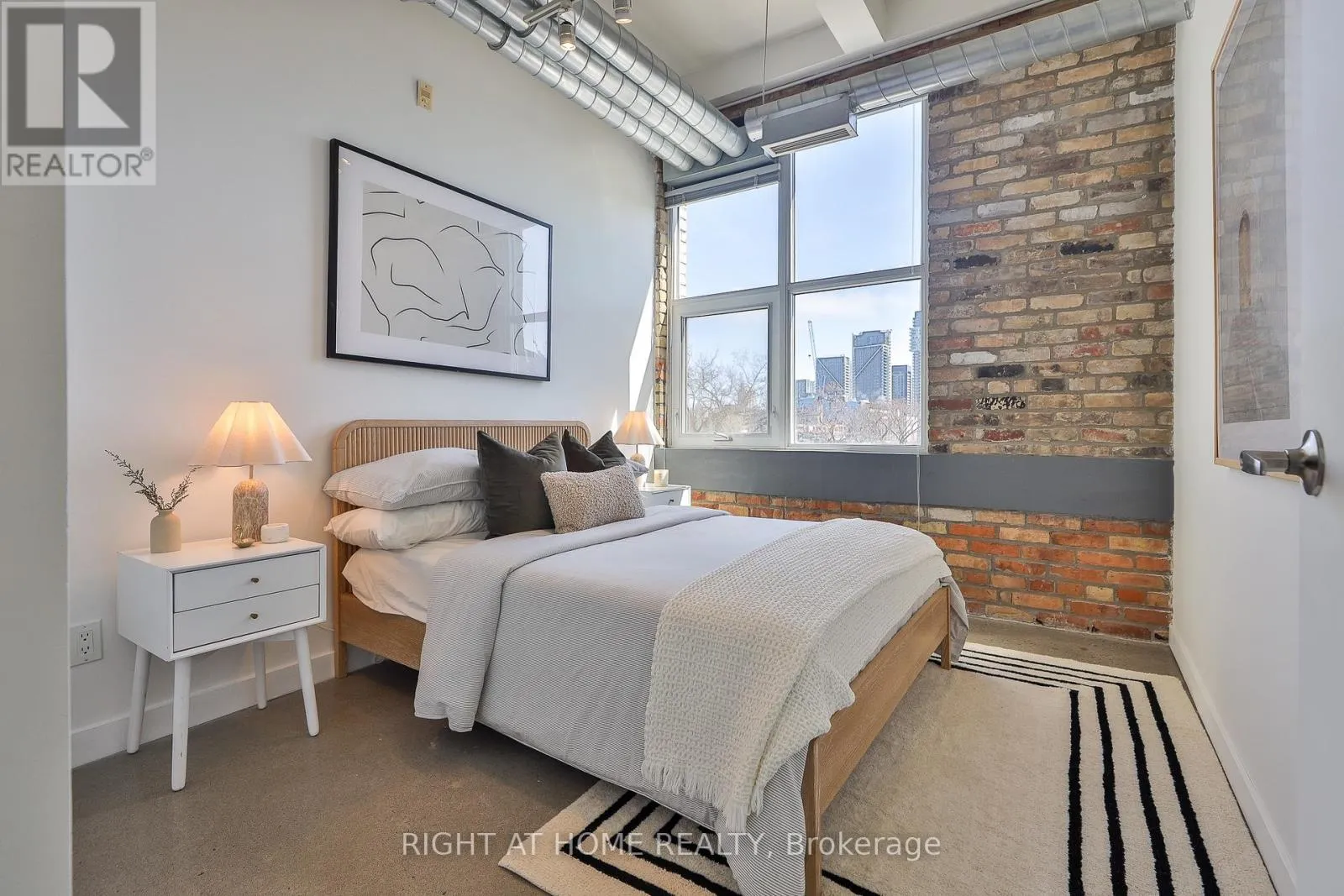 Cross Streets: Queen St W/Strachan Ave. ** Directions: Queen & Crawford. Authentic hard loft living at the iconic Chocolate Company Lofts, directly across from Trinity Bellwoods Park. A rare southwest corner 2-bedroom suite, tucked away from Queen and overlooking a quiet, tree-lined residential pocket - offering the perfect blend of natural light and privacy. Rich in character with exposed brick, original beams, polished concrete floors and soaring ceilings. This thoughtfully designed loft features a functional split 2-bedroom layout, two full bathrooms and a well-appointed kitchen with full-size stainless steel appliances, stone countertops, a large eat-in island and ample storage. The spacious primary bedroom features two walk-in closets and a 4-piece ensuite. Queen West at your doorstep and moments to Ossington, Dundas West, King West, and the city's best restaurants, cafés, and boutiques - with TTC at your doorstep. Parking, storage locker and a double bike rack included. Building features 24hr security/concierge, a nicely outfitted gym and spacious party room. (id:27476)
