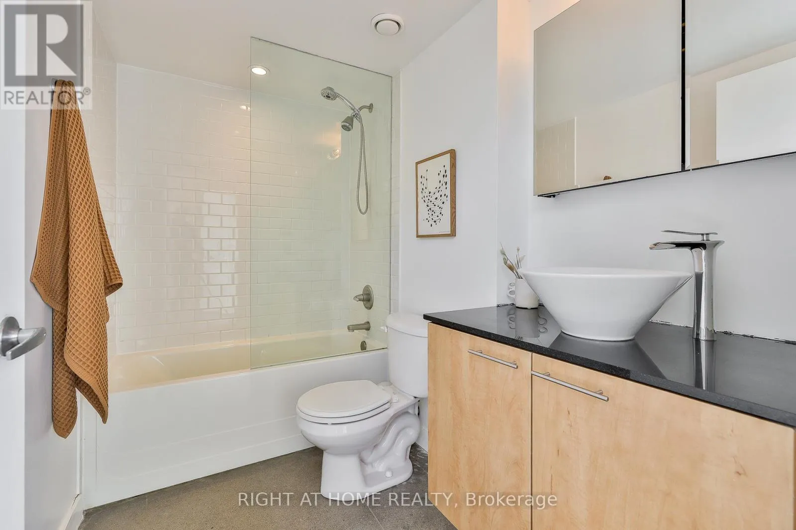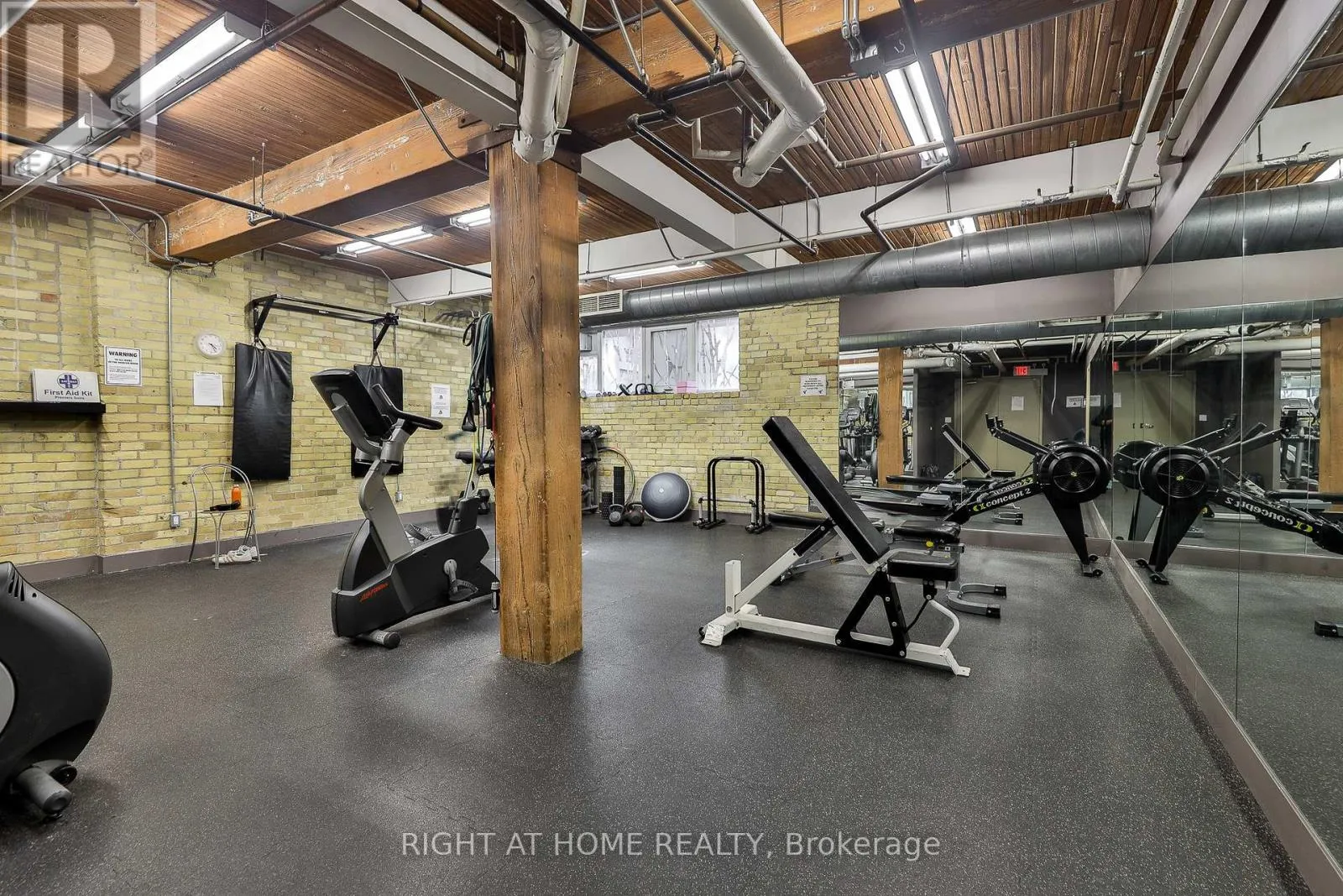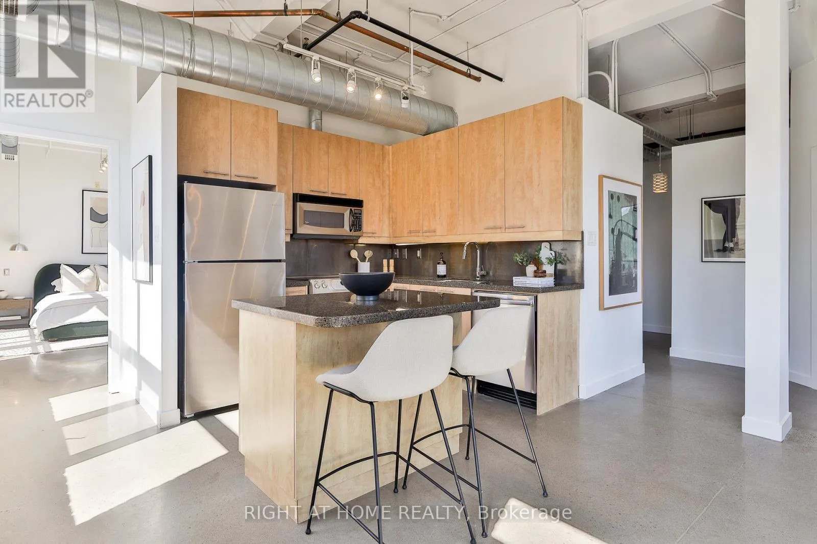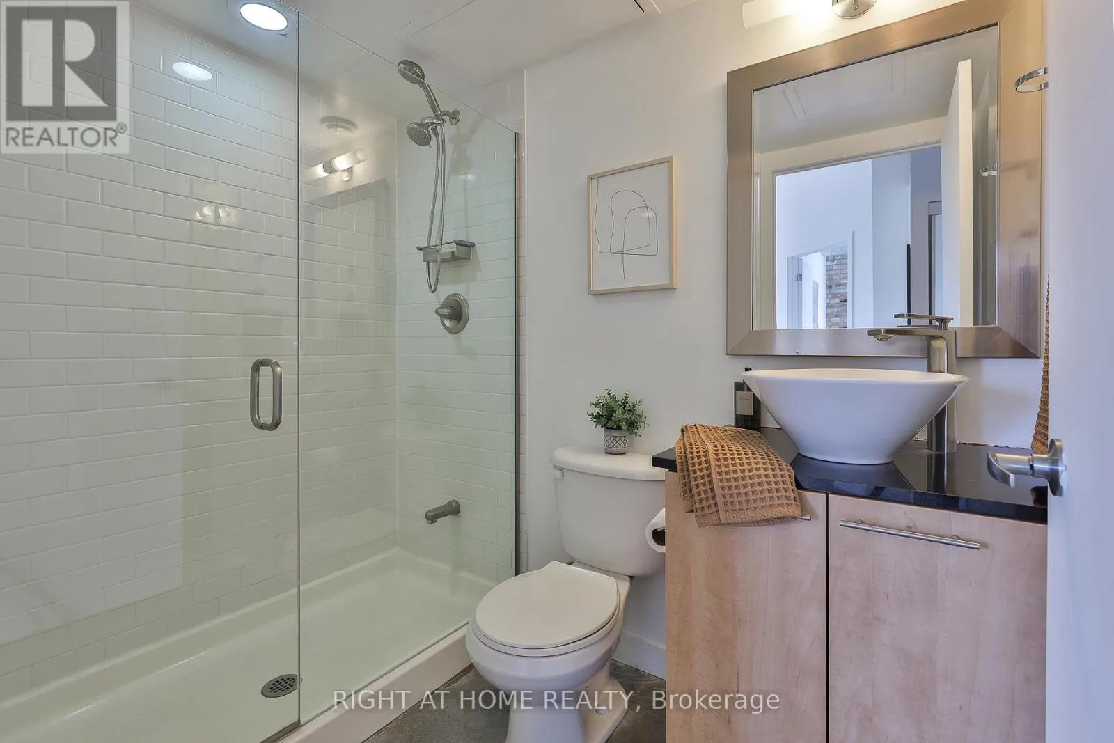 Cross Streets: Queen St W/Strachan Ave. ** Directions: Queen & Crawford. Authentic hard loft living at the iconic Chocolate Company Lofts, directly across from Trinity Bellwoods Park. A rare southwest corner 2-bedroom suite, tucked away from Queen and overlooking a quiet, tree-lined residential pocket - offering the perfect blend of natural light and privacy. Rich in character with exposed brick, original beams, polished concrete floors and soaring ceilings. This thoughtfully designed loft features a functional split 2-bedroom layout, two full bathrooms and a well-appointed kitchen with full-size stainless steel appliances, stone countertops, a large eat-in island and ample storage. The spacious primary bedroom features two walk-in closets and a 4-piece ensuite. Queen West at your doorstep and moments to Ossington, Dundas West, King West, and the city's best restaurants, cafés, and boutiques - with TTC at your doorstep. Parking, storage locker and a double bike rack included. Building features 24hr security/concierge, a nicely outfitted gym and spacious party room. (id:27476)
