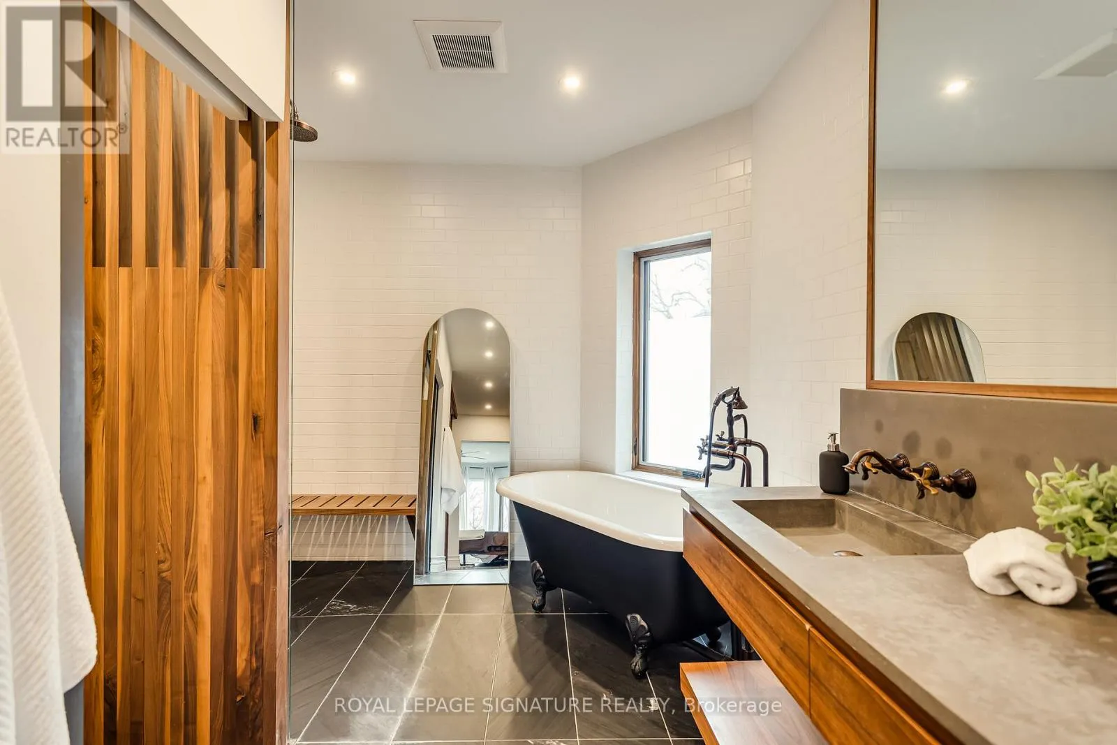 Dundas and Grace St Whoever Said You Can't Have It All, Obviously Hadn't Seen 88 Grace Street. It's Stylish, Spacious with 3250sf of living space (2245sf above grade), Stunningly Renovated From Top To Bottom, Has Private Rear Lane Parking And It's In The Heart Of Trinity Bellwoods. Features Include A Spacious Foyer With Herringbone Tile And Built-in Niche, Open Concept Main Floor With Wide Plank Hardwood Flooring, A Wood Burning Fireplace, Pot Lights And Walkout To An Oversized Deck with Private Lane Parking. The Kitchen Is Absolutely Gorgeous With Stone Counters, High End Stainless Steel Appliances, Custom Island With Live Edge Seating And Built-in Open Shelving. The Second Floor Features A Spacious Primary Bedroom With Walk-in Closet, A Stacked Washer And Dryer And An Incredible Spa-like Bathroom With A Curbless Shower, Claw-foot Tub, Radiant Heating And Enclosed Toilet Room. The Comfortable Second Bedroom And Renovated Main Bathroom Completes The Second Floor. On The Third Level Enjoy A Spacious And Cozy Family Room With Wet Bar, Wine Fridge And Walkout To A Private Roof Top Terrace And A Third Roomy Bedroom. The Basement Is Newly Renovated And Features A Large Bright Recreation Room With Above Grade Windows, An Absolutely Stunning Designer Bathroom And A Large Laundry And Mechanical Room. For Comfort Enjoy 5 Split Air Conditioner Units Throughout The Home, Hardwired Sonos Sound System, 200 Amp Electrical Panel, 2 Wood Burning Fireplaces, Remote Controlled Blinds on the Main Floor, High End Appliances, Private Lane Way Parking and So Much More. (id:27476)
