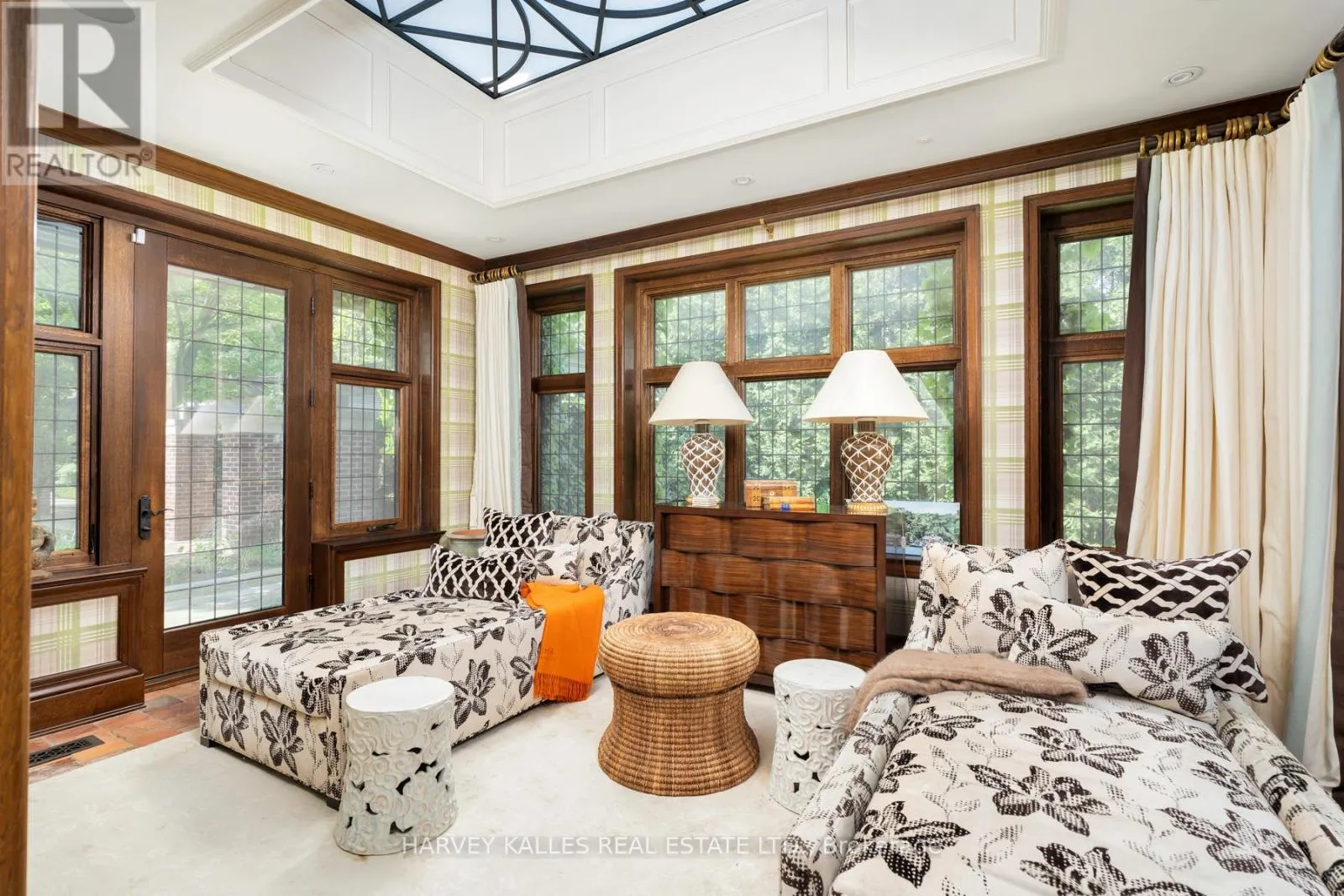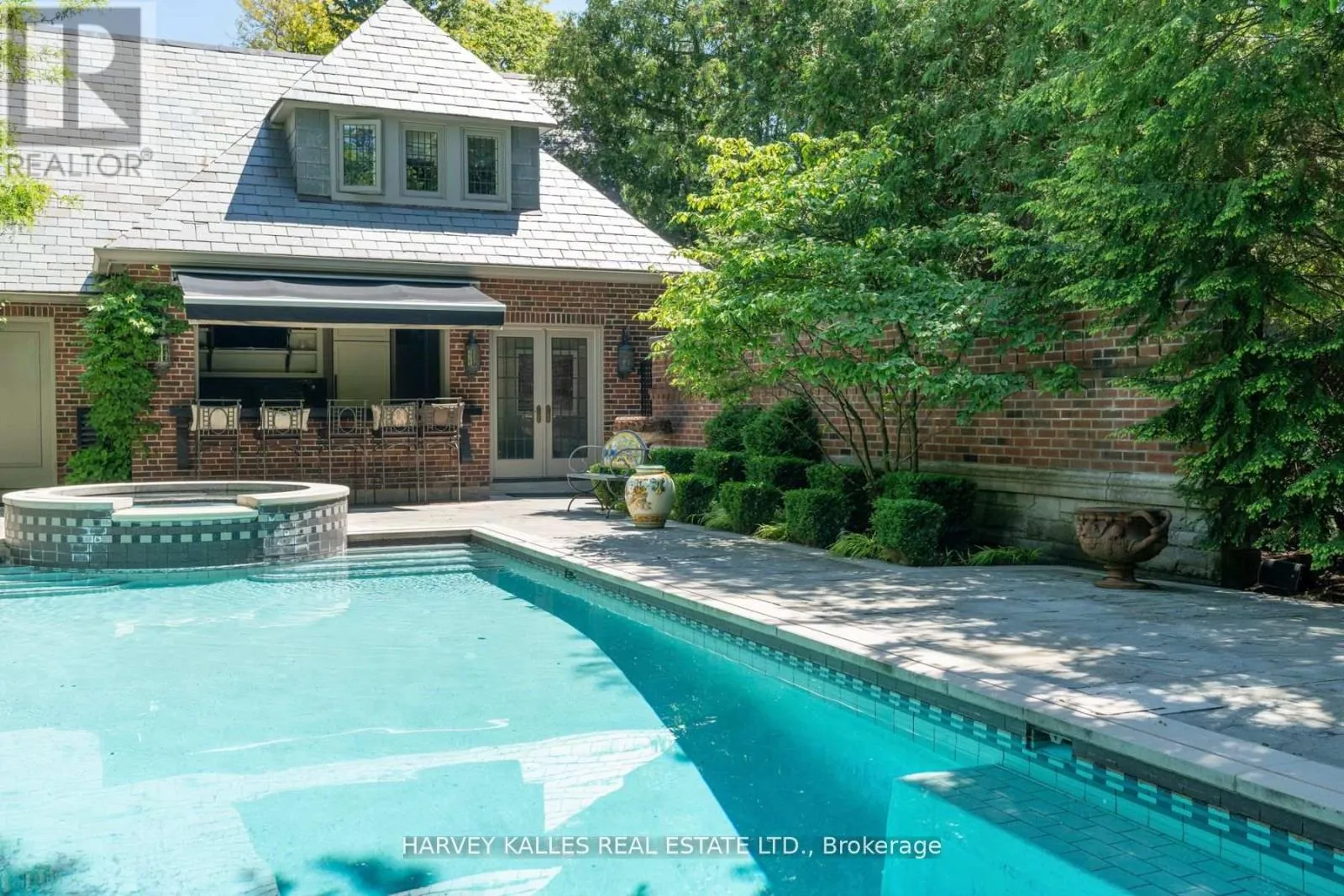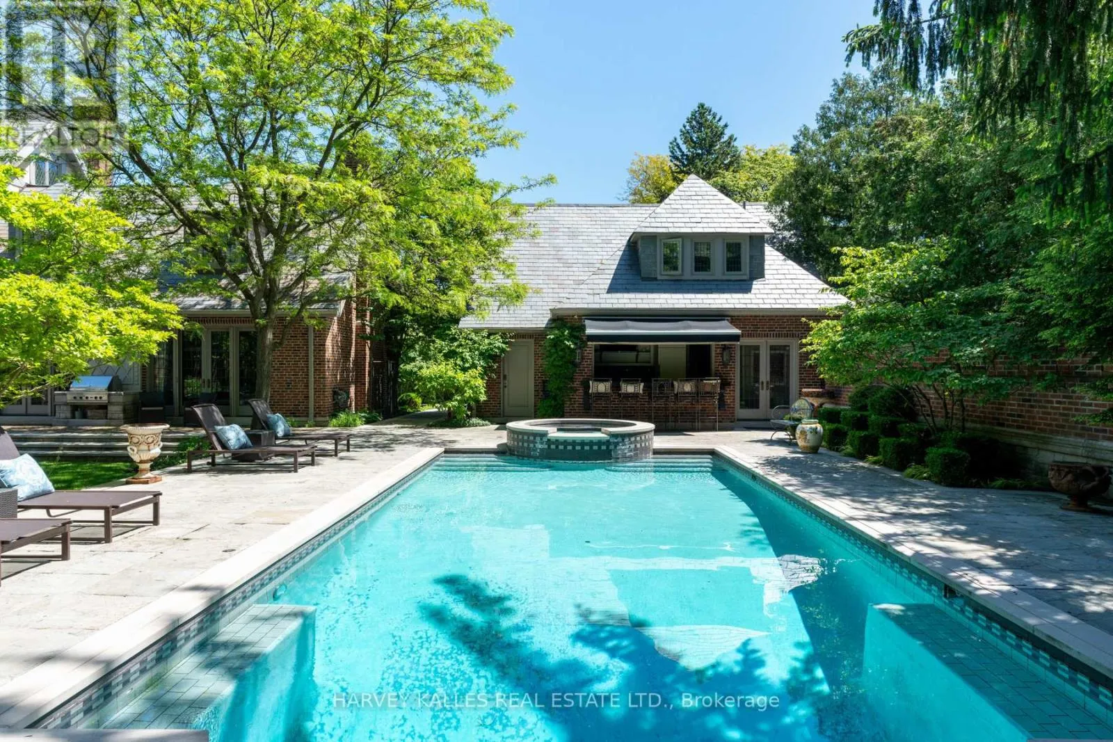 Cross Streets: Mt. Pleasant. ** Directions: Mt. Pleasant Rd north of Lawrence Ave to Teddington Park , east on Teddington Park. Classic residence sited on an estate-sized 0.54-acre lot on one of the most prestigious streets in Teddington Park, adjacent to Rosedale Golf Club. The home was completely taken back to the studs and restored by Joe Brennan with interior design by Lori Morris, showcasing superb craftsmanship, impeccable finishes, and meticulous attention to the finest materials. Grand principal rooms are ideal for entertaining, complemented by an epicurean kitchen, while the sunroom and family room with walk-out to terraces provide more relaxed living spaces. A richly panelled library offers a quiet retreat. Luxurious primary suite boasts a dressing room with centre island and custom built-in shelves. The third level features a spacious loft with two additional bedrooms and two baths. The lower level includes a wine cellar and a large room suitable for a home theatre. The lovely grounds enchant and delight, framed by a canopy of mature trees, exquisite gardens, a sparkling pool, hot tub, fountain, and an eat-in area shaded by a pergola. At the heart of the garden stands a graceful tiered fountain, where water cascades in delicate streams, creating a tranquil focal point. The charming coach house blends elegance and functionality, featuring a kitchen with an aluminum blind that opens to reveal an outdoor bar, complemented by a retractable awning for shade. Inside , there is an exercise room with walk-out to a basketball court, a loft with vaulted ceiling, a bedroom, and a three-piece bath, ideal for guests. Close to Toronto's top private and public schools, clubs, shopping, transit, and a short drive downtown. This exceptional property offers a rare combination of architectural refinement, expansive outdoor living, and thoughtful design, creating an ideal setting for both grand entertaining and comfortable family living in one of the city's most coveted neighbourhoods. A distinguished offering that seamlessly blends timeless elegance with modern luxury and convenience. (id:27476)