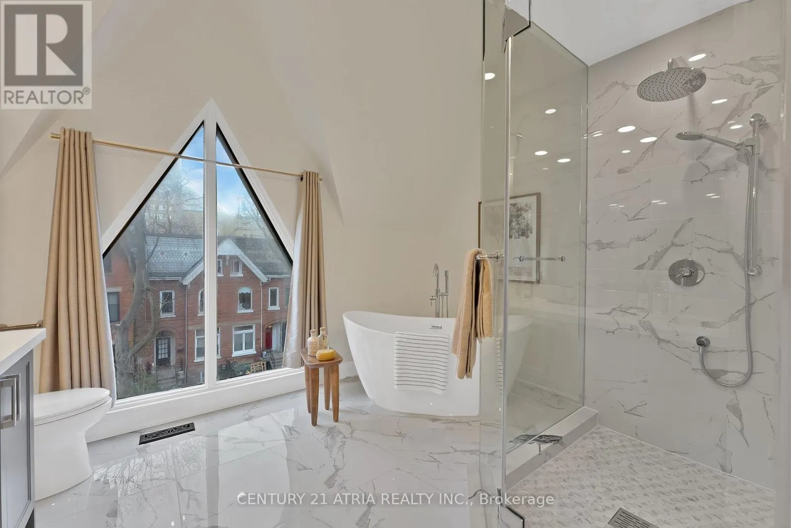 Cross Streets: Church St & Gerrard St. ** Directions: Hey Google, take me to the best NYC-style brownstone in Toronto!. Discover a one-of-a-kind rare gem! Welcome to this NYC-style brownstone townhome tucked into the vibrant heart of downtown Toronto. This freehold character home oozes effortlessly cool living. Where soaring 16.5-foot ceilings flood the open-concept space with natural light, and original exposed brick walls, wood burning fireplace and refinished hardwood floors infuse every level with authentic charm. Tastefully renovated throughout with a modern designer kitchen and spa-like bathrooms, it seamlessly blends historic appeal with modern comfort. A vintage, original spiral staircase winds its way to a stunning private rooftop oasis, an unexpected escape above the city, while a walk-out backyard provides even more serene outdoor space. Spacious bedrooms, including one bathed in natural light from a skylight, complete this one-of-a-kind sanctuary. Quietly nestled in a peaceful community yet just steps from Yonge Street, College Park and TMU subway stations and everything downtown has to offer. This family-owned, lovingly cared for unique home is made for those who crave character, cool vibes, and effortless city living at its very best! (id:27476)