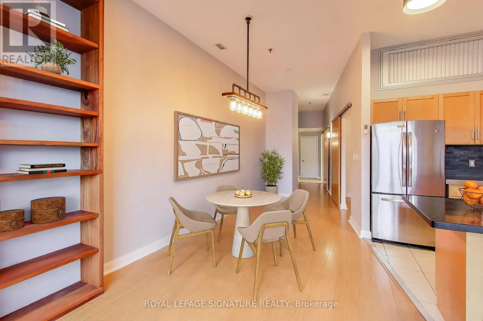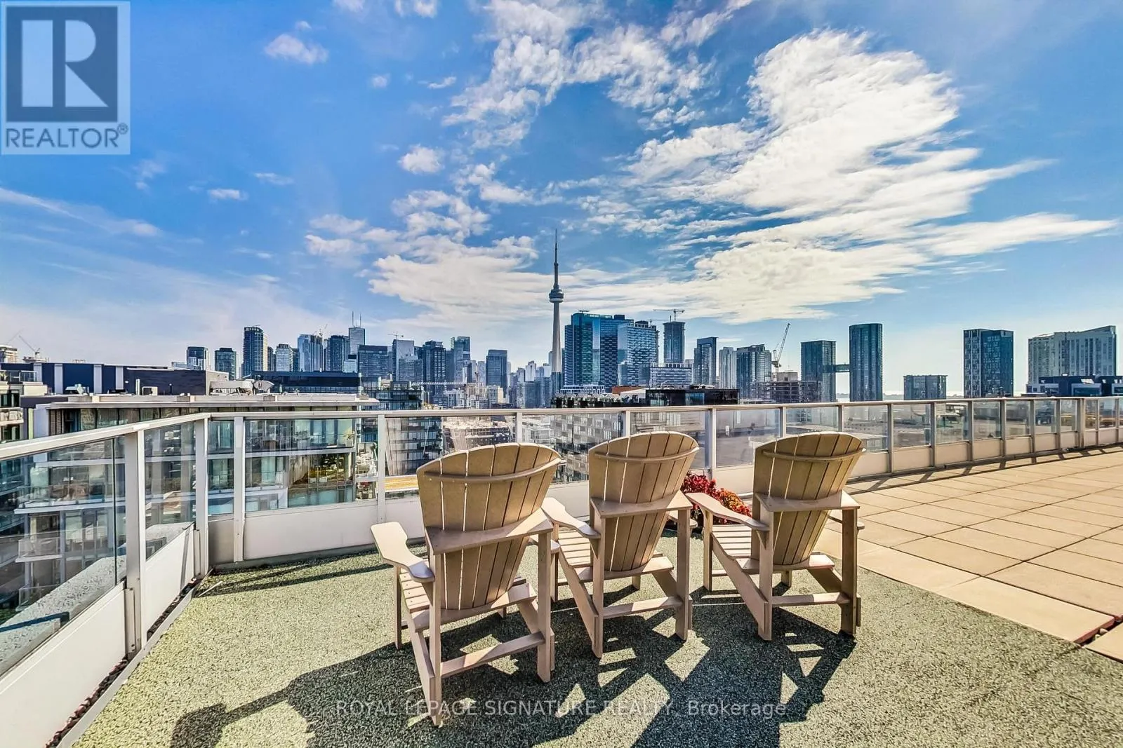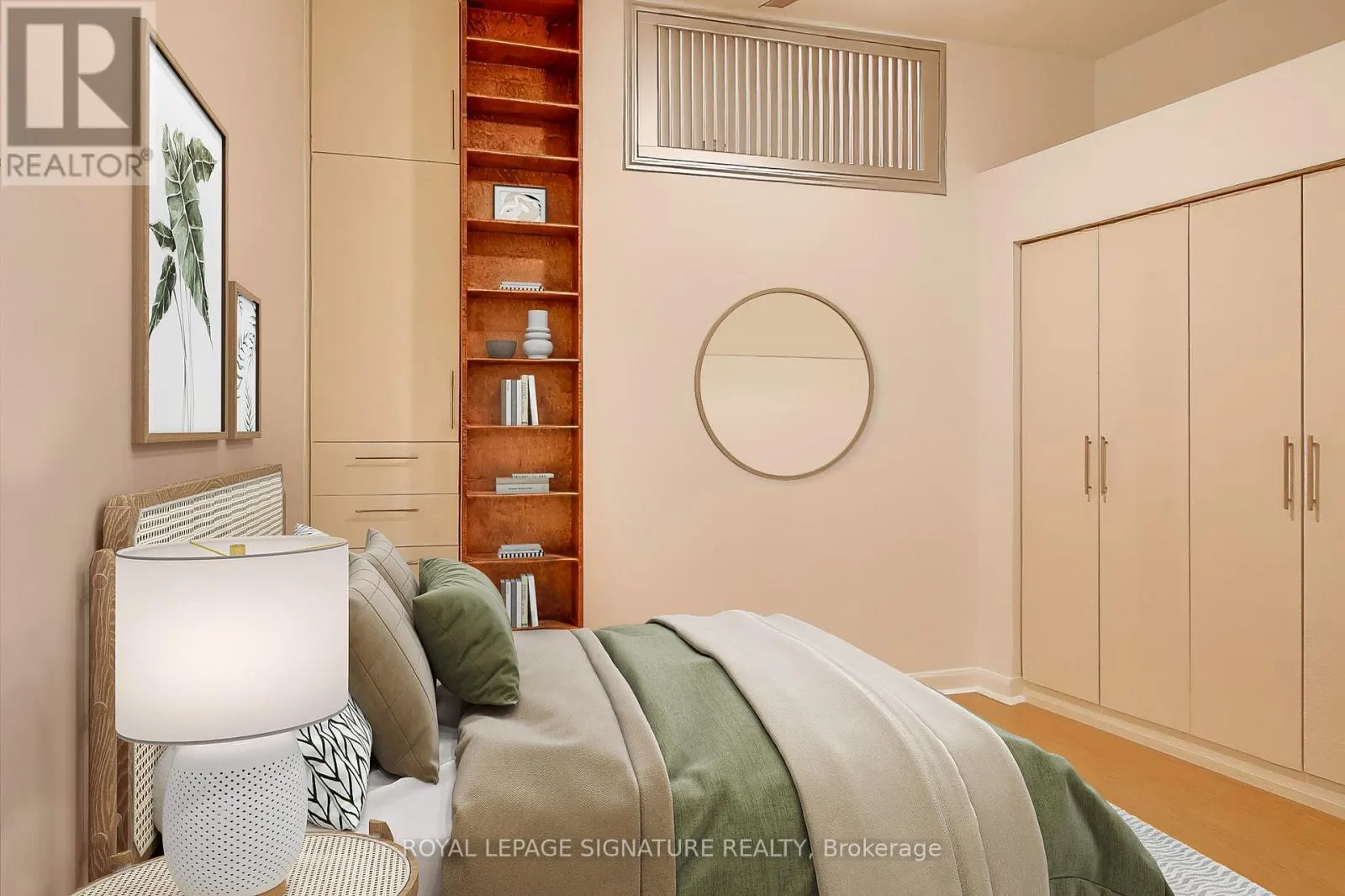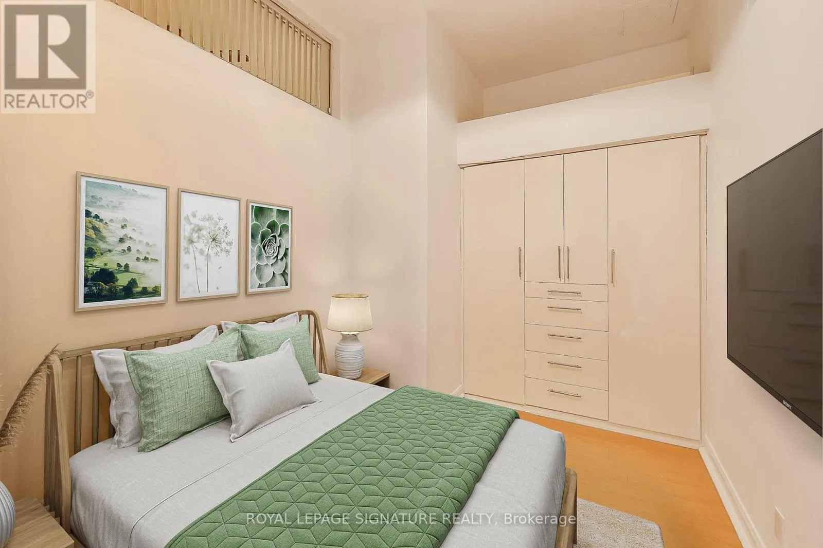 Cross Streets: King and Bathurst. ** Directions: Right on the North West corner if King and Bathurst. This is it - your opportunity to own a true loft in the heart of King West for a steal of a price! One of the largest units in the building at 925 sq ft, located on a high floor, with soaring 11.5 ft ceilings. A rare opportunity at this price point - come experience true open-concept living in this spacious 2-bed, 2-bath suite at one of Toronto's most iconic loft conversions - The Clocktower Lofts. This unit has been freshly painted and is is brimming with potential. The industrial-chic vibe is complemented by oversized warehouse windows, sliding bedroom doors and a beautiful, custom-built floor-to-ceiling bookcase, making it the perfect space for both relaxed living and stylish entertaining. Both bedrooms are generously sized and offer built-in closets, with the primary bedroom including a spacious 4-piece ensuite bathroom. The unit comes with a convenient, large locker located on the same floor in a room directly beside the front door. Moving in will be a snap with the service elevator being located directly across from the apartment entrance. Enjoy the convenience of exclusive building amenities, including a 24/7 Concierge, gym, and a rooftop w/ 360 views of downtown. This building is highly regarded as having some of the best service and management in the city. And if that isn't enough, the upcoming Ontario Line will bring a brand-new subway station to King and Bathurst, just steps from your front door - offering faster, more direct access to the entire city. Whether you're a homeowner or investor, this new transit hub boosts long-term value and lifestyle convenience. Located in the heart of King West, you're steps from the best restaurants, cafés, shops, and nightlife Toronto has to offer, with easy access to transit and the downtown core. Don't miss your chance to own a piece of Toronto loft history with size, character, and location all in one. Strategically priced for today's buyer. (id:27476)