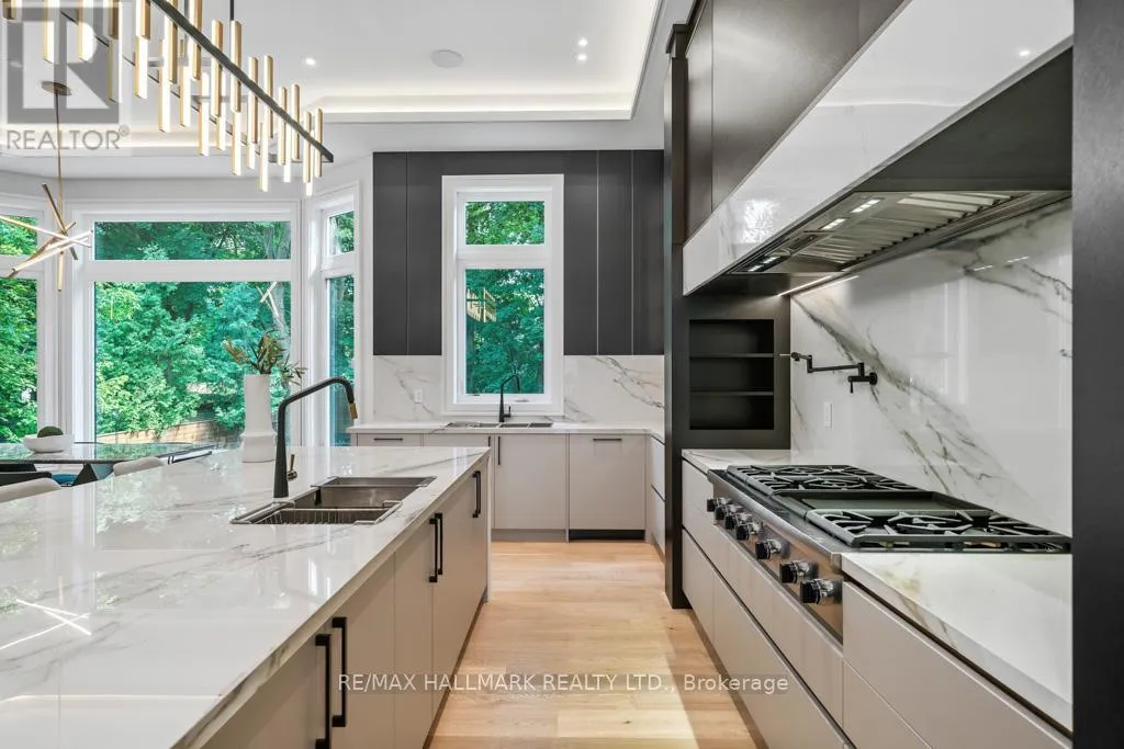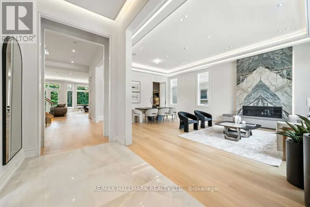 Cross Streets: Bayview/Cummer. ** Directions: North of Cummer, west of Bayview. Exceptional Custom Home in Willowdale. A true masterpiece of design, quality, and craftsmanship. Featuring soaring 12-ft ceilings on the main floor, 10 ft on the second, and 9 ft in the basement, this sun-filled home boasts a perfect balance of grandeur and warmth. The elegant main floor welcomes you with a heated foyer, formal living and dining rooms with a feature marble fireplace, and a private office ideal for working from home. The chef-inspired kitchen is equipped with premium Thermador appliances, including a built-in coffee machine, oversized fridge/freezer, gas cooktop, and a walk-in pantry with a built-in beverage cooler. The open-concept family room and breakfast area walk out to an extra-large deck with glass railing and a professionally landscaped backyard with built-in outdoor speakers, perfect for indoor-outdoor living. State-of-the-art home automation includes built-in audio in the family room, kitchen, dining room, primary bedroom, ensuite bathroom, basement rec room, and backyard. Additional features include a video surveillance system with 4 exterior cameras, an intercom system on both levels, and two zoned HVAC systems with smart thermostats. Upstairs, the luxurious primary suite features a spa-like 5-piece ensuite with a heated floor and an oversized walk-in closet. The second and third bedrooms each enjoy their own 4-piece ensuite bathrooms and walk-in closets. A central skylight brings natural light into the upper hall. The fully finished basement with radiant heated floors includes a guest bedroom, full 3-piece bathroom, bar with island and wine rack, and a spacious recreation area ideal for a home gym, theater, or in-law suite. Additional highlights include: Heated front porch and front steps for winter safety, Two independent HVAC systems, Smart lighting control throughout main areas and exterior, Premium finishes and materials throughout, and masterpiece lighting design. An unmatched offering--this home must be seen to be truly appreciated (id:27476)