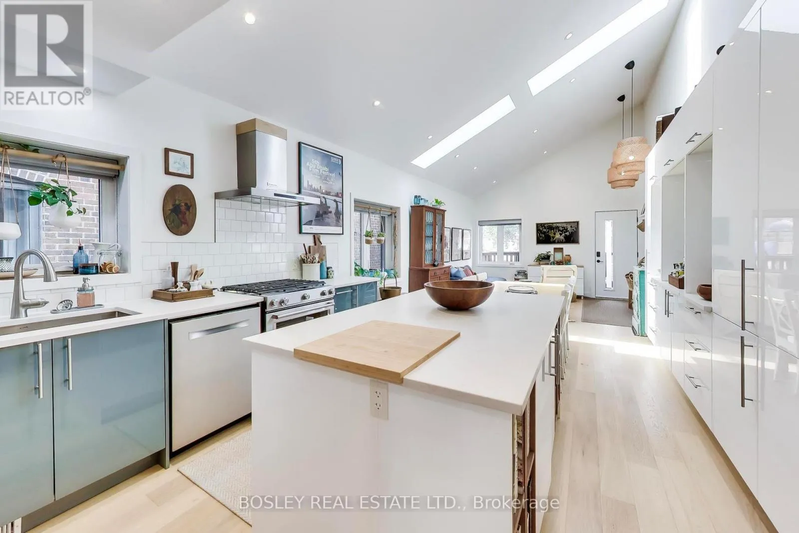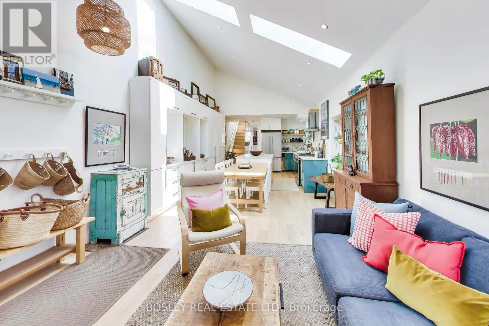 Cross Streets: Queen St. East & Jones. ** Directions: South from Queen St. East. Well, well, well Leslieville... would you look at you. You know that house - the one that makes you slow your stroll just a touch, tilt your head, & wonder what's going on inside? Yes, that one. Now... here's your chance. What started life as a modest bungalow has been completely transformed into a design-forward showpiece that walks the line between architectural edge & laid-back cool. It's confident without trying too hard - the kind of home that just gets it. Every square inch has been dialed in. Smart design, clean lines, & a seamless flow that makes everyday living feel a little more elevated. Sun-soaked & seriously feel-good, this home is practically glowing - thanks to a dreamy mix of oversized windows & perfectly placed skylights that flood every corner with natural light. The primary ensuite? Think spa-day, every day - with heated floors underfoot, a deep soaker tub made for unwinding, & a luxurious walk-in shower. On the main floor there's a work from home office, & a 2nd bedroom that currently rocks a slick Murphy bed setup, but it's ready to shapeshift - home studio, yoga zone, dressing room, creative escape... you decide the vibe. The kitchen? Oh, it's ready. Whether you're hosting, experimenting, or expertly plating your favourite takeout like you definitely made it yourself, this space shows up. The clincher: a fully furnished basement apartment with a dream tenant already in place. That's right - instant income, baked right in. Then there's the street... the kind where kids play, neighbours linger, & front porch hangs turn into real friendships. Laneway garage? Naturally. Because in Leslieville, that's gold. You already know the neighbourhood. The cafés, shops, restaurants - all the reasons you wanted to be here in the first place - just steps from your door, waiting to become part of your daily rotation. This isn't just a home. It's a bit of a moment. Open house Upper unit only - Saturday & Sunday, 2-4. Swing by. You'll be glad you did. (id:27476)