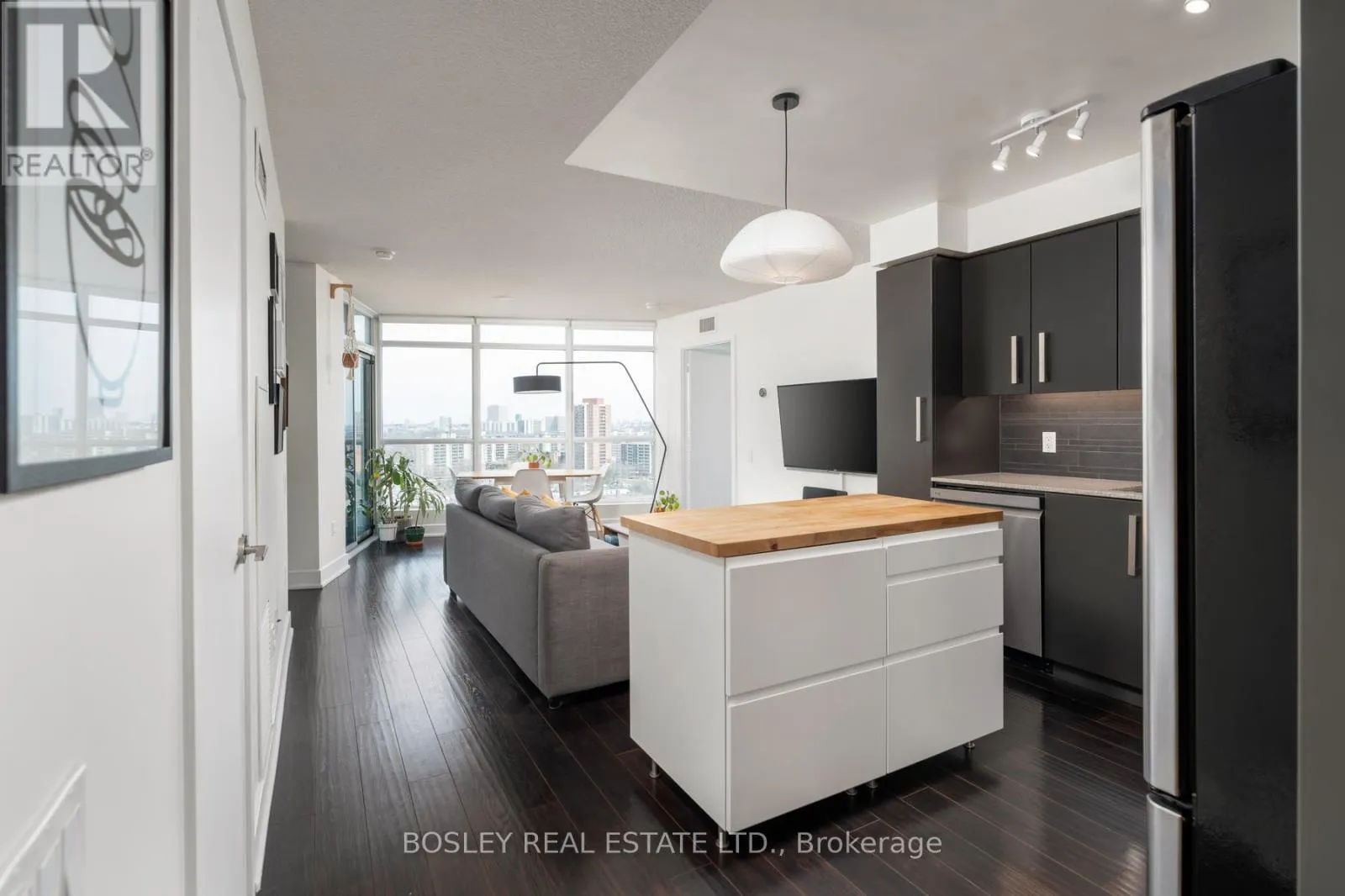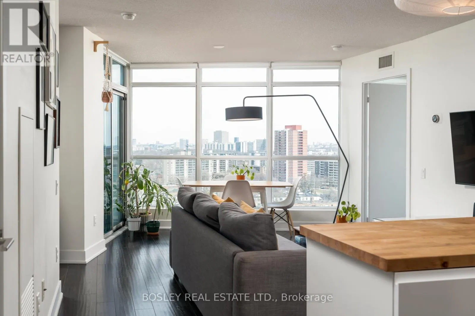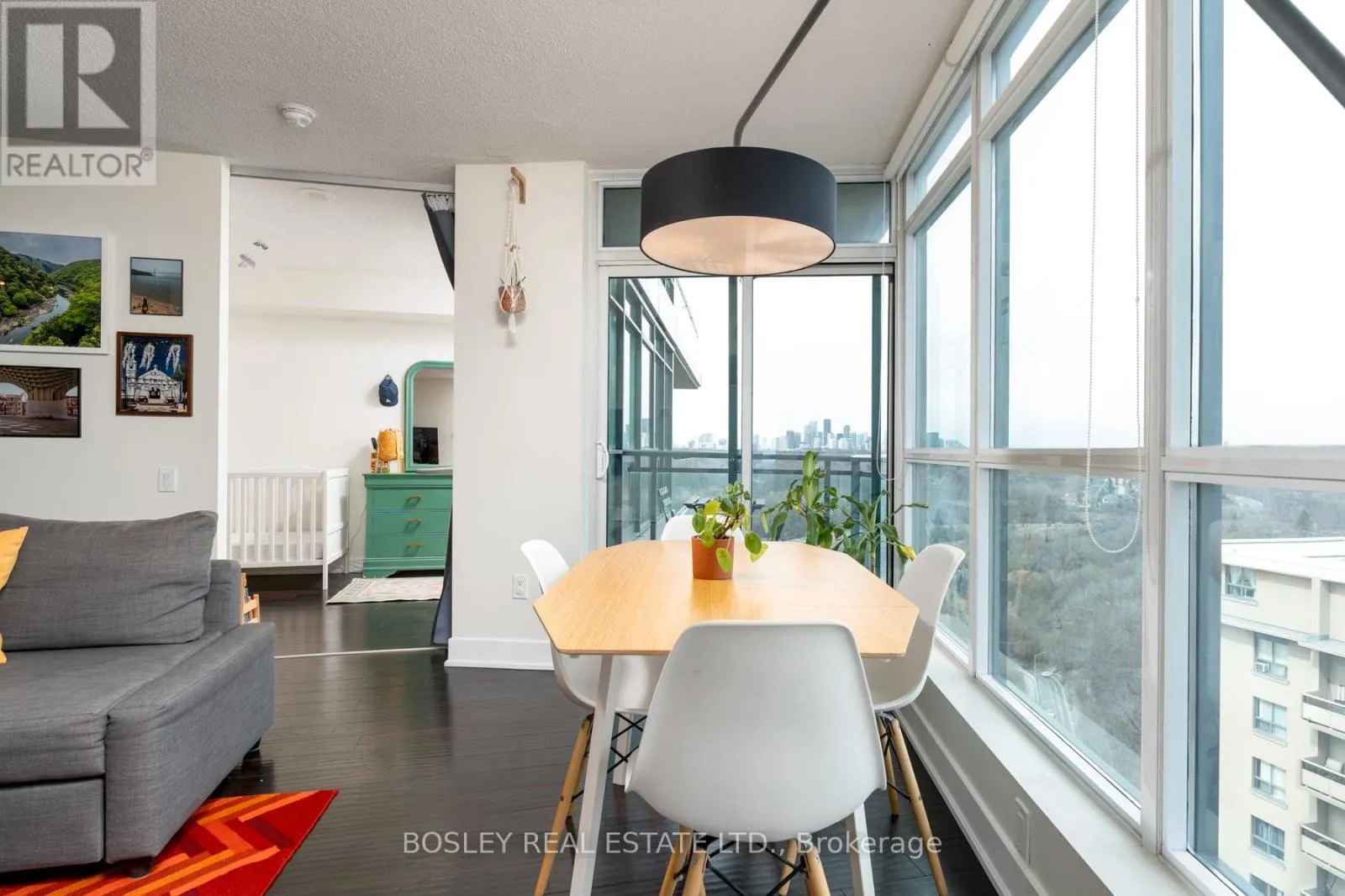 Broadview Ave & Mortimer Ave Elevated living with sweeping west, north, and east views from this spacious corner suite at Minto Sky. This well-maintained 2-bedroom split floor plan offers 836 sq ft of open-concept living with upgraded finishes, a functional kitchen island, five appliances, and a private balcony. The corner primary bedroom enjoys beautiful east and north exposures, along with a walk-in closet and ensuite, plus excellent in-suite storage throughout. Steps to the Danforth's shops and restaurants, Don Valley trails, and Evergreen Brick Works, with Sobeys across the street-and Dairy Queen right next door! TTC at your door and easy highway access. Includes parking and a locker. A fantastic opportunity in a prime location. (id:27476)