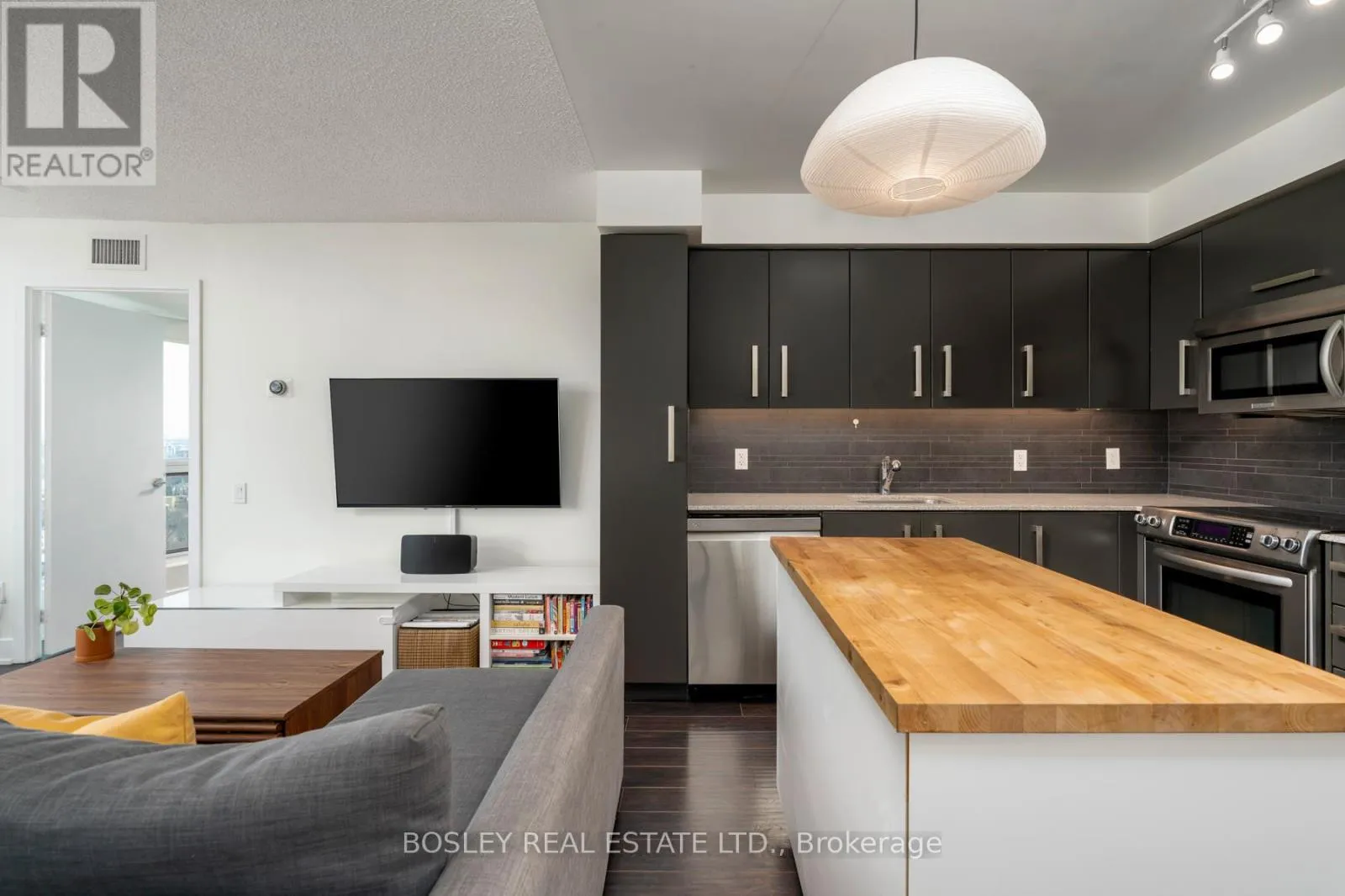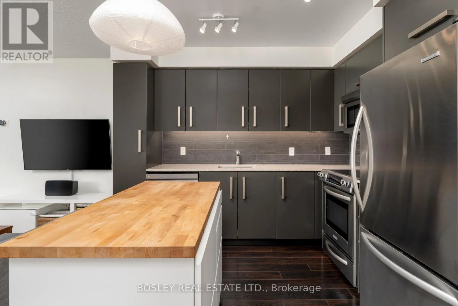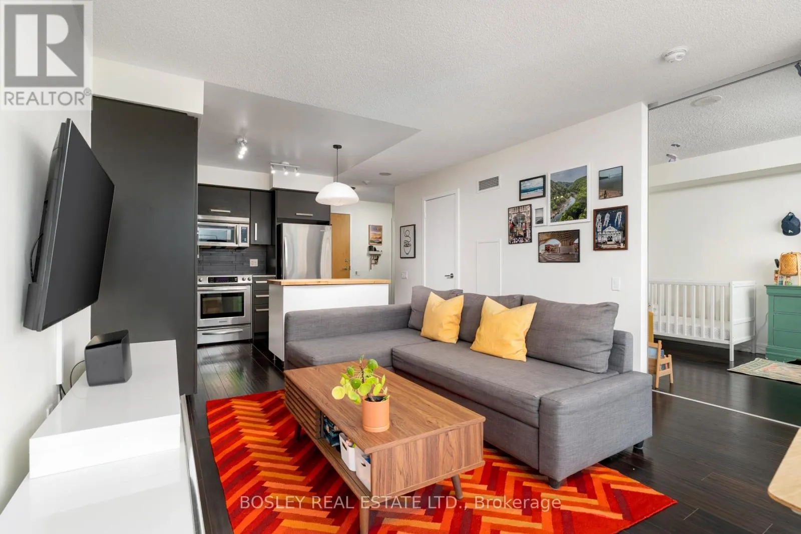 Broadview Ave & Mortimer Ave Elevated living with sweeping west, north, and east views from this spacious corner suite at Minto Sky. This well-maintained 2-bedroom split floor plan offers 836 sq ft of open-concept living with upgraded finishes, a functional kitchen island, five appliances, and a private balcony. The corner primary bedroom enjoys beautiful east and north exposures, along with a walk-in closet and ensuite, plus excellent in-suite storage throughout. Steps to the Danforth's shops and restaurants, Don Valley trails, and Evergreen Brick Works, with Sobeys across the street-and Dairy Queen right next door! TTC at your door and easy highway access. Includes parking and a locker. A fantastic opportunity in a prime location. (id:27476)