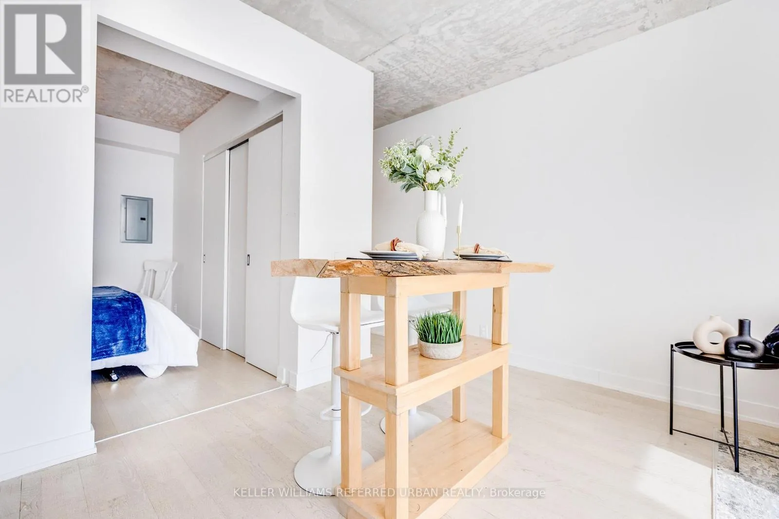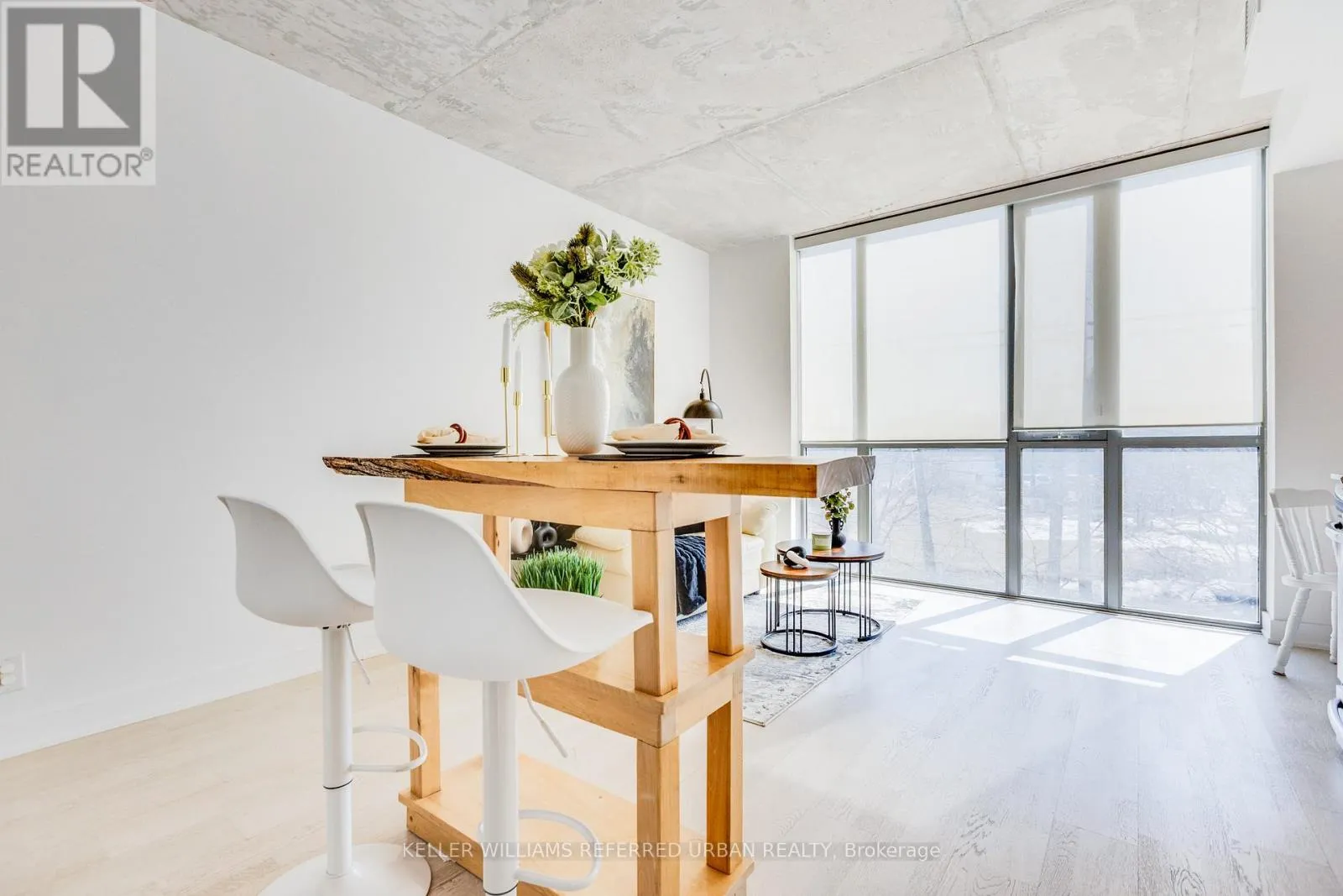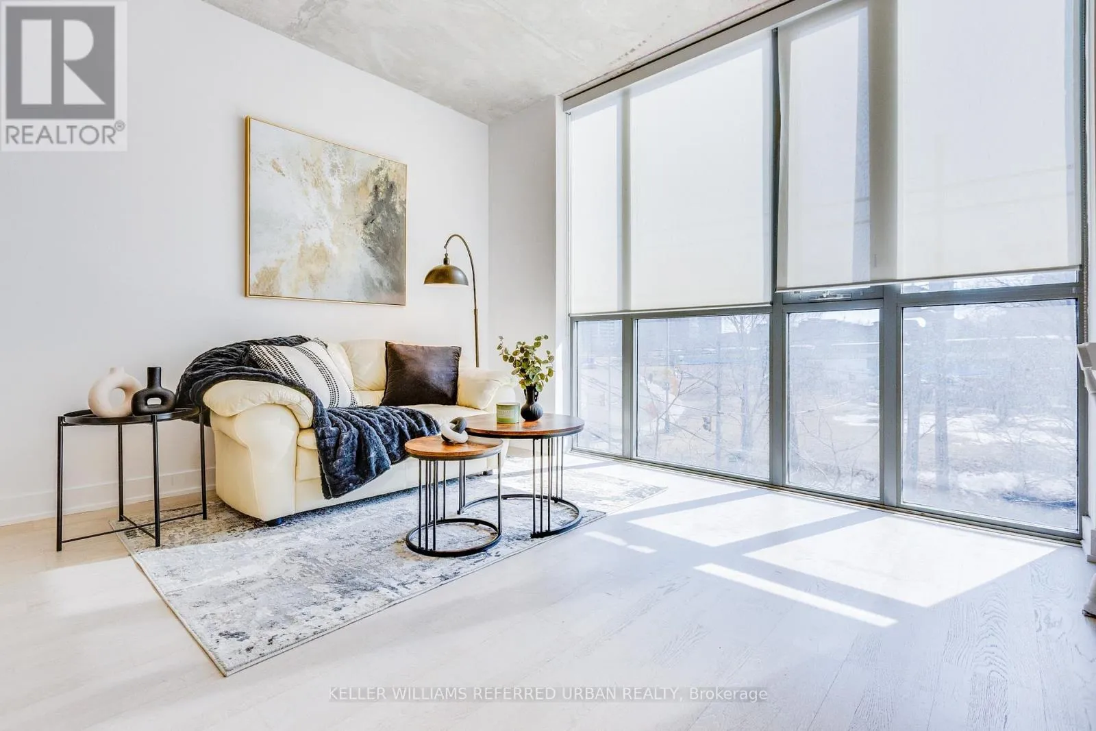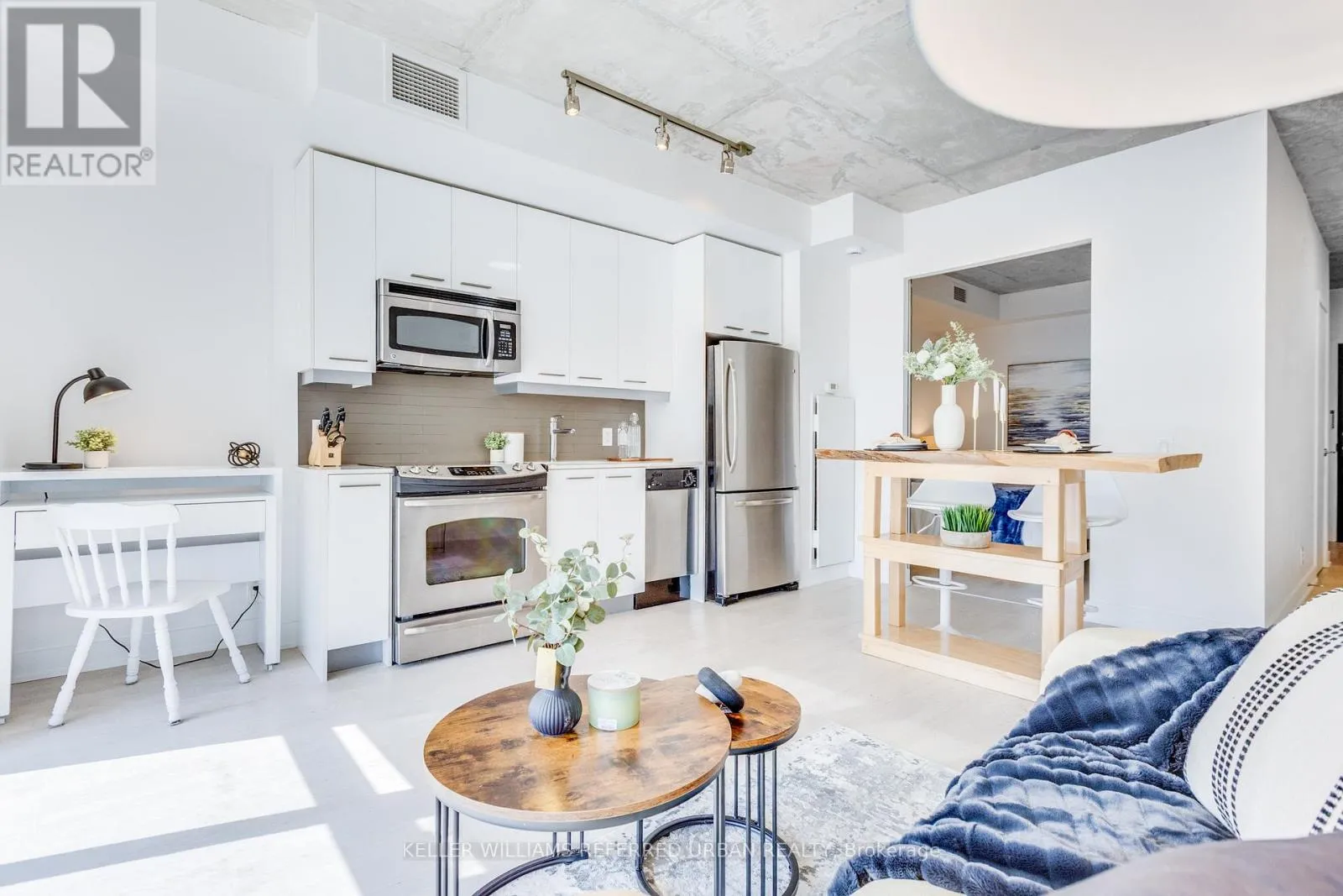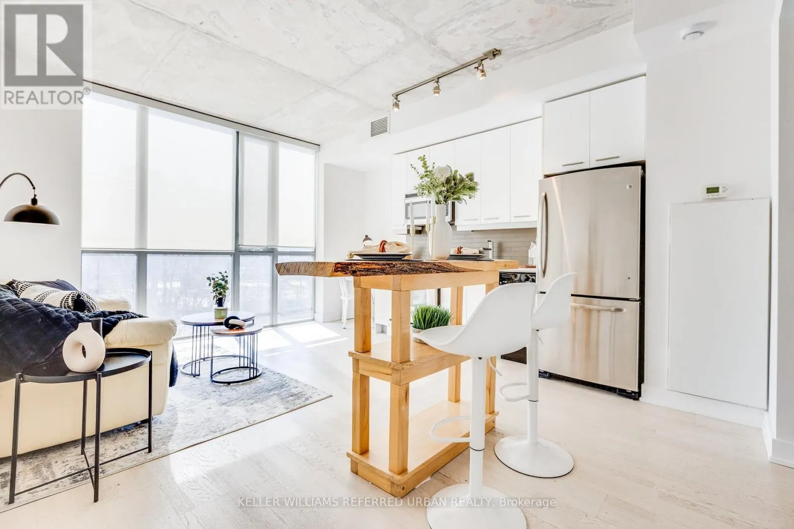 Queen St West & Gladstone MOTIVATED SELLER! Welcome To Boutique Loft Living At 2 Gladstone In The Heart Of Vibrant Queen West. This Stylish 1-Bedroom Suite Offers Approx 550 Sq Ft Of Thoughtfully Designed living space in an Intimate Mid Rise Building. Featuring 9' Exposed Concrete Ceilings, Floor-To-Ceiling Windows And Hardwood Floors Throughout. Highly Sought After South Exposure Fills The Unit With Lots of Natural Light In Open Concept Layout. Ideal 2nd Floor Unit W/Optional Use Of Stairs For Easier Access. The Modern Kitchen is Equipped With Stainless Steel Appliances, Quartz Countertops, and a Sleek Glass Backsplash, Seamlessly Flowing into the Living and Dining area-Perfect For Entertaining or Relaxing. The Spacious Bedroom Includes Ample Closet Space and it Includes Locker for More Storage. Location Can't Be Beat! Steps from Queen West's Best Restaurants, Cafes, Shopping, Eclectic Boutiques and Nightlife. Metro, Starbucks, RBC, and LCBO are Conveniently Located in the Complex, with The 24-Hour TTC Queen Streetcar Right At Your Doorstep for Easy Access Across the City.A Perfect Opportunity for First-time Buyers, Investors, or Urban Professionals Seeking Stylish Loft Living in One of Toronto's Most Dynamic Neighbourhoods. (id:27476)