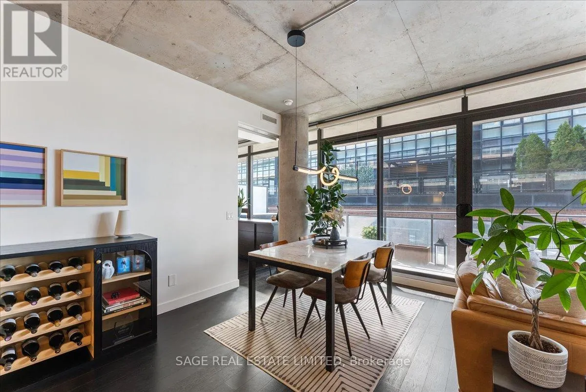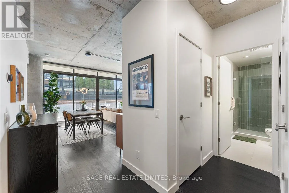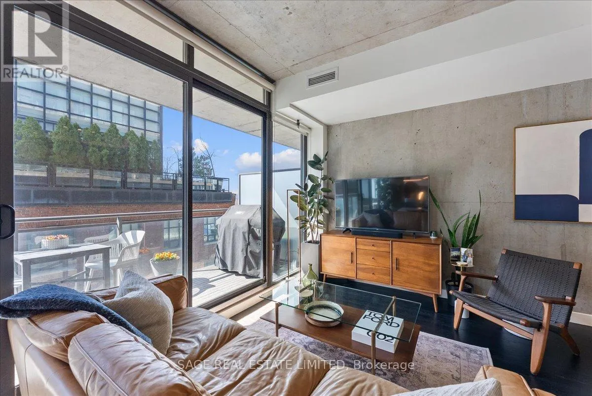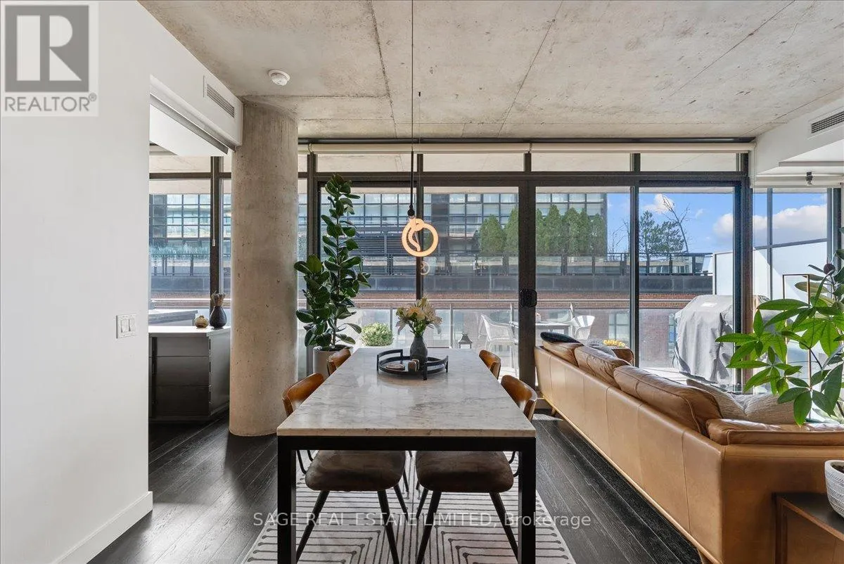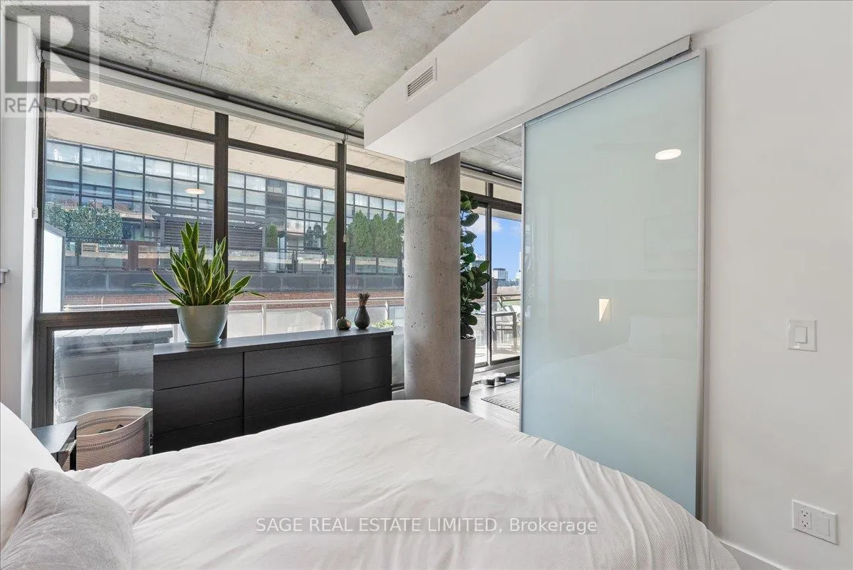 Cross Streets: Broadview and Queen. ** Directions: Off Queen. Welcome to The Ninety - one of Toronto's most coveted boutique loft residences, where design and lifestyle move in sync.This expansive 1+1 offers a rare sense of width and scale, framed by wall-to-wall windows that wash the space in natural light from morning through late afternoon. The layout unfolds effortlessly - a refined open concept where the kitchen anchors the space with stainless steel appliances and a gas range, flowing seamlessly into the living and dining areas, inviting connection and conversation.Soft, considered interiors play against raw concrete, creating a space that feels both grounded and refined. The neighbouring architecture becomes part of the experience; a quiet interplay of glass, brick, and greenery reflected through the windows, adding depth and an unexpected sense of design.Double sliding doors extend your living outdoors to a full-length terrace; an oversized, private escape with room to lounge, dine, and host. A gas line makes summer evenings feel easy, whether it's a quick weeknight grill or a slow Saturday with friends.The den is thoughtfully designed with built-in cabinetry and a discreet Murphy bed, offering flexibility for a home office, guest space, or second bedroom - without compromise. Every detail has been considered: updated lighting throughout and a fully renovated bathroom elevate the home into true turnkey territory.And then there's Leslieville - where your routine becomes the ritual. Morning coffee, weekend browsing, dinner plans that don't require planning. Step outside and let the neighbourhood do the rest. (id:27476)