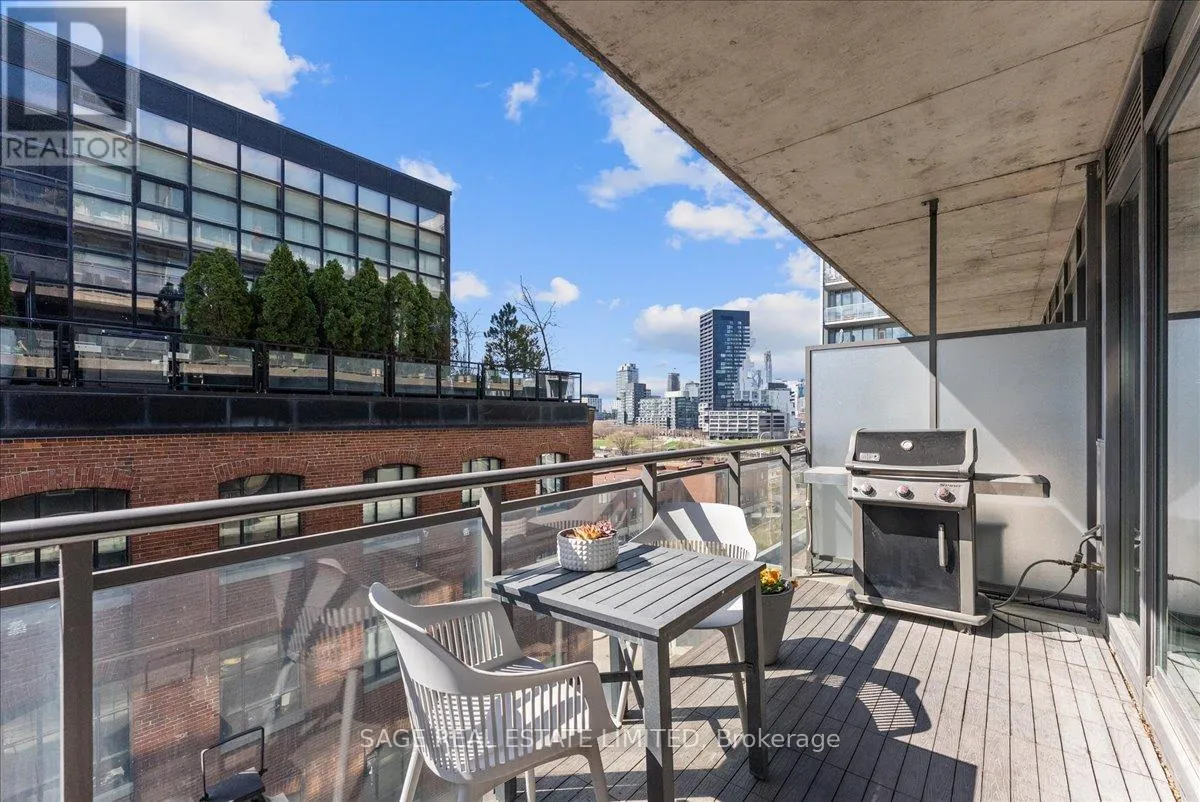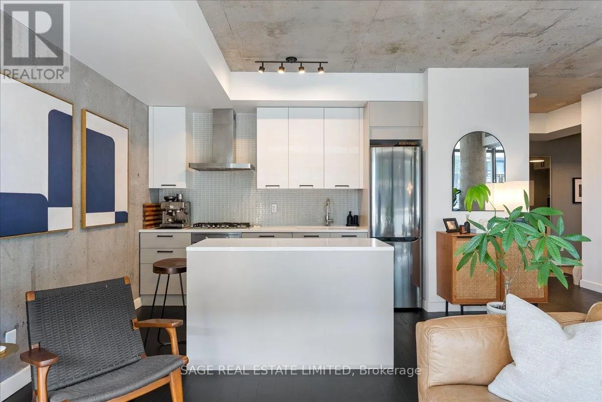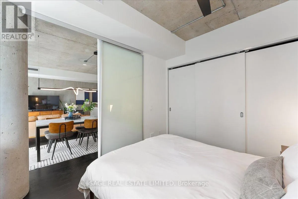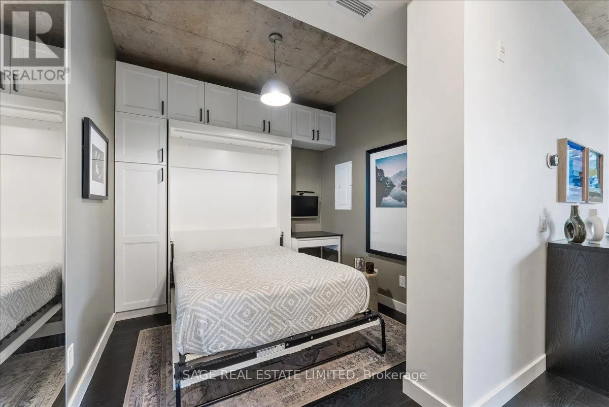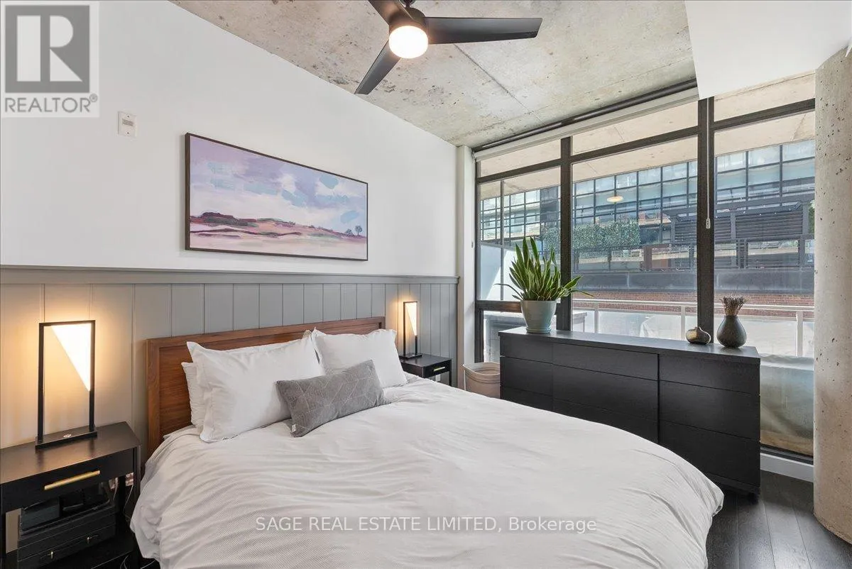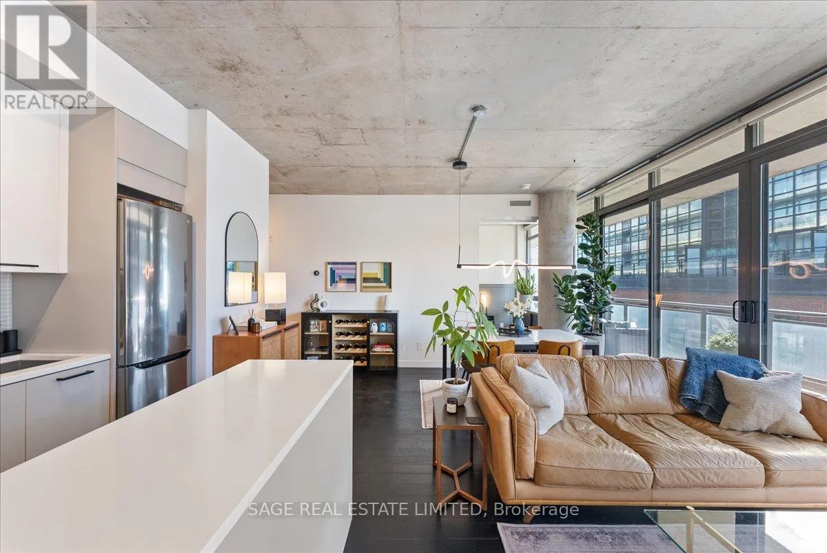 Cross Streets: Broadview and Queen. ** Directions: Off Queen. Welcome to The Ninety - one of Toronto's most coveted boutique loft residences, where design and lifestyle move in sync.This expansive 1+1 offers a rare sense of width and scale, framed by wall-to-wall windows that wash the space in natural light from morning through late afternoon. The layout unfolds effortlessly - a refined open concept where the kitchen anchors the space with stainless steel appliances and a gas range, flowing seamlessly into the living and dining areas, inviting connection and conversation.Soft, considered interiors play against raw concrete, creating a space that feels both grounded and refined. The neighbouring architecture becomes part of the experience; a quiet interplay of glass, brick, and greenery reflected through the windows, adding depth and an unexpected sense of design.Double sliding doors extend your living outdoors to a full-length terrace; an oversized, private escape with room to lounge, dine, and host. A gas line makes summer evenings feel easy, whether it's a quick weeknight grill or a slow Saturday with friends.The den is thoughtfully designed with built-in cabinetry and a discreet Murphy bed, offering flexibility for a home office, guest space, or second bedroom - without compromise. Every detail has been considered: updated lighting throughout and a fully renovated bathroom elevate the home into true turnkey territory.And then there's Leslieville - where your routine becomes the ritual. Morning coffee, weekend browsing, dinner plans that don't require planning. Step outside and let the neighbourhood do the rest. (id:27476)
