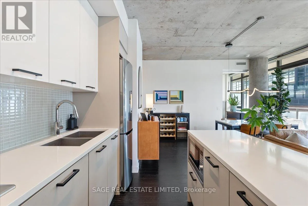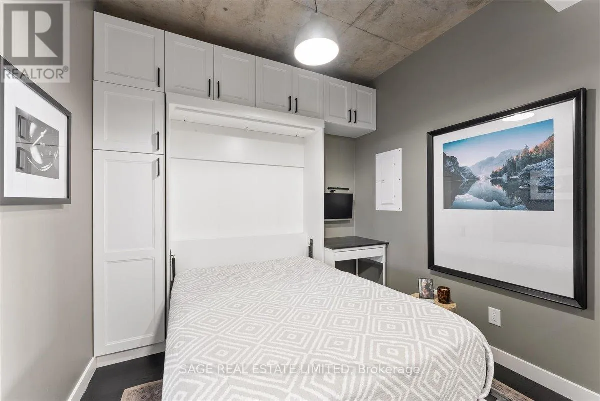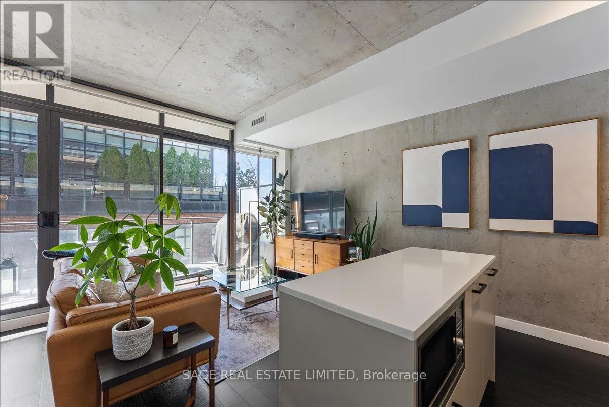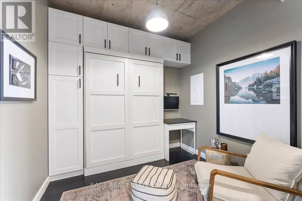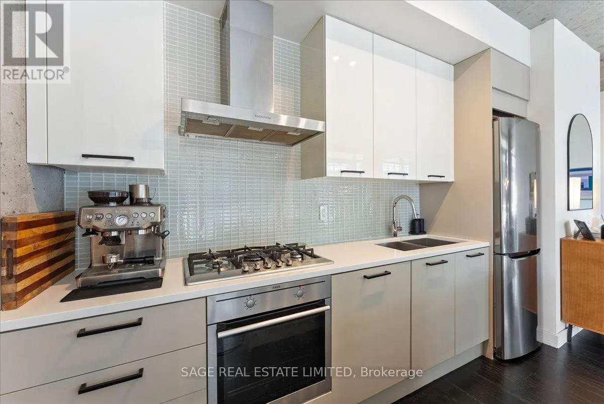 Cross Streets: Broadview and Queen. ** Directions: Off Queen. Welcome to The Ninety - one of Toronto's most coveted boutique loft residences, where design and lifestyle move in sync.This expansive 1+1 offers a rare sense of width and scale, framed by wall-to-wall windows that wash the space in natural light from morning through late afternoon. The layout unfolds effortlessly - a refined open concept where the kitchen anchors the space with stainless steel appliances and a gas range, flowing seamlessly into the living and dining areas, inviting connection and conversation.Soft, considered interiors play against raw concrete, creating a space that feels both grounded and refined. The neighbouring architecture becomes part of the experience; a quiet interplay of glass, brick, and greenery reflected through the windows, adding depth and an unexpected sense of design.Double sliding doors extend your living outdoors to a full-length terrace; an oversized, private escape with room to lounge, dine, and host. A gas line makes summer evenings feel easy, whether it's a quick weeknight grill or a slow Saturday with friends.The den is thoughtfully designed with built-in cabinetry and a discreet Murphy bed, offering flexibility for a home office, guest space, or second bedroom - without compromise. Every detail has been considered: updated lighting throughout and a fully renovated bathroom elevate the home into true turnkey territory.And then there's Leslieville - where your routine becomes the ritual. Morning coffee, weekend browsing, dinner plans that don't require planning. Step outside and let the neighbourhood do the rest. (id:27476)