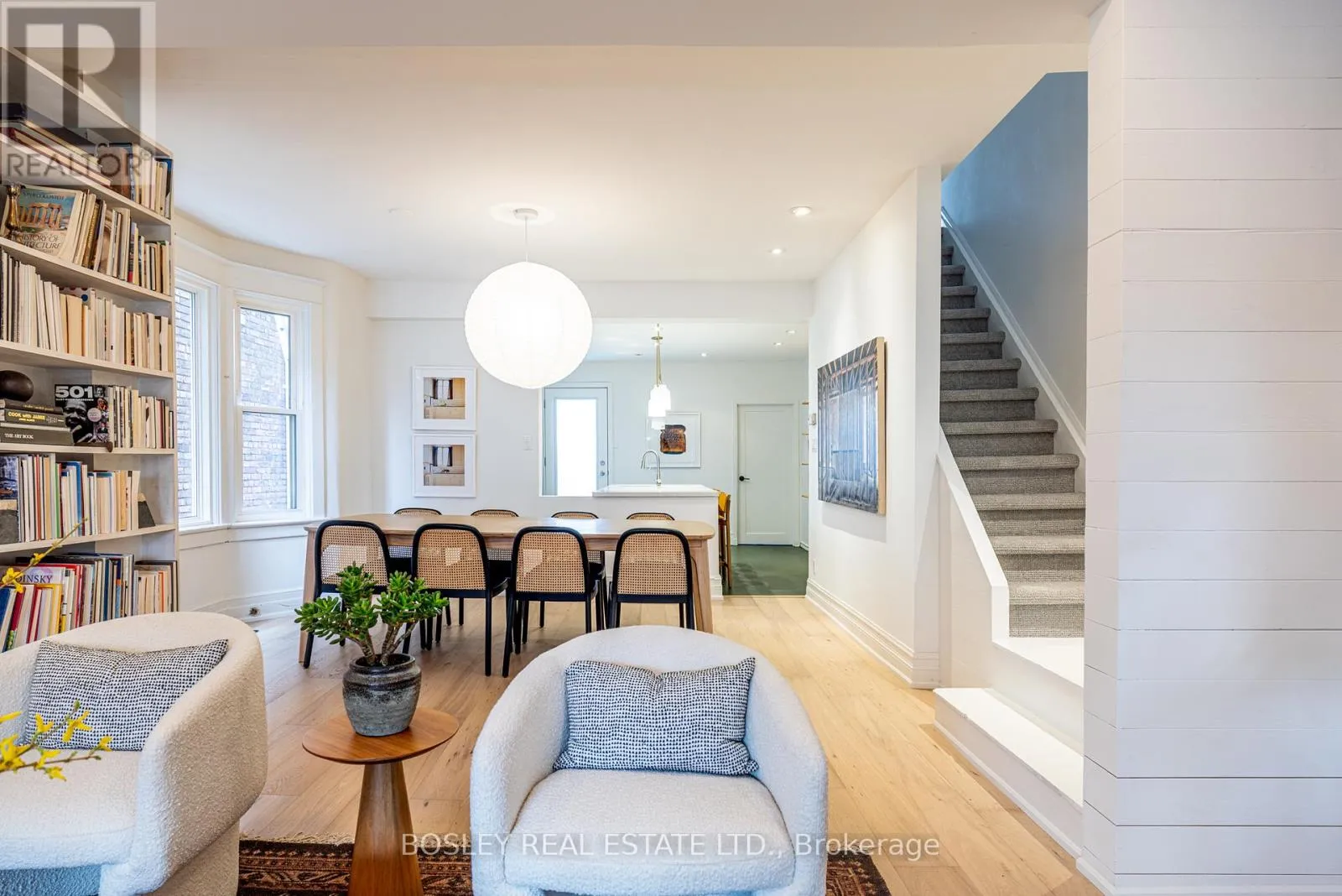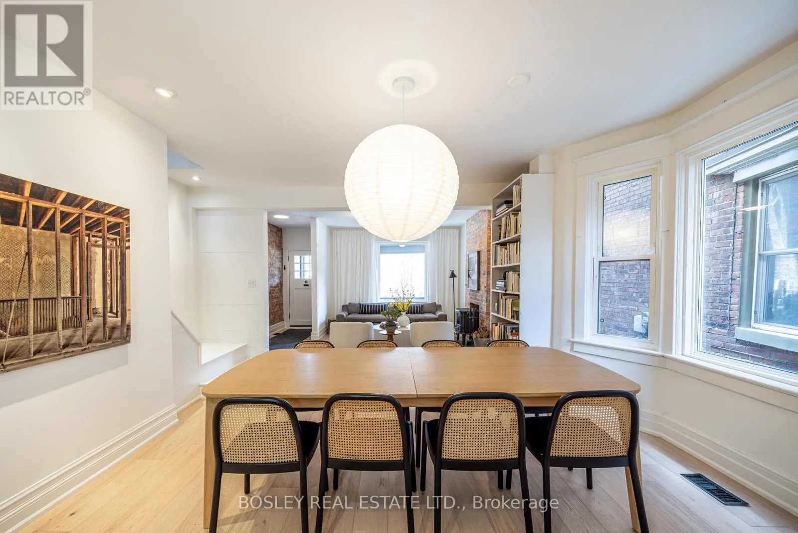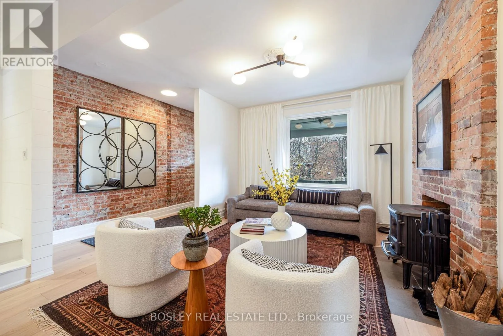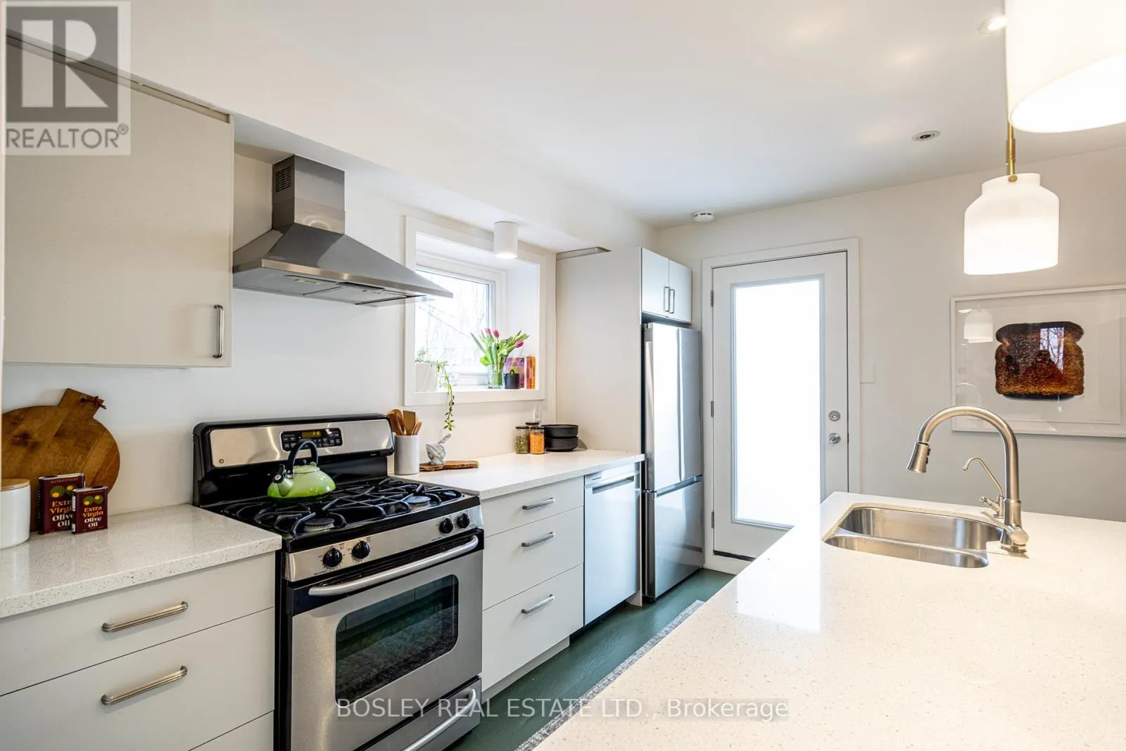 Cross Streets: Jones & Dundas. ** Directions: E. of Jones. S. of Dundas. Stunning curb appeal sets the tone at 16 Mallon Ave, where exceptional landscape design creates a private & lush welcome. Step inside and you feel it immediately, an effortless blend of warmth and sophistication. The main floor is open, airy, and filled with natural light, a seamless flow for both everyday living and entertaining. Generous entry, white oak floors, exposed brick, a classic wood stove plus main floor powder room and laundry. At the heart of the home, the chef's kitchen is an epicurean delight. Featuring quartz countertops, abundant storage, generous prep space, and stainless steel appliances, including a gas range. Whether it's slow mornings at the breakfast bar, homework or work from home, or lively gatherings with friends and family, this is a kitchen that truly brings people together. Walk out to an incredible, professionally designed garden, perfect for relaxing, hosting, and enjoying the seasons. Garage parking off Dundas offers everyday ease, with exciting potential for a future laneway suite. Upstairs, the primary bedroom is a restful retreat with wall-to-wall closets. Two additional bedrooms are bright and generously sized, complemented by a beautifully appointed full bathroom, comfort without compromise. The lower level offers a cozy, hygge-inspired space ideal for movie nights and family time. With a separate entrance and 4-piece bathroom, it provides excellent flexibility for guests, in-laws, home office, or income potential. Set on a friendly, community-oriented street in the heart of Leslieville, this home pairs thoughtful updates with timeless appeal. A welcoming front porch, meaningful improvements, and a sense of care throughout. (id:27476)