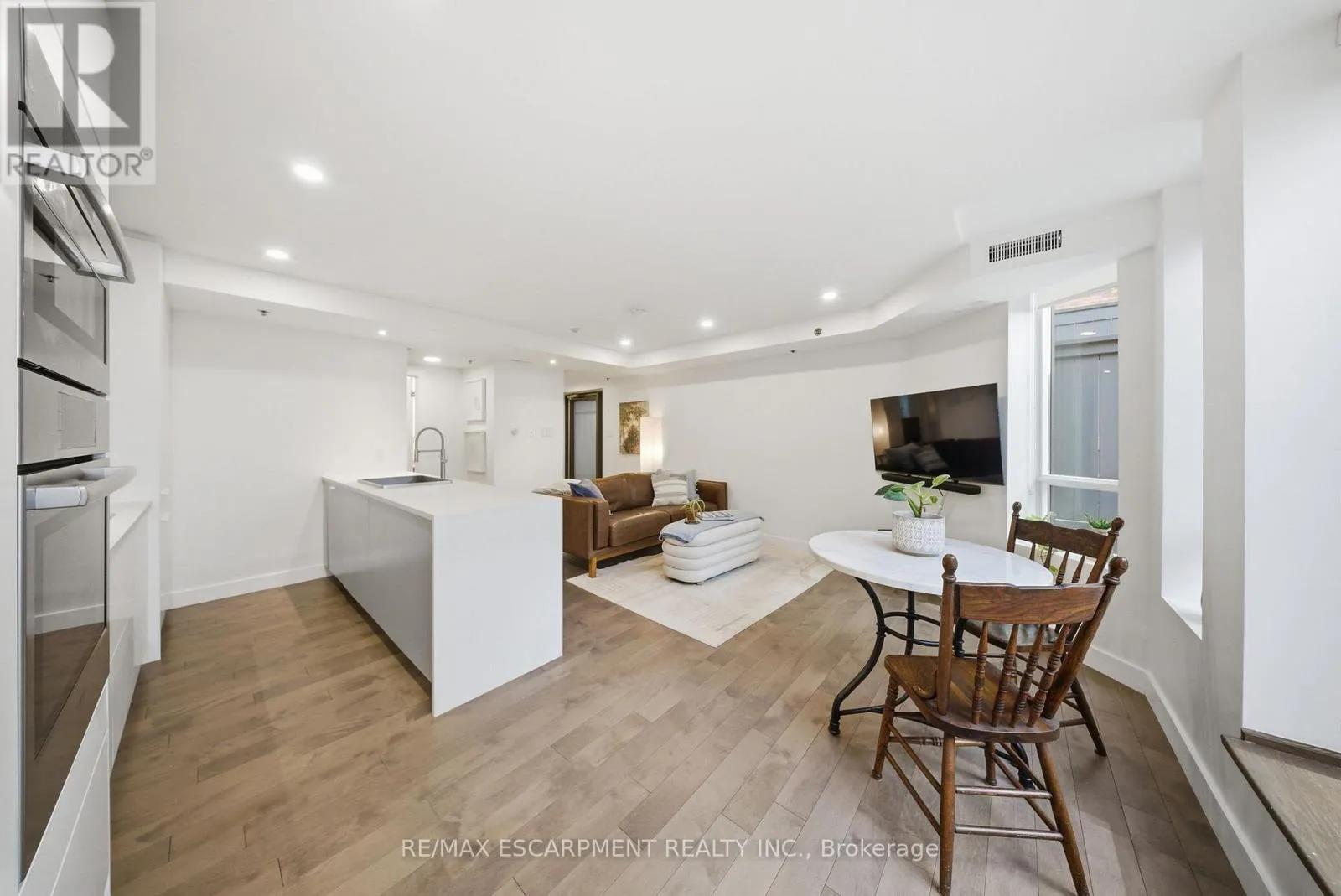 Cross Streets: Jarvis and Queen St E. ** Directions: North on Jarvis, west on Queen St E. (Front Door) | North on Jarvis, west on Richmond St E, immediate right is the garage (parking). Tucked inside the Glasshouse Lofts, this is one of just four ultra-exclusive townhomes offering that rare blend of boutique living and downtown edge. With direct access from the courtyard, it lives more like a private urban retreat than a condo-seamlessly blending indoor comfort with outdoor freedom. Inside, nearly 1,000 sq ft of thoughtfully designed space delivers 2 bedrooms and 2 baths with a clean, modern flow. The kitchen is a true focal point-anchored by a sleek waterfall island and outfitted with built-in Bosch appliances, it's equal parts statement and function. Full-size in-suite laundry adds everyday ease. Step outside and elevate your lifestyle with over 500 sq ft of exclusive outdoor space-an entertainer's dream. Host summer dinners with ease thanks to the built-in gas BBQ hookup, create multiple lounge zones for cocktails and conversation, or unwind in your own private open-air escape. Whether it's laid-back weekend lounging or vibrant evening gatherings under the city lights, this space delivers the flexibility and vibe that true downtown living demands.Set in the heart of the Garden District, you're steps to some of the city's best dining experiences, St. Lawrence Market, Eaton Centre, and St. James Park. Effortless access to transit puts your just a 10-minute walk to the Queen Subway Station and even closer to the highly anticipated Ontario Line, with a future stop right at Moss Park.This isn't just a home-it's a lifestyle. (id:27476)