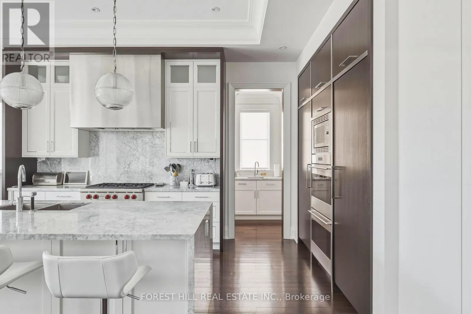 Old Forest Hill & Russell Hill From the moment you step inside this custom built Forest Hill residence, you are struck by its timeless elegance, refined transitional design, exceptional attention to detail and the highest quality finishes throughout. Masterfully designed by acclaimed architect Richard Wengle and beautifully curated by Robin Nadel Interiors, this home offers a seamless blend of luxury and functionality. Highlights include custom millwork, marble finishes, and impressive 10' and 11' ceilings throughout the main level. The chef's kitchen is a true showpiece, featuring a 10' centre island with breakfast bar, separate pantry and servery, and a bright breakfast area with two walk-outs to private terraces. Family room with custom built-ins, main floor office, a formal living room with a wood-burning fireplace, and a grand dining room with servery access complete the thoughtfully designed main floor. The second level offers rarely offered five spacious bedrooms and 4 bathrooms. The primary suite is a private retreat, complete with his and hers walk-in closets and a stunning spa-inspired ensuite that rivals a five star hotel. Vaulted ceilings, custom panelling, a linear gas fireplace, and built-ins add warmth and sophistication. The elevator provides convenient access to all levels. The lower level has been thoughtfully designed for both relaxation and entertaining. This level features a large at grade recreation room, a custom designed mudroom with direct access to the three car garage and separate mechanical room, theatre/exercise room, a spa area with wet steam, a custom bar, and a guest suite with its own ensuite. The walk-out leads to a private beautifully landscaped, low maintenance backyard with artificial grass, an irrigation system, and a covered patio ideal for entertaining. Situated on a premium block in Forest Hill, this exceptional home offers unparalled luxury in one of Toronto's most prestigious neighbourhoods. (id:27476)