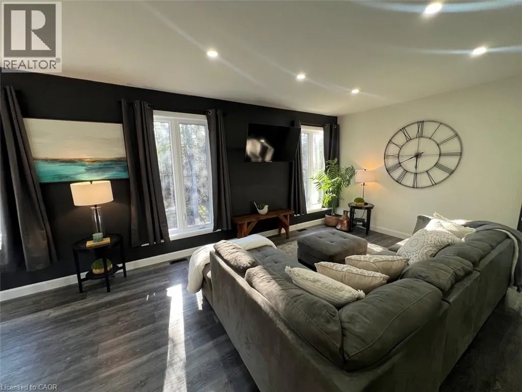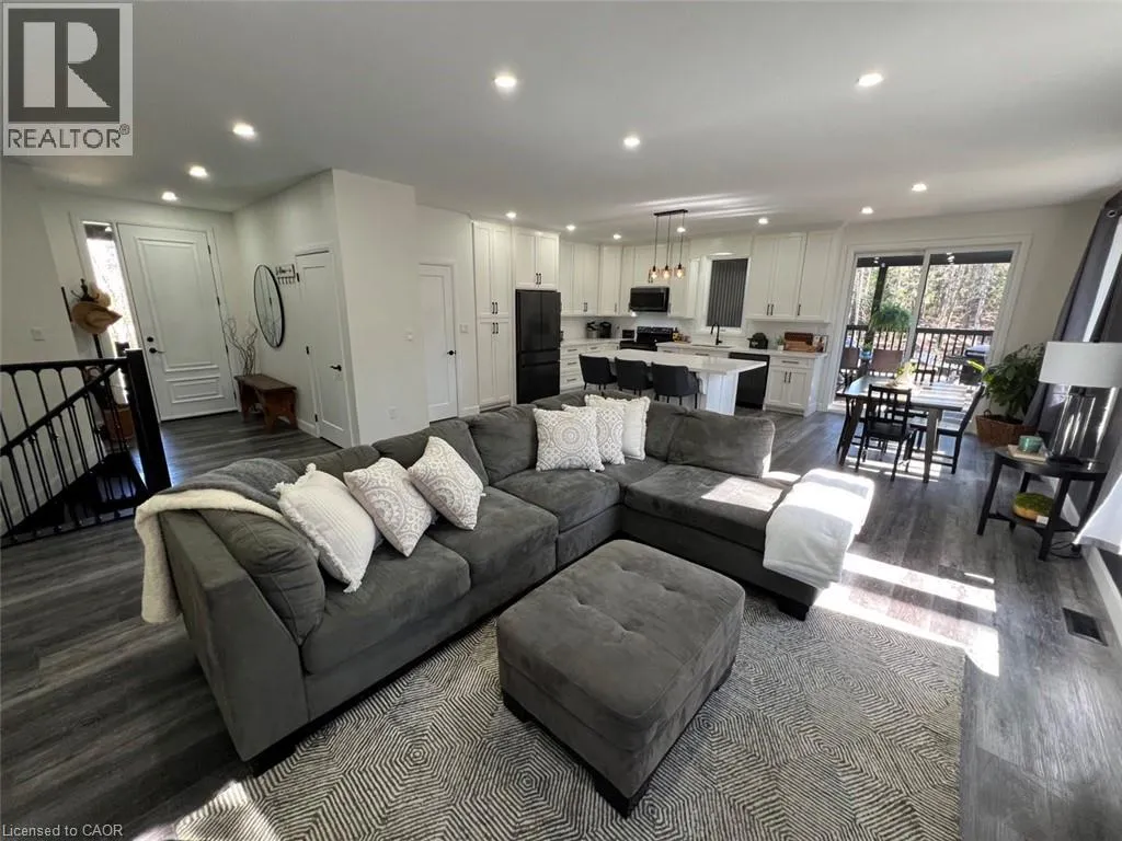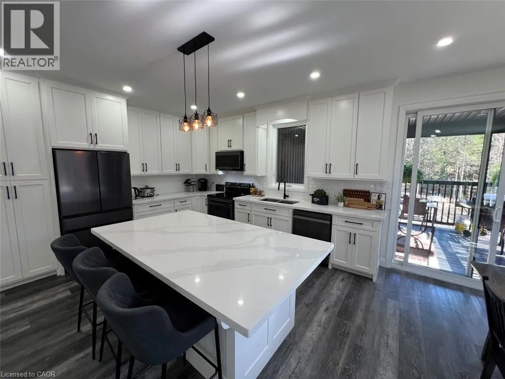 Hwy 118 to Tory Hill Park turn right Find your treasure in Tory Hill, the geocaching capital of Canada and a natural paradise known for gem-green apatite crystals. Just 20 minutes from Haliburton and near Algonquin Park, this 3-bedroom + den, 3-bath bungalow sits on 12.83 acres of private, natural landscape, offering a perfect blend of modern elegance and country serenity. Step inside to open-concept living with 9-foot ceilings, oversized windows, and peaceful woodland views. The chefâs kitchen is a showpiece with quartz countertops, a 7-foot island, premium appliances, and handcrafted Amish cabinetry. The primary suite offers a spa-like ensuite with walk-in shower, double vanity, and walk-in closet, while two additional bedrooms and a full bath complete the main level. Step outside and experience the hot tub â your year-round sanctuary surrounded by forest and stars. The fully finished lower level features 8-foot ceilings, bright windows, and flexible space for a family room, gym, office, or potential in-law suite. The 750 sq.ft. double garage with 20-foot ceilings is ideal for lifts, storage, or creative projects. Much of the land is ecologically protected, a mix of forest and wetlands, home to three endangered wildlife species. Blaze your own trails or hop onto the IB&O Snowmobile Trail, which runs all the way to Ottawa. With high-speed Internet, modern comfort, and total privacy, this property offers a rare combination of adventure, luxury, and timeless country living. (id:27476)