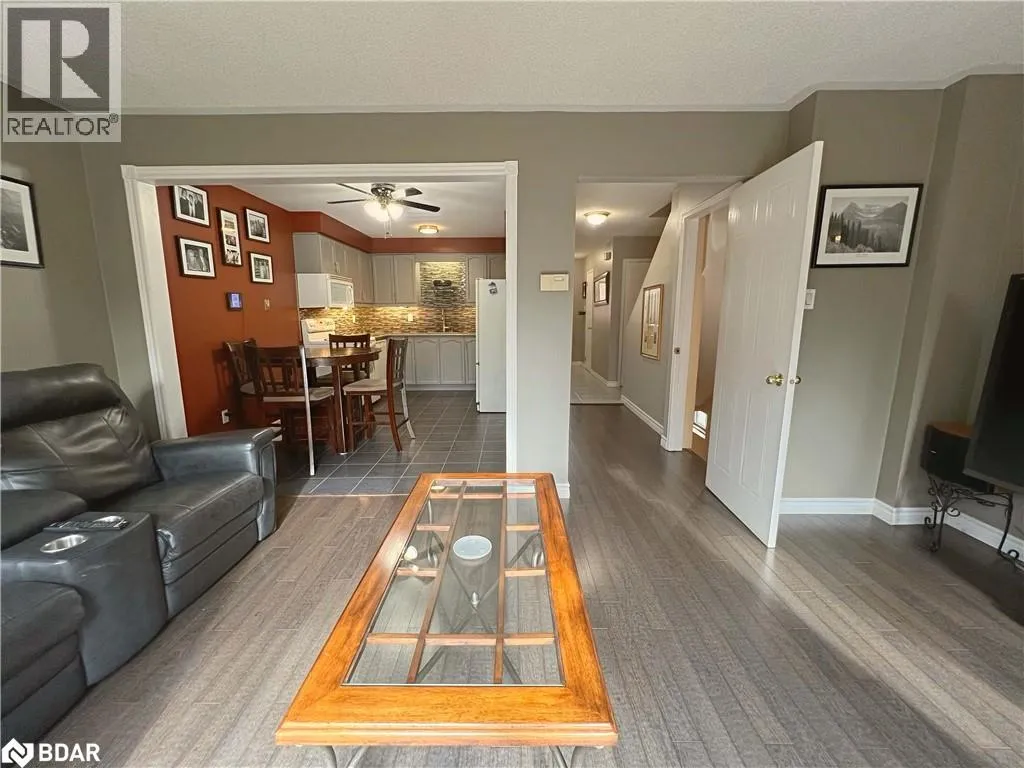 Queen St. N to Potter Cres Move-In Ready Townhouse on a Corner Lot with No Rear Neighbours! Step into your dream starter home! This charming end-unit townhouse is perfect for first-time buyers, offering a bright, open-concept main floor with a spacious foyer, powder room, & direct garage access. The modern eat-in kitchen comes fully equipped with all the appliances you need, while the sun-filled great room is perfect for movie nights or hosting friends. Upstairs, you'll find three generously sized bedrooms & an updated 4-piece bathroom, ideal for growing families or guests. Downstairs, the fully finished basement is an entertainers paradise, featuring a rec room with an entertainment system (TV with wall mount, surround sound, & bar fridge), a cozy office nook, a powder room, & a utility room for extra storage. Enjoy your morning coffee or summer BBQs in the large, fully fenced backyard overlooking a beautiful park with no rear neighbours means extra privacy! Plus, you're just a short walk to shops, downtown, & great schools.This home is truly move-in ready & waiting for you to make it your own! (id:27476)